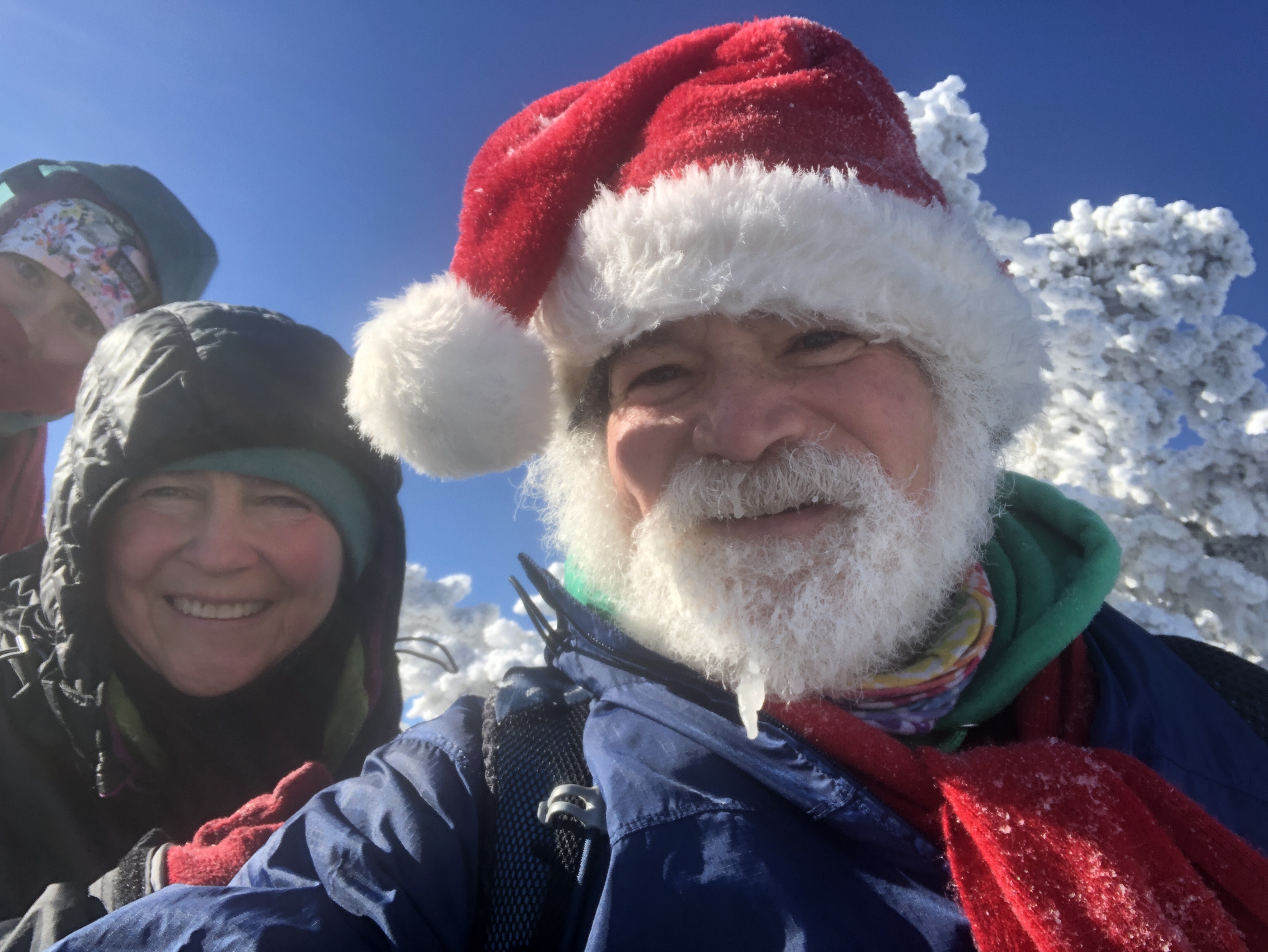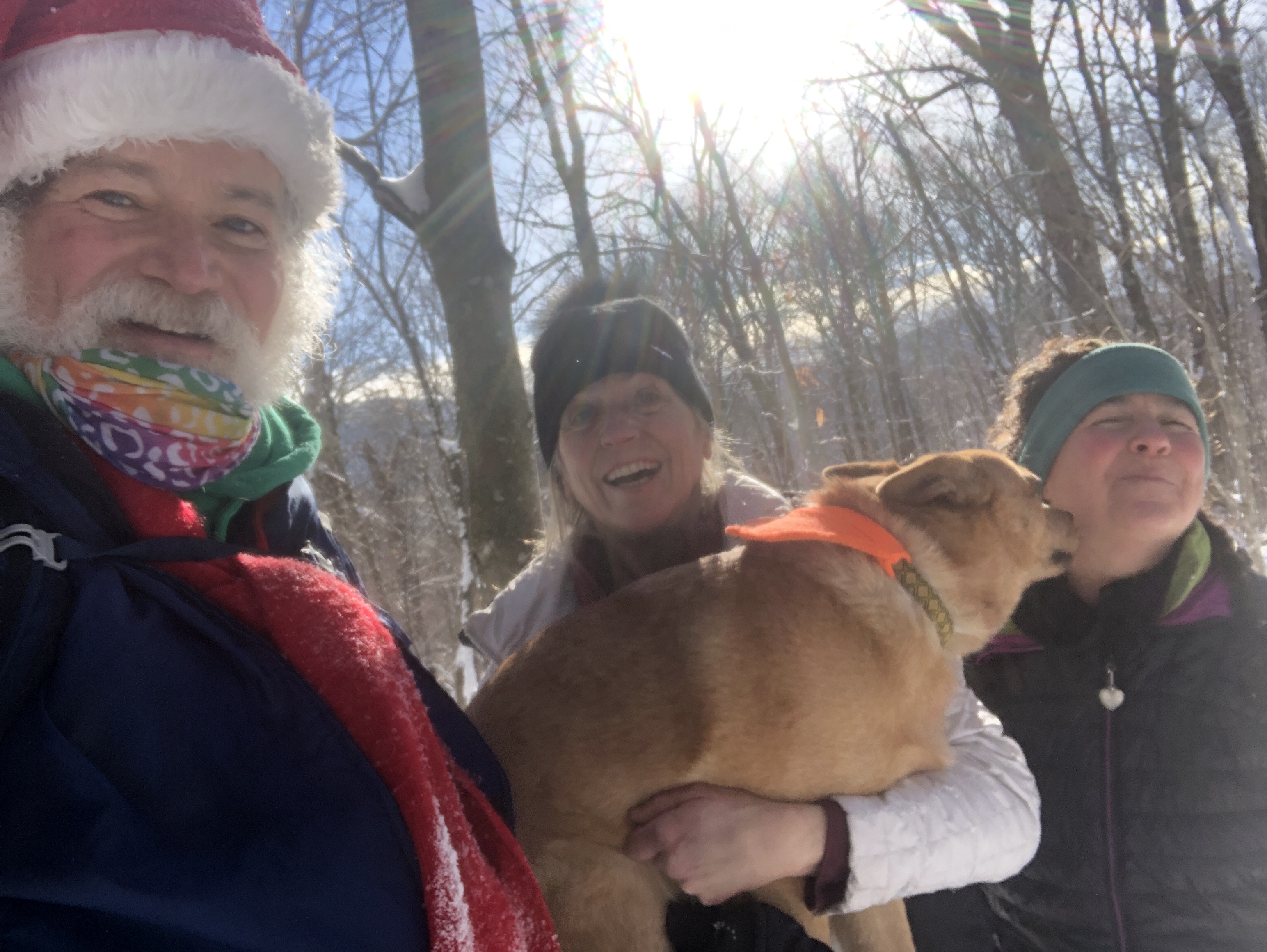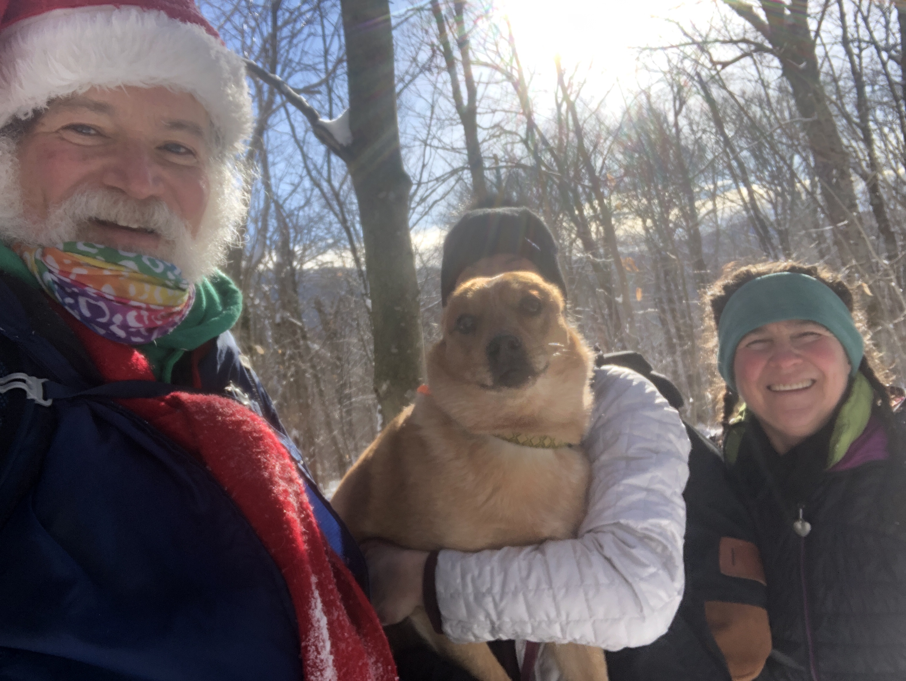 Nice day… It’s the day before the day before Christmas and all through the house… We decided we were going to do our annual climb up Camel’s hump a couple of days early because the next two days are going to be crazy weather… Not crazy as in cold and snowy but warm and rainy. If we do believe the weather it’s going to be 61° here on Christmas day. That’s about 40 or 50° warmer than it should be. We took advantage of the beautiful snow today to climb up our favorite mountain. ‘Kyle came up with us Before heading down to her parents for Christmas and New Year’s.… We got to the Mountain around 8:30 in the morning and started hiking. Before too long we ran into a really good friend Lou. The four of us liked up keeping socially distant.