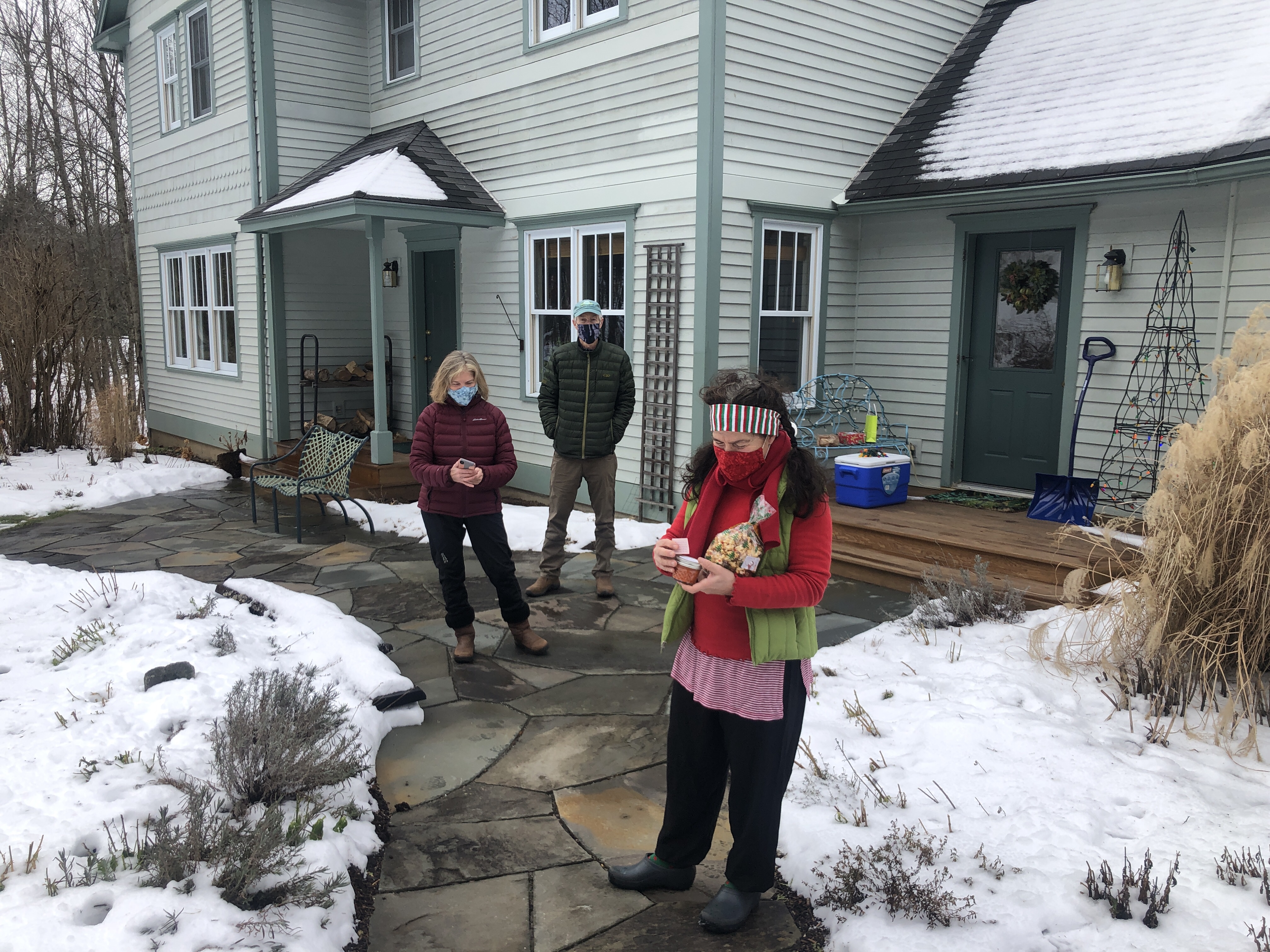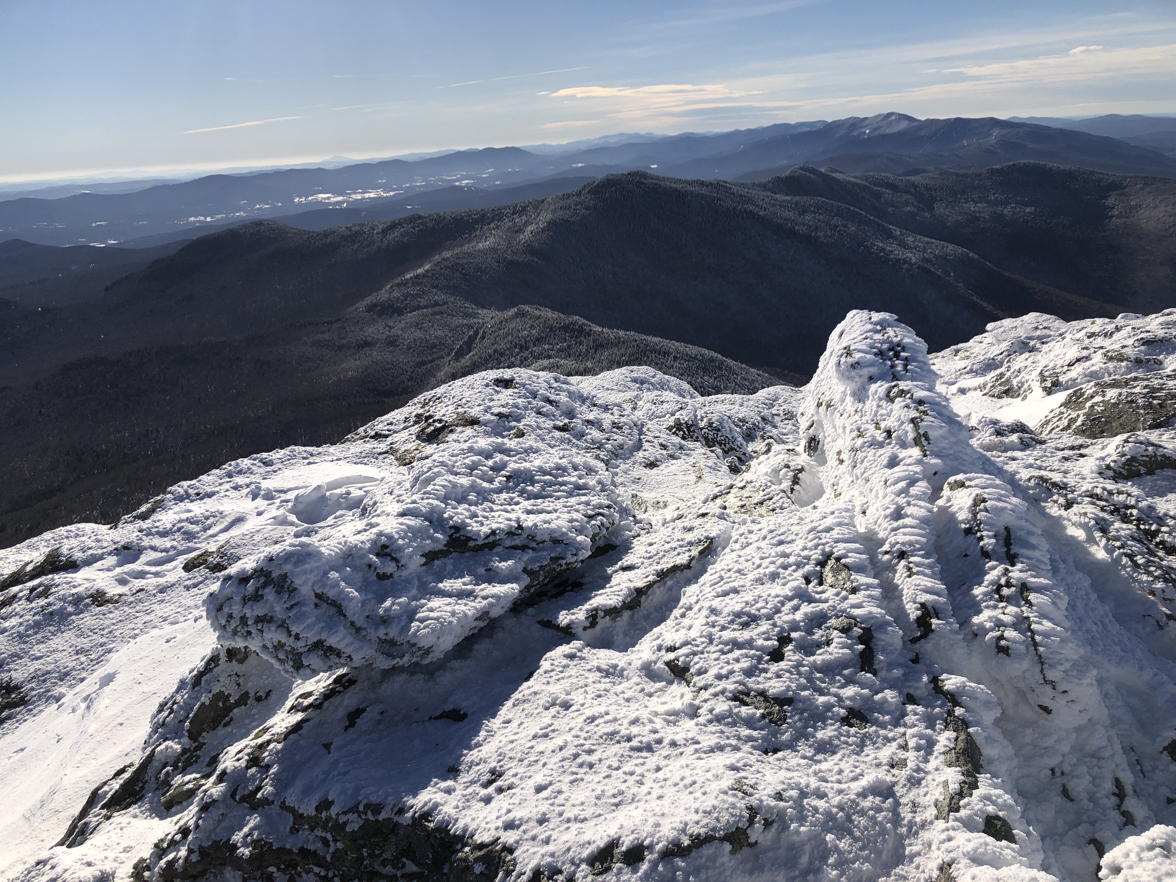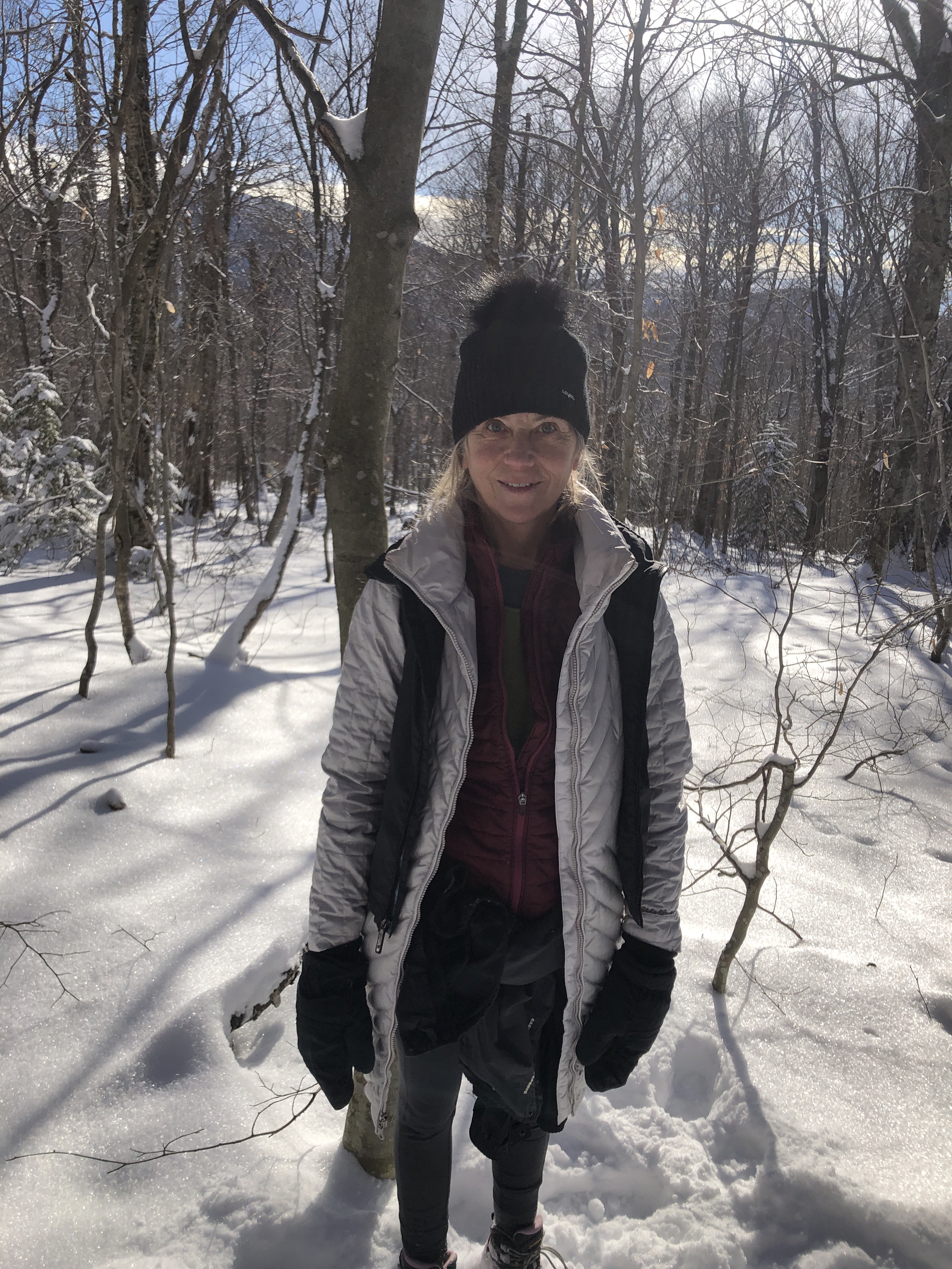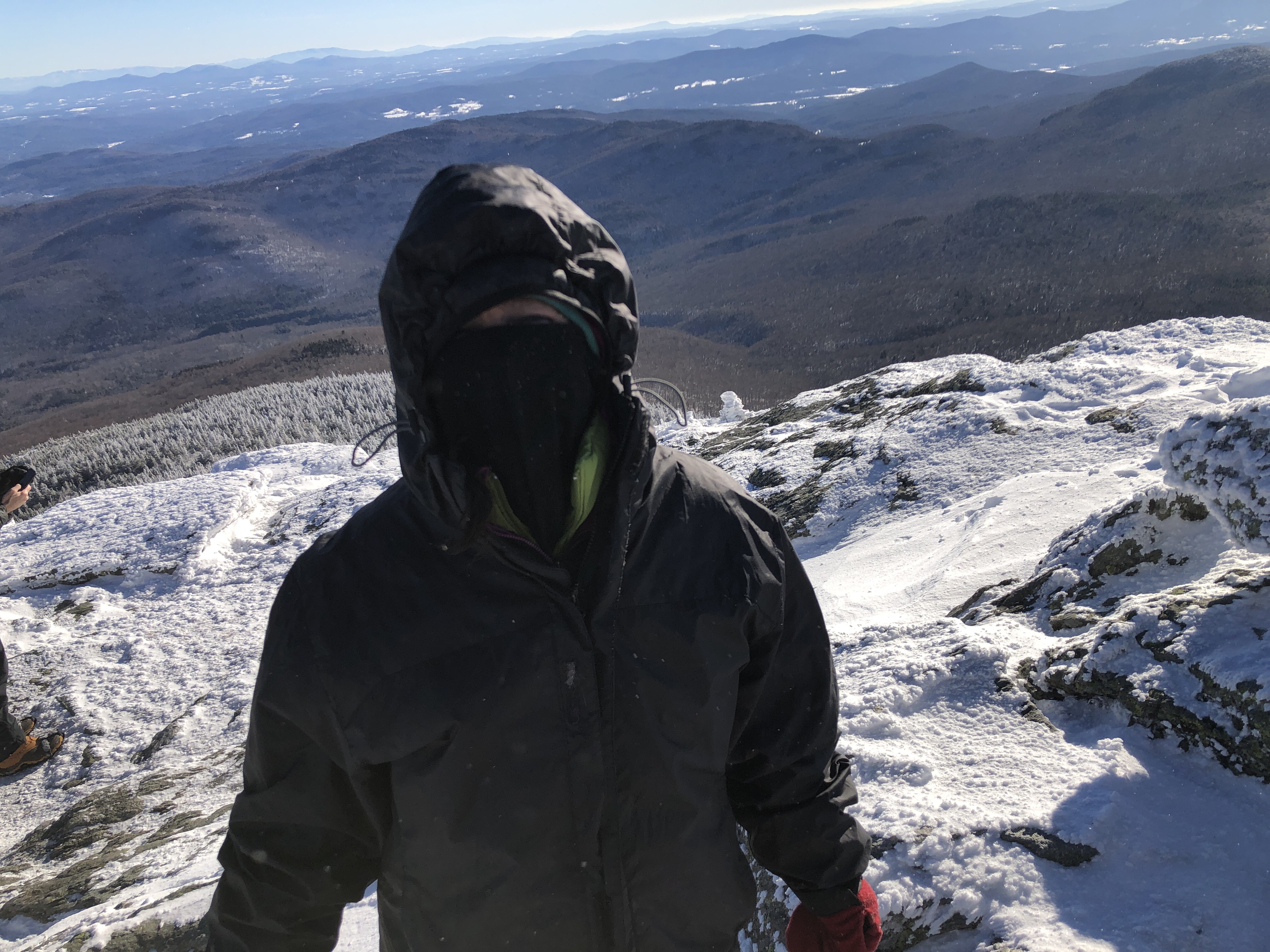 Nice day… It’s the day before the day before Christmas and all through the house… We decided we were going to do our annual climb up Camel’s hump a couple of days early because the next two days are going to be crazy weather… Not crazy as in cold and snowy but warm and rainy. If we do believe the weather it’s going to be 61° here on Christmas day. That’s about 40 or 50° warmer than it should be. We took advantage of the beautiful snow today to climb up our favorite mountain. ‘Kyle came up with us Before heading down to her parents for Christmas and New Year’s.… We got to the Mountain around 8:30 in the morning and started hiking. Before too long we ran into a really good friend Lou. The four of us liked up keeping socially distant.