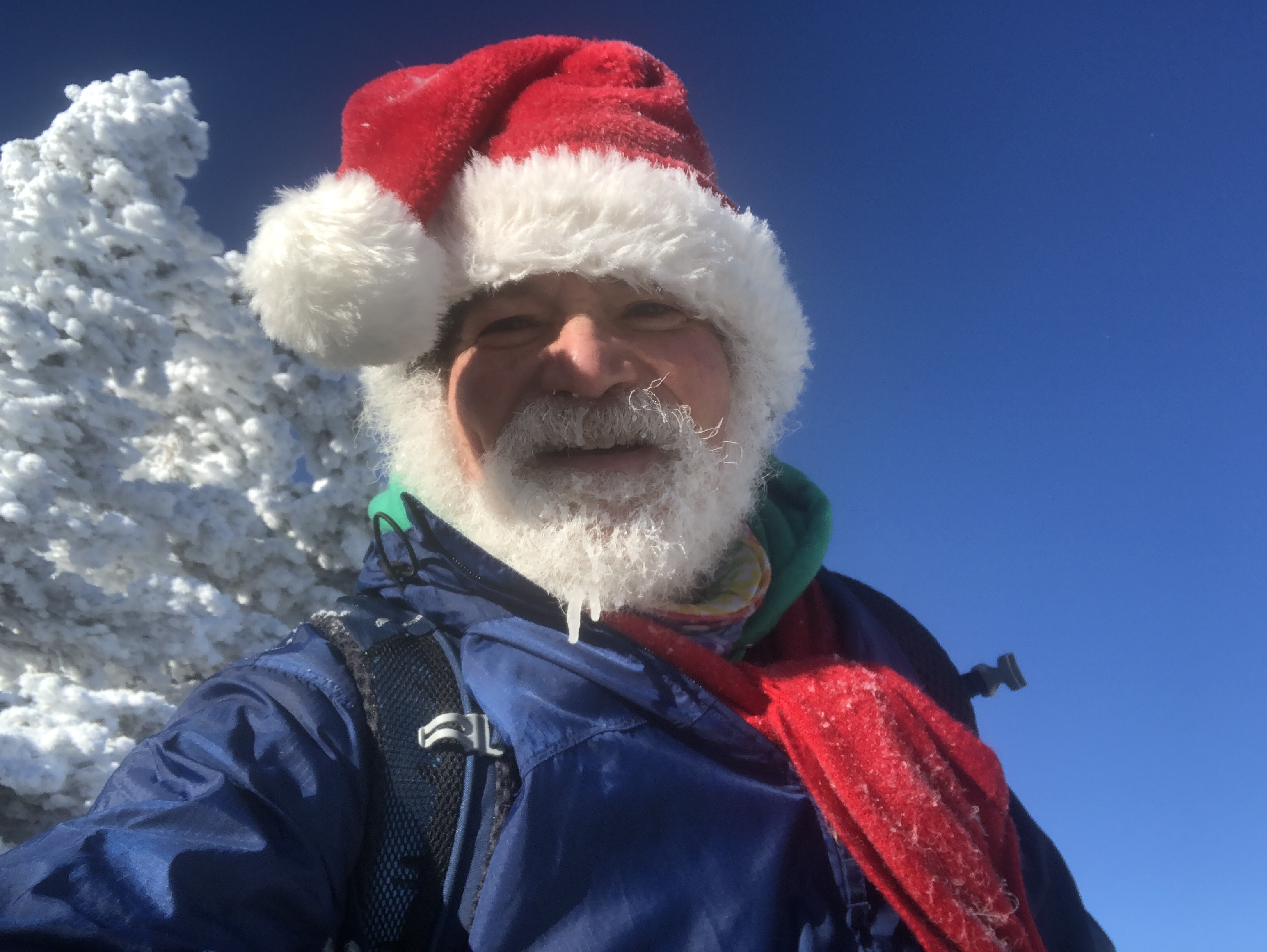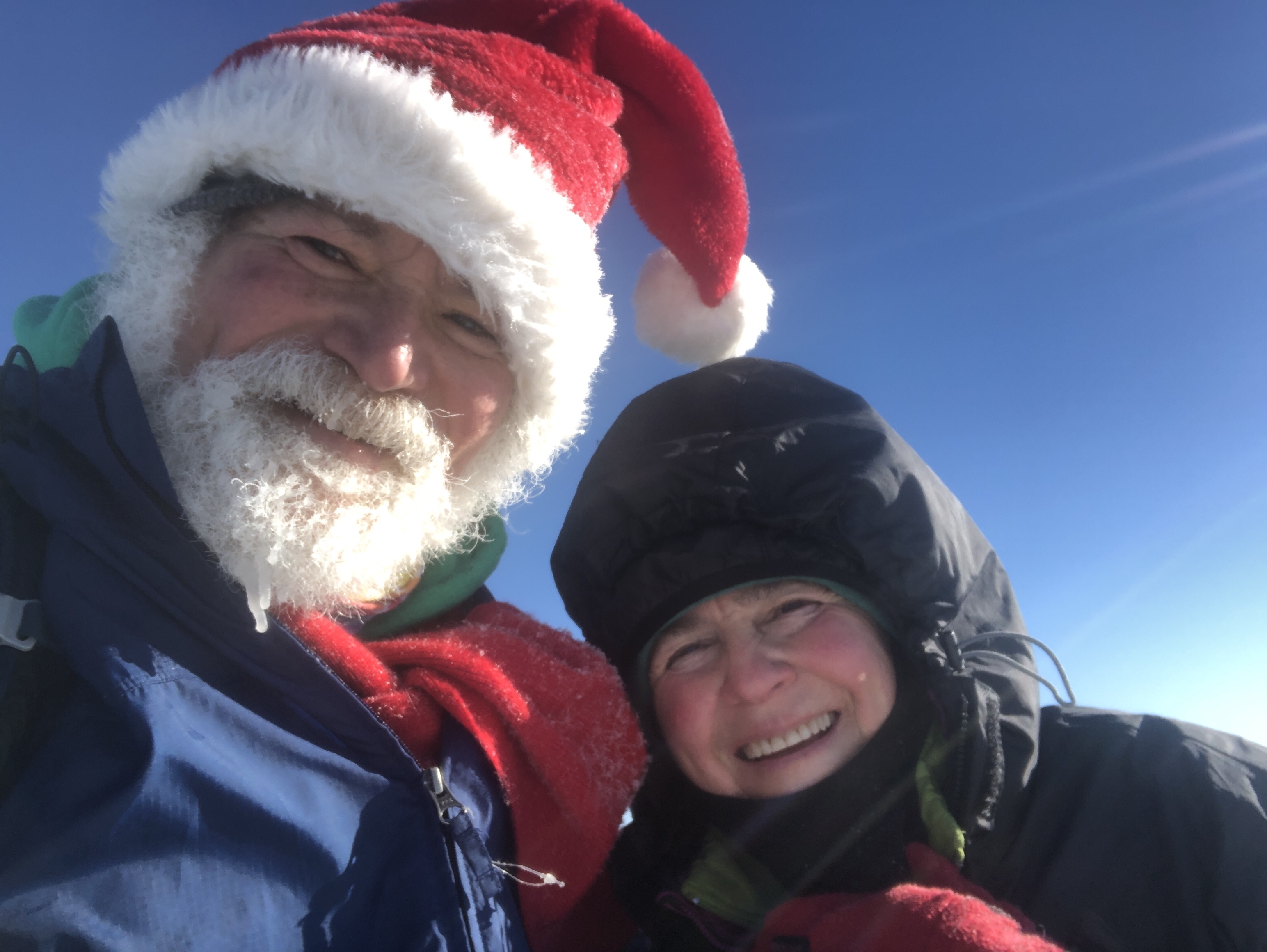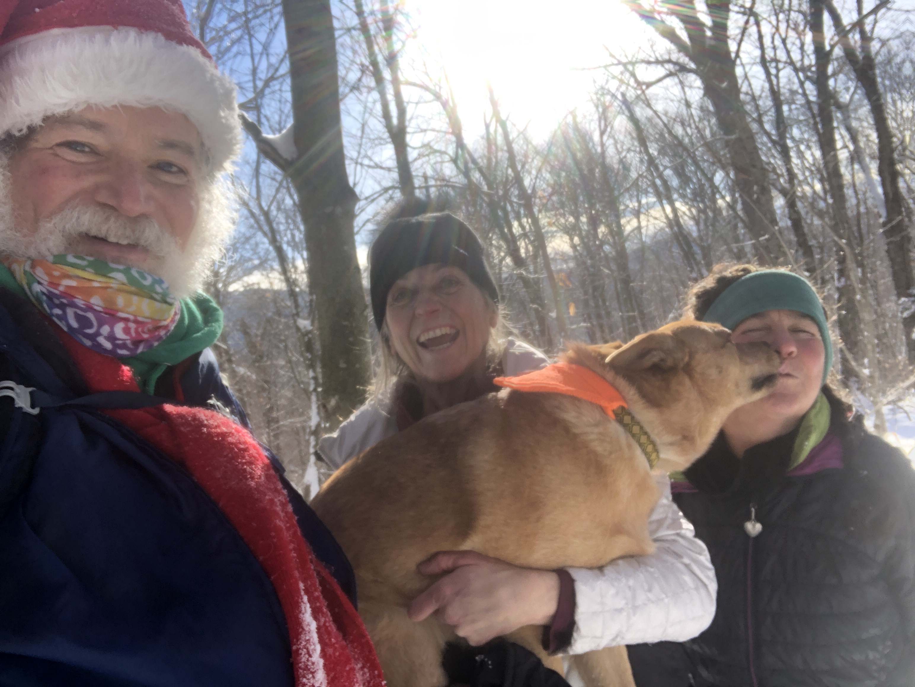 The coolest story is that every year for the last three years we’ve climbed camels up on Christmas day. Each of those two years before we ran into this woman named Jessica and her dog chance. We’ve had such a nice interactions with them. She calls me Santa (because I was dressed as Santa of course) and we talk about our day and our years… Well this year we didn’t expect to see her because we’re taking our hike a couple of days early. So did she. I was coming down on a sled and she said Santa… And sure enough it was her. It was so great to see her and chance !