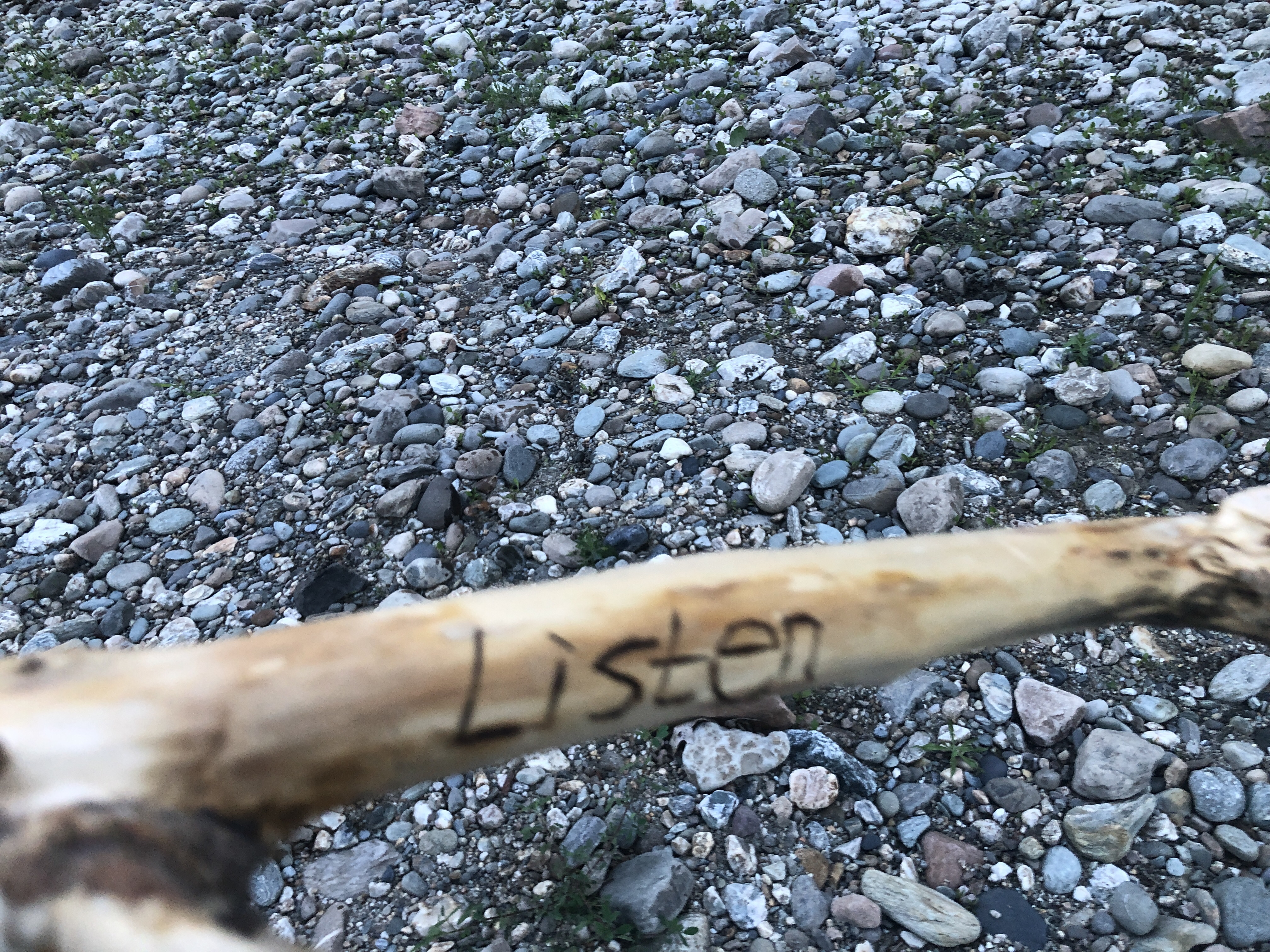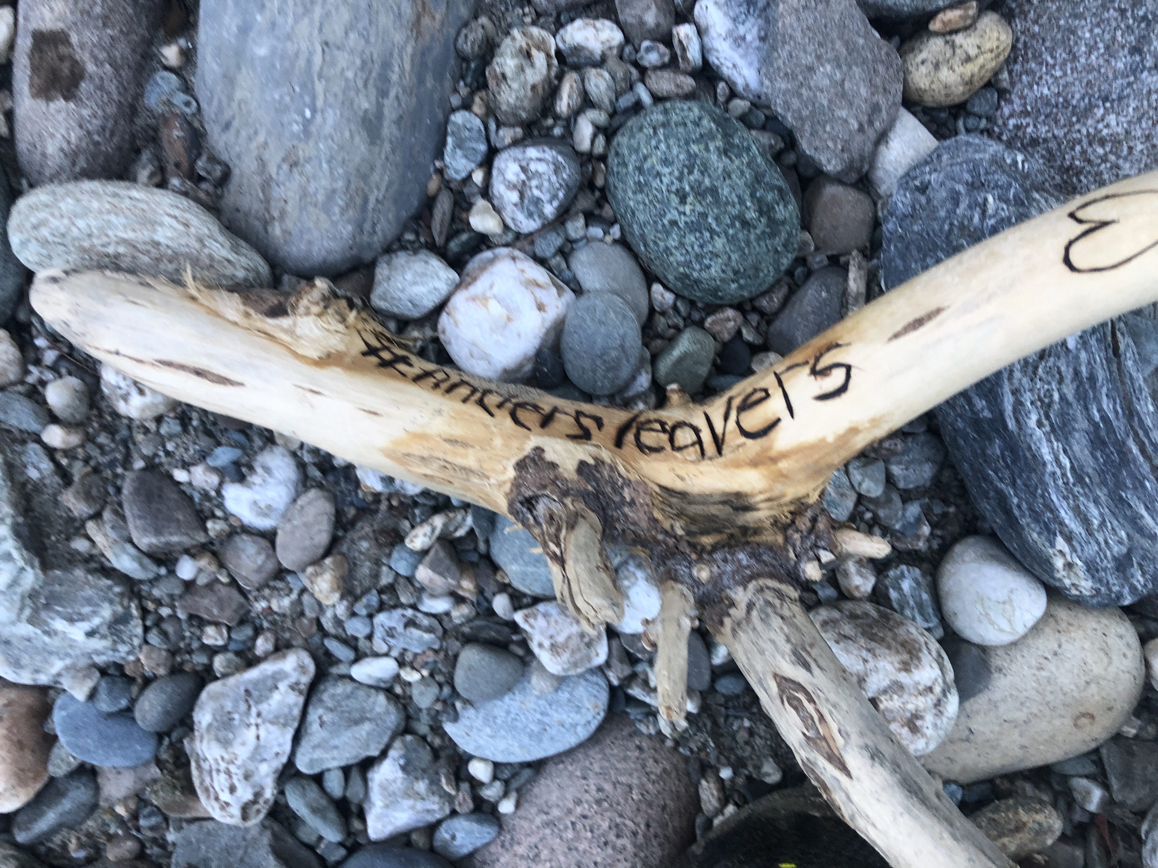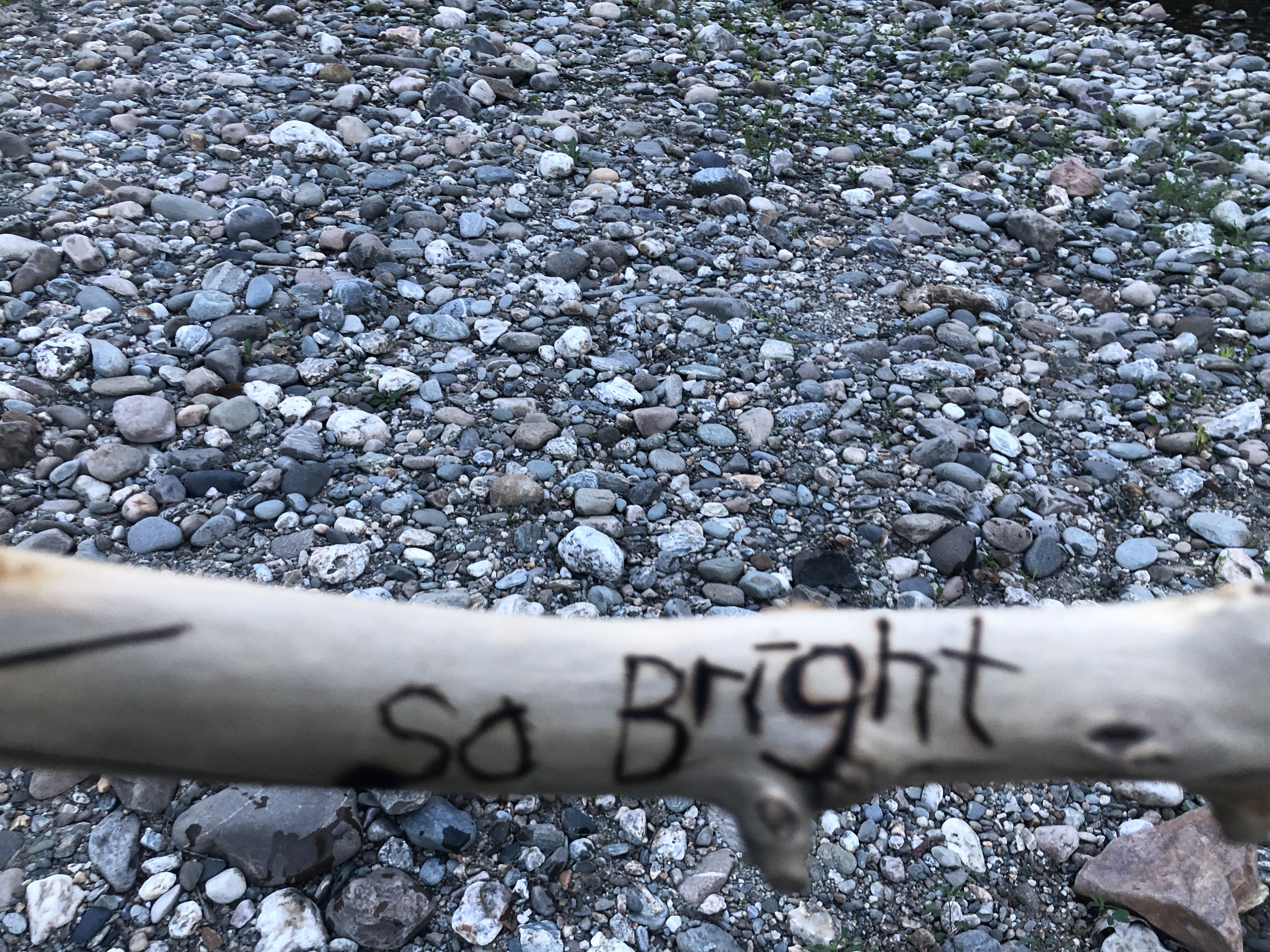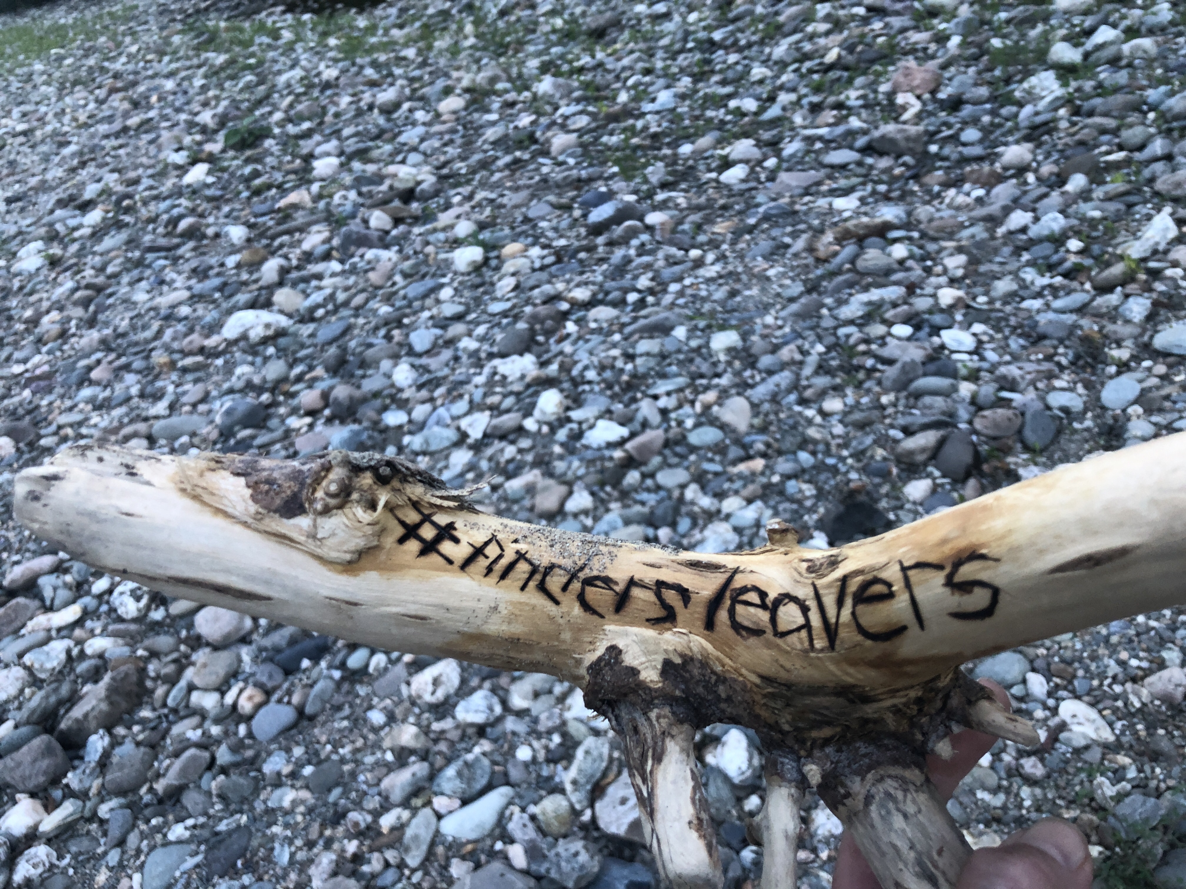 Last night when I was taking chai to the river… Still so strange with just her… I saw an amazing piece of natural art. It was a stick with several burned inscriptions. It was roughly done… But it was obviously left there for someone to find… It had several inscriptions including a hashtag