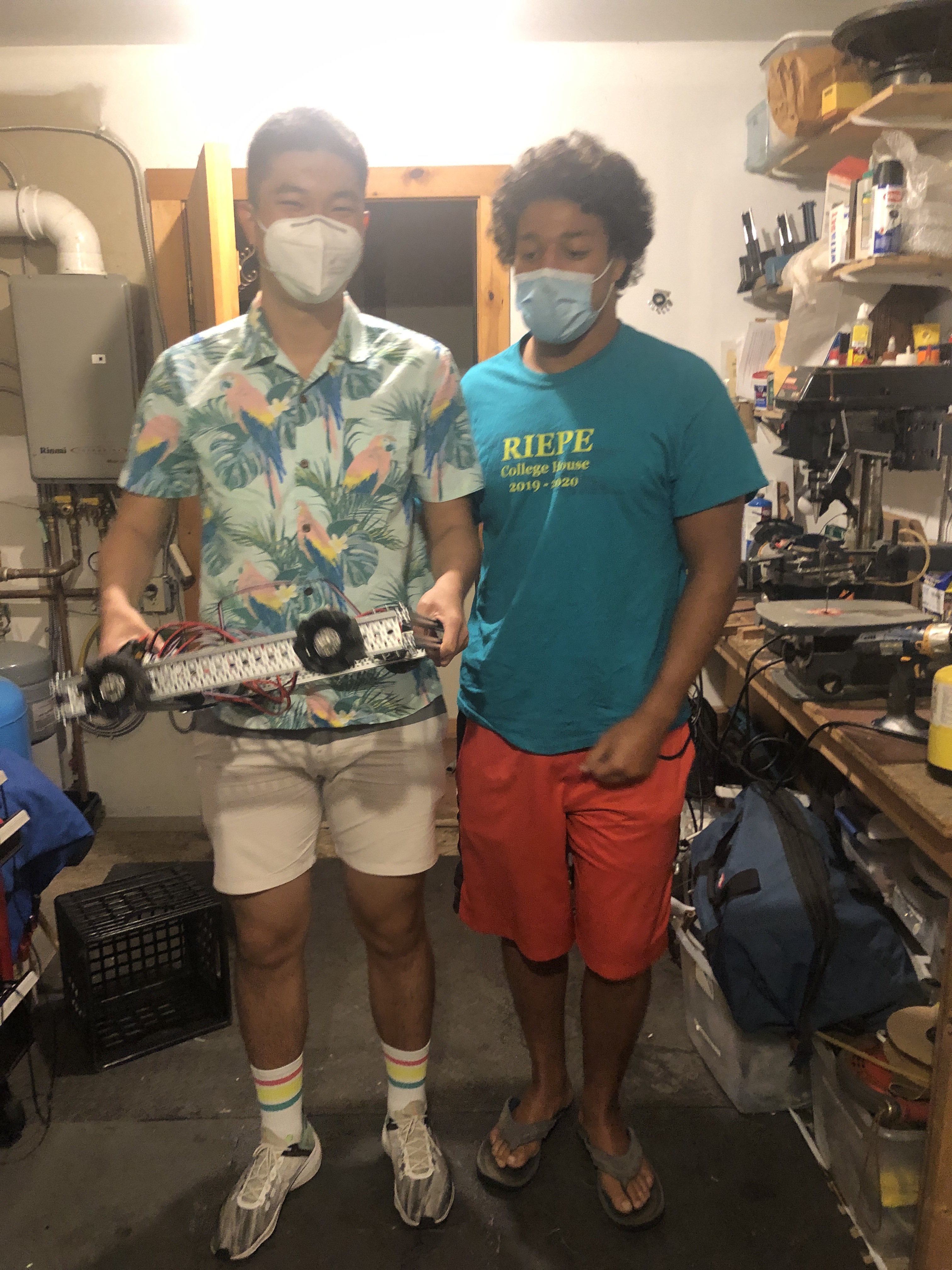 After yoga tonight my friends Zach and Mani showed up for our last work session before they both go back to college. The two of them and my friend Isaac are helping me build a robotic “mascot” For the first tech challenge robotics project that ‘Diane and I are driving. We’ve had a couple of weeks to do it and we’ve gotten pretty far. We can now get the robot frame to drive around on the floor. I’m building this robot to make it into something fun that we can use for recruiting… I’m also doing it so that I actually know the platform that I’m trying to get other kids to do.… Is proving to be much more complicated than I thought.… “Old dog new tricks”