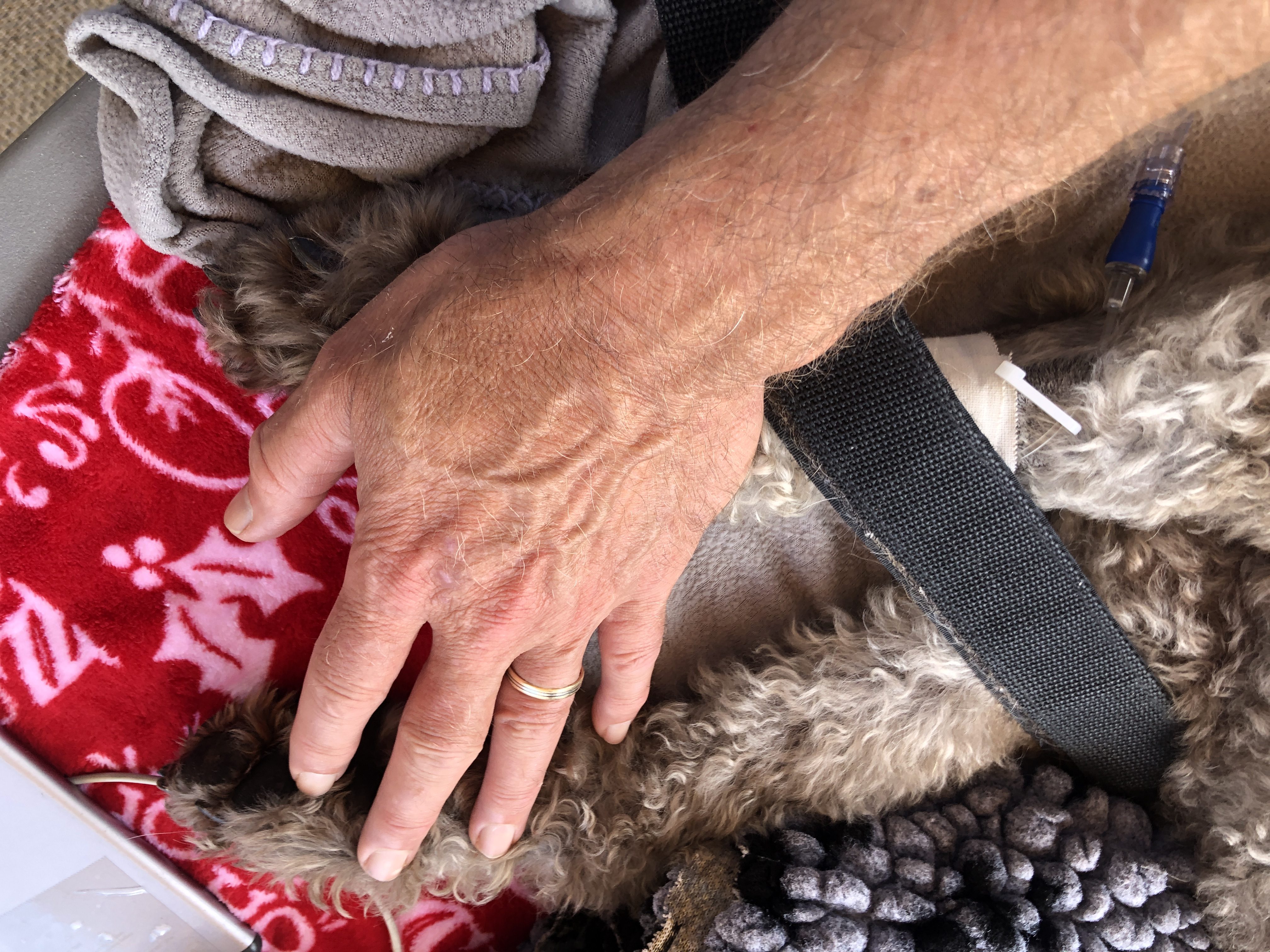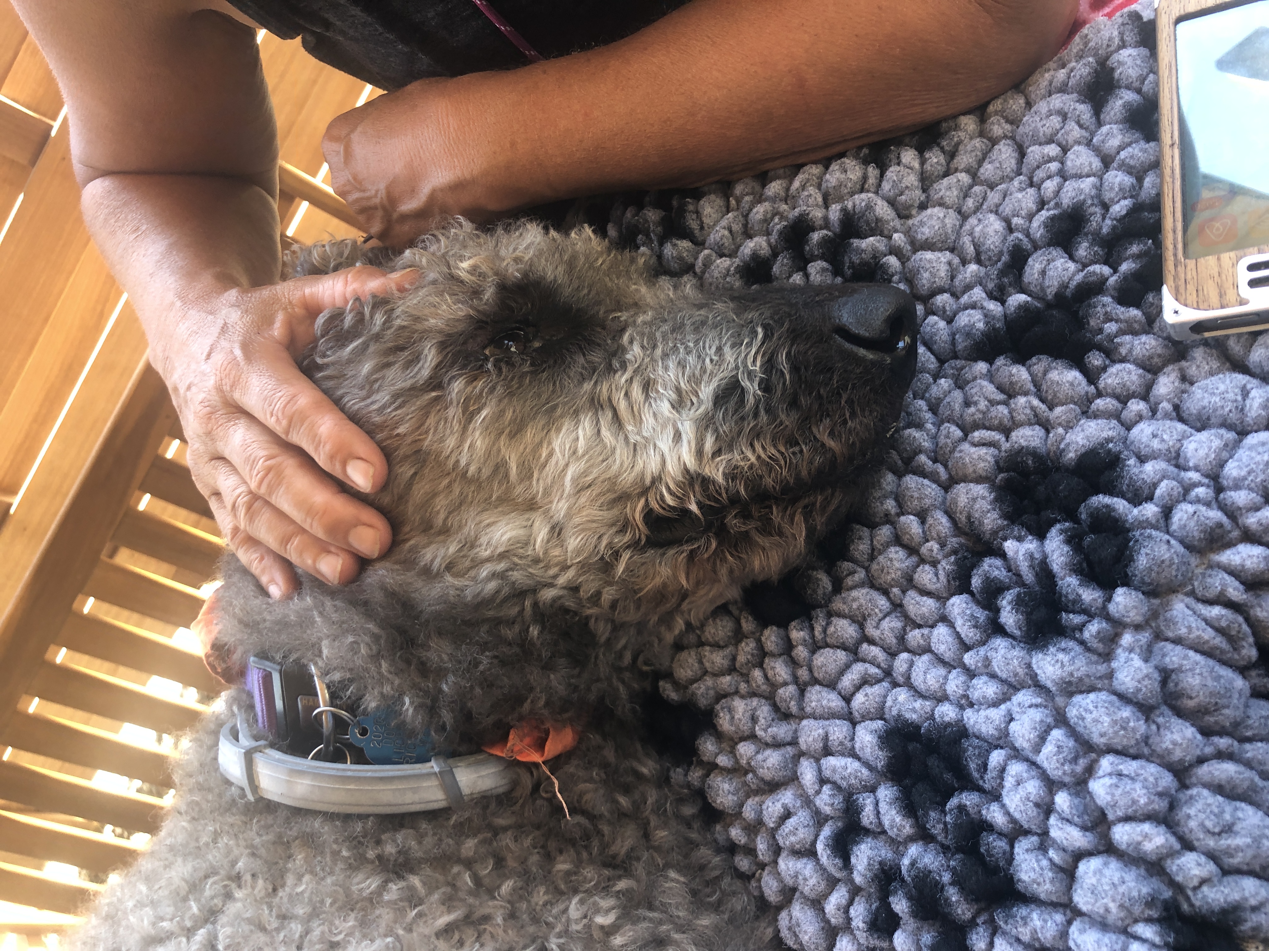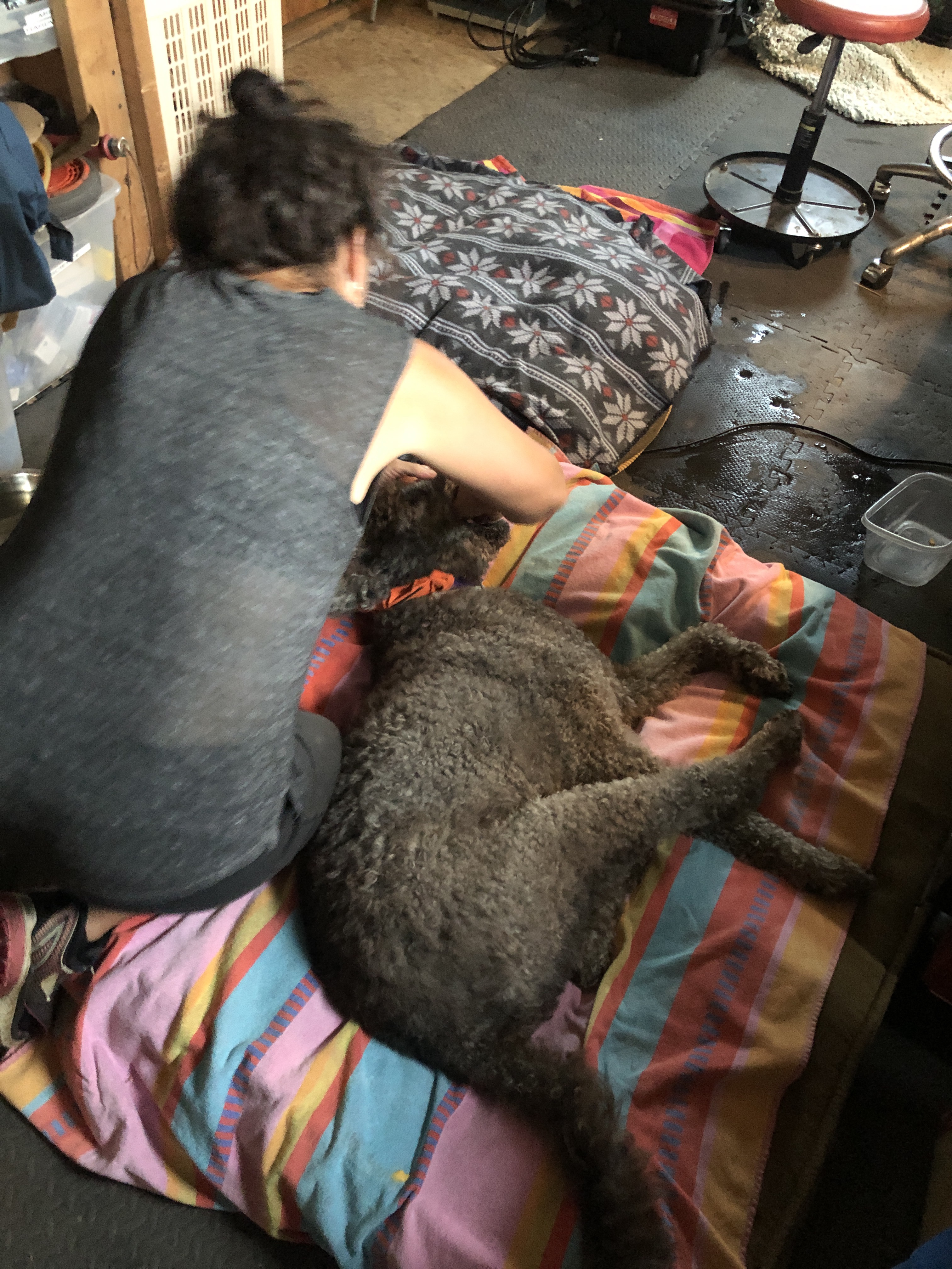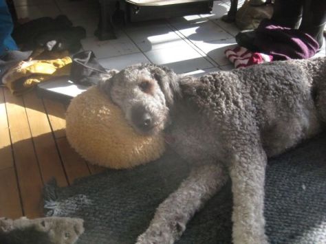 And on the way home she just lay down in the field. I had to carry her back to the car. After two vet visits yesterday we thought we knew what was wrong with her and she was getting the right treatment. I actually slept with her and our older dog Chai in my workshop last night.