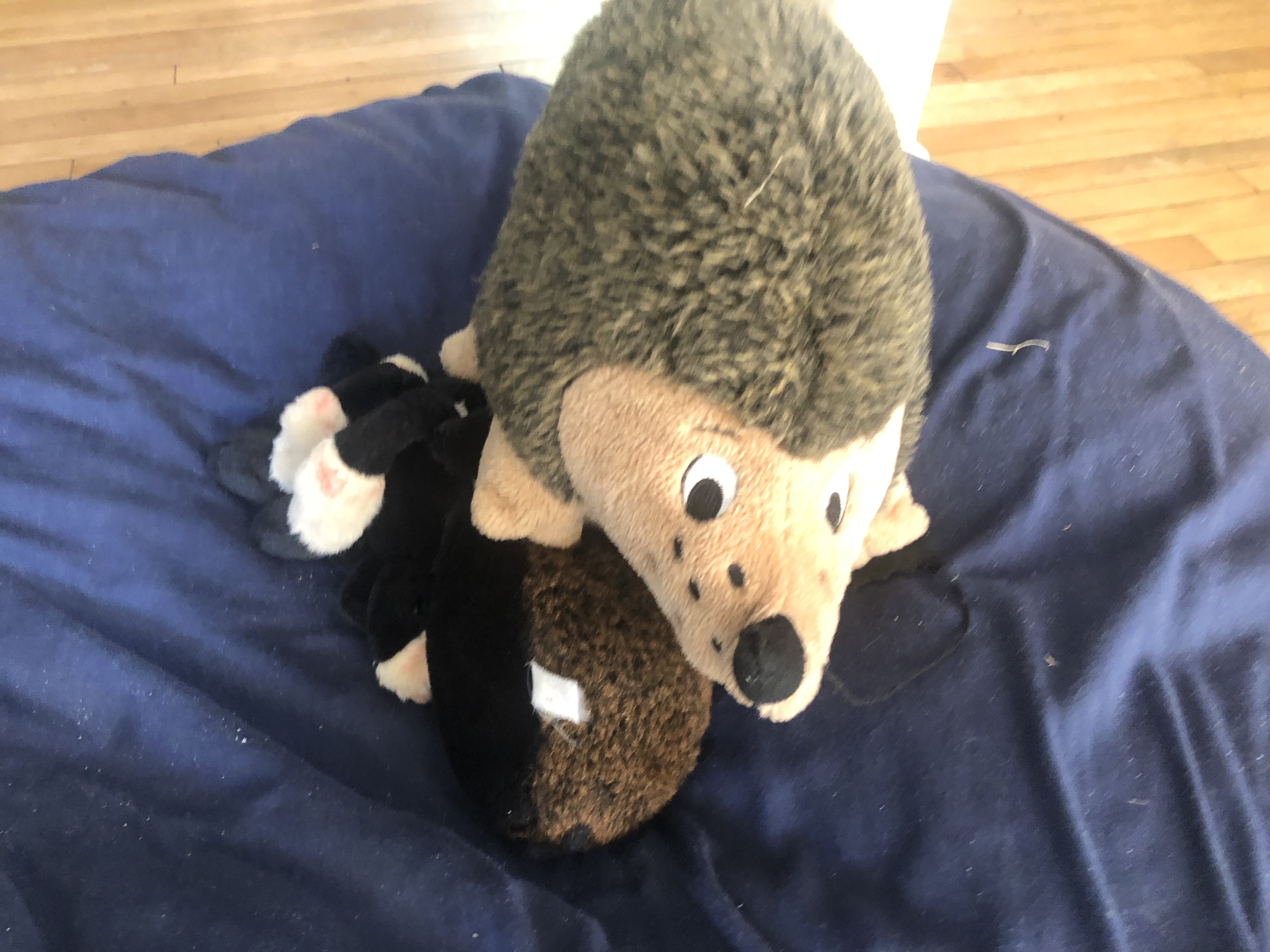 Saying goodbye was one of the three hardest things I can ever remember doing. Coming home and seeing all of Satori stuff… Particularly her much loved toy hedgehog ” Hedgy”… (Actually she got a new one every six months…one even yesterday) The Game Hedgy always had new rules… Satori would grab her toy and sneak up behind you and push it into the back of your knees until you grabbed it then she would play tug-of-war until she got away from you and then shake it seriously… Then she would let you grab it back and tell you through it for her and then chased her around. We literally would do it for hours.… I think that is one of the things I will miss the most.