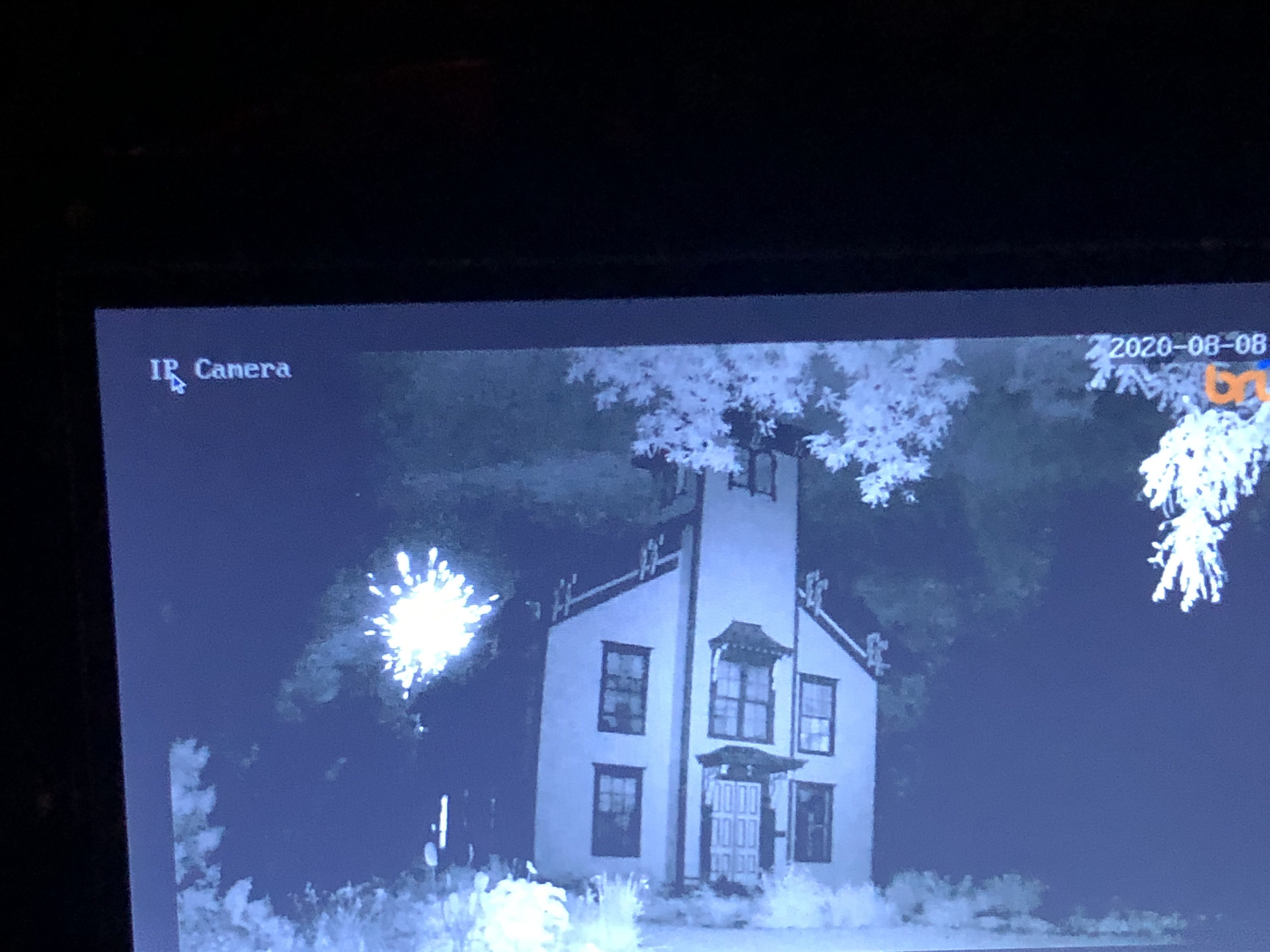 Just add to the excitement… One of our neighbors is firing fireworks somewhere behind our house.… ‘Diane remembered that we had the WebCam on the house so I was able to catch a few of the pictures with the fireworks in the distance.…