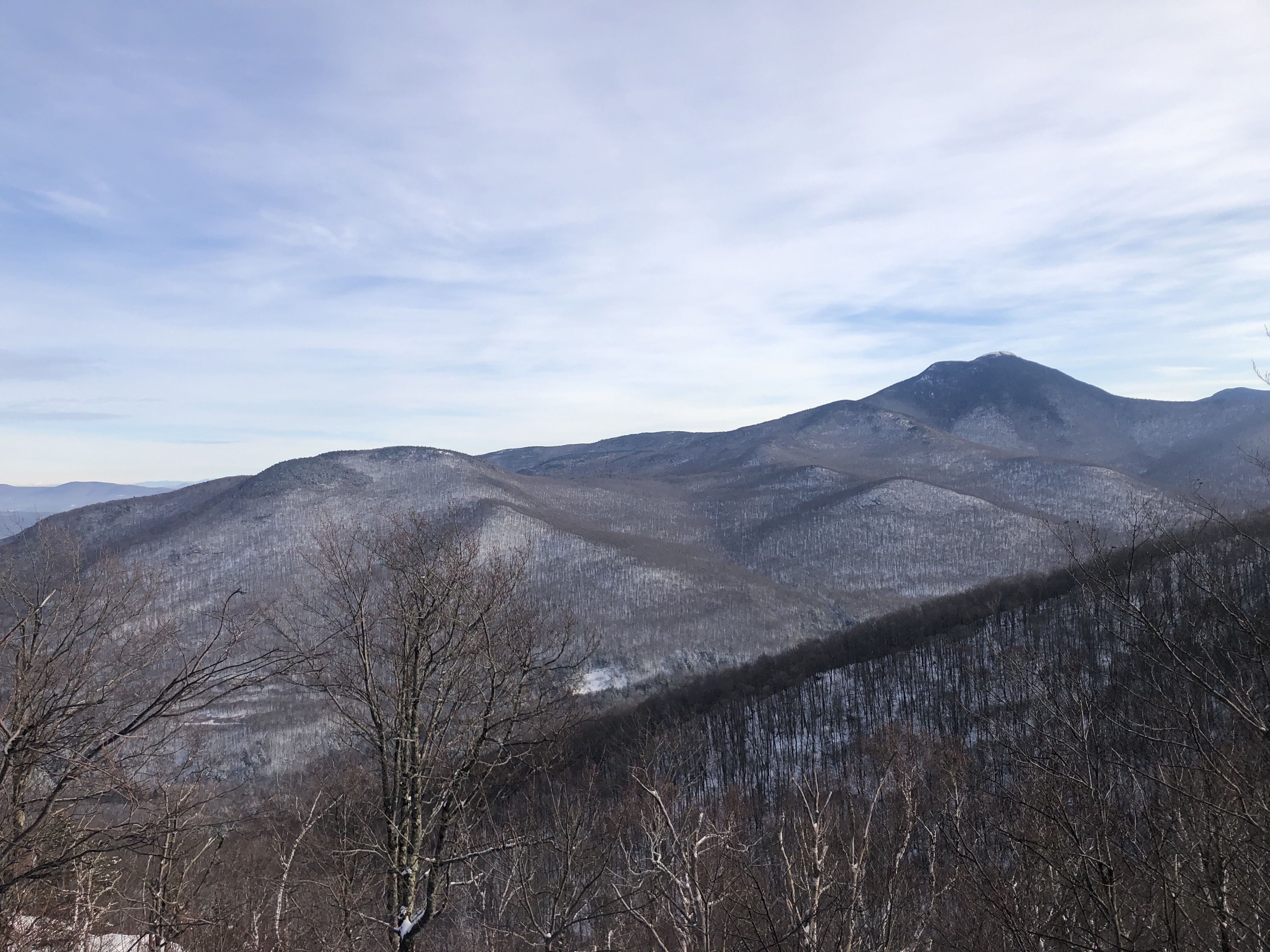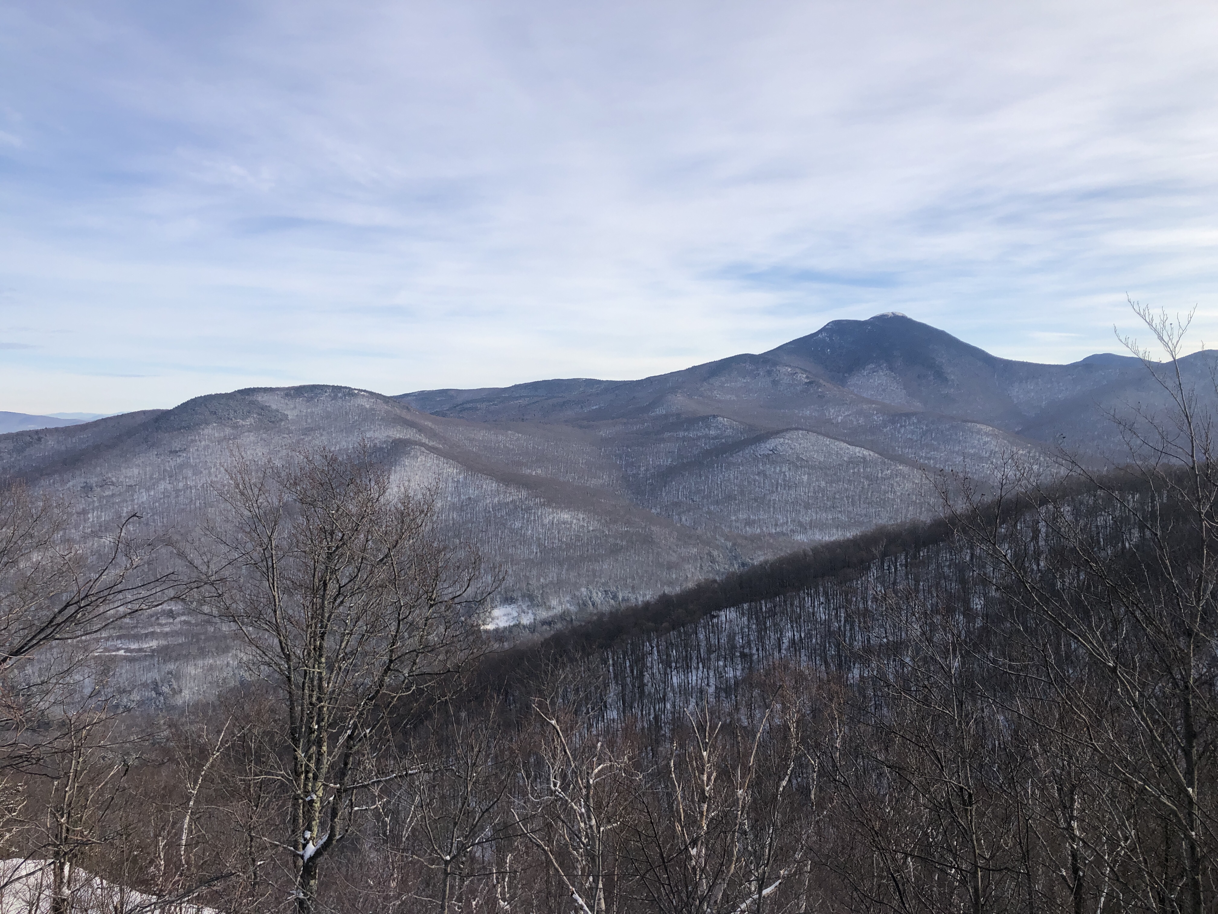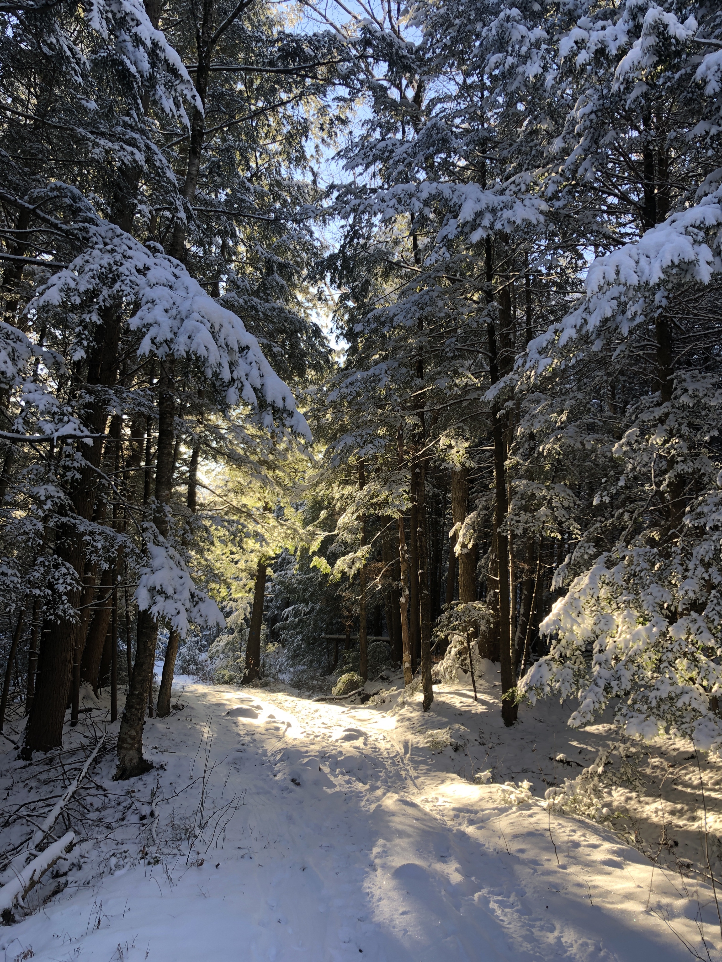 Dan and I were both feeling still a little under the weather from our shingles shots… But we knew we’d feel better if we got outside. Today we decided to take the catamount Trail East from Bolton Notch Road.… We’ve known the trail was there but we never found it. Pleasant surprise it was a really beautiful wide trail with no one on it save the tracks a loan deer and some sort of big dog like creature…