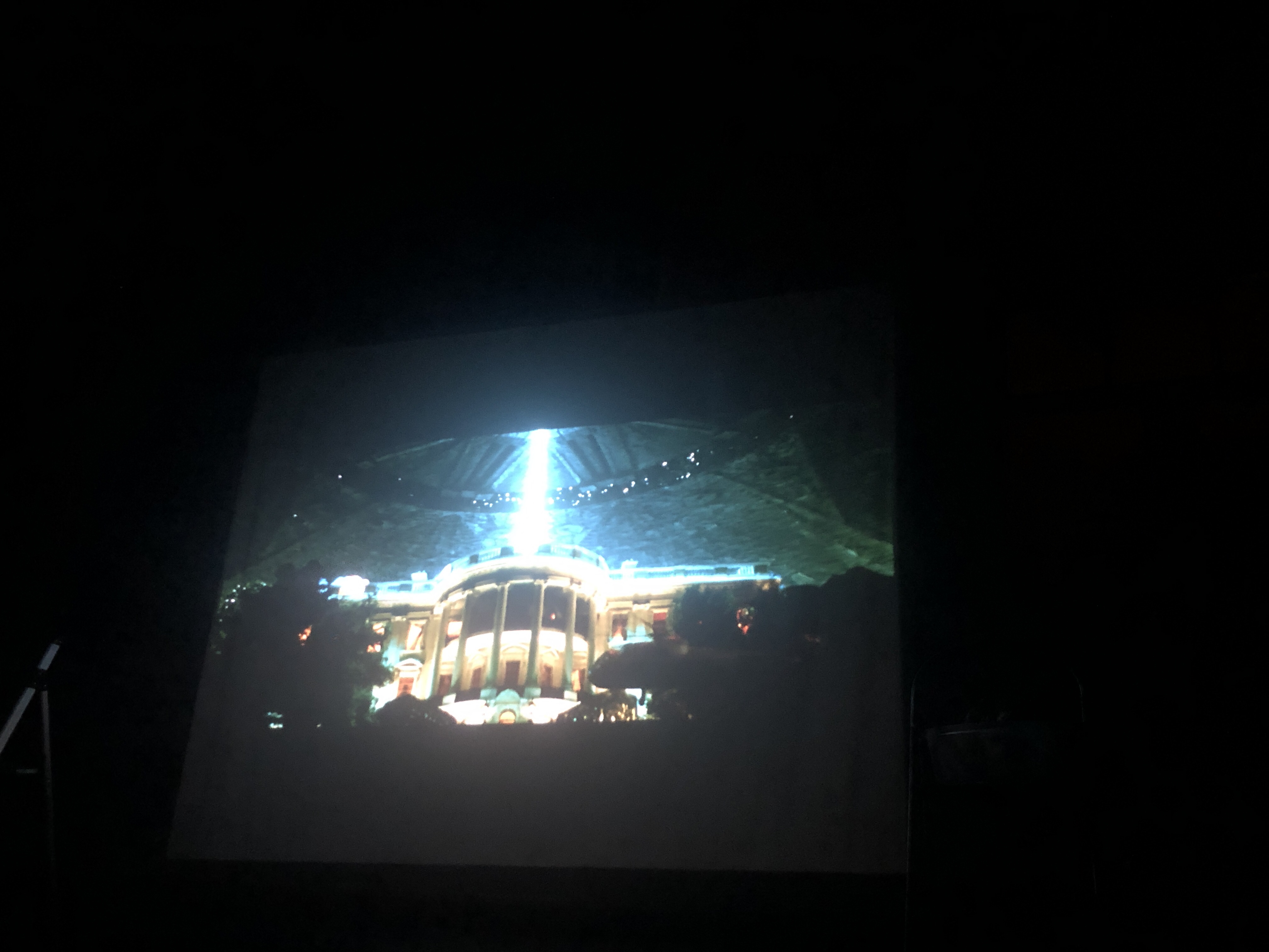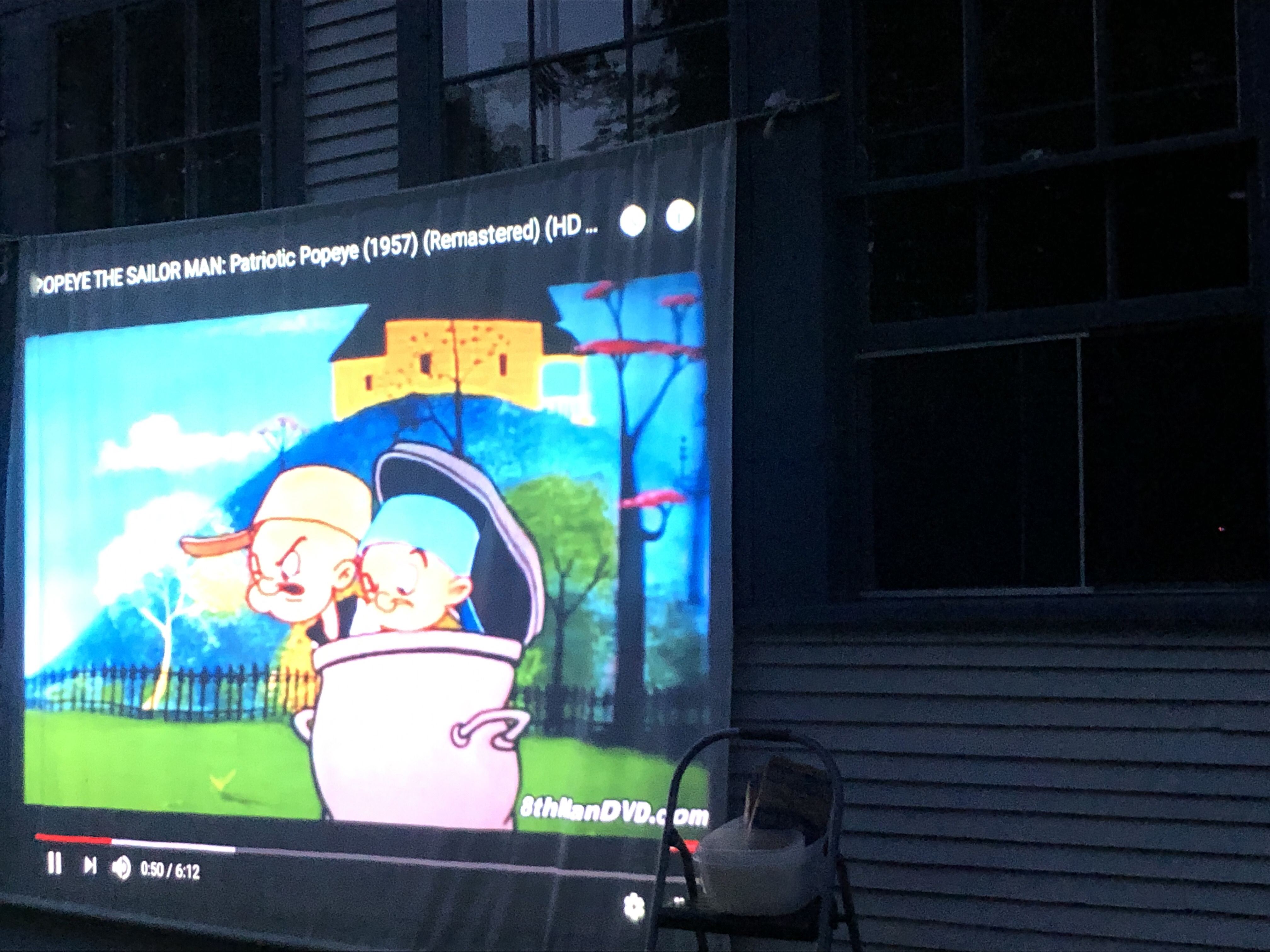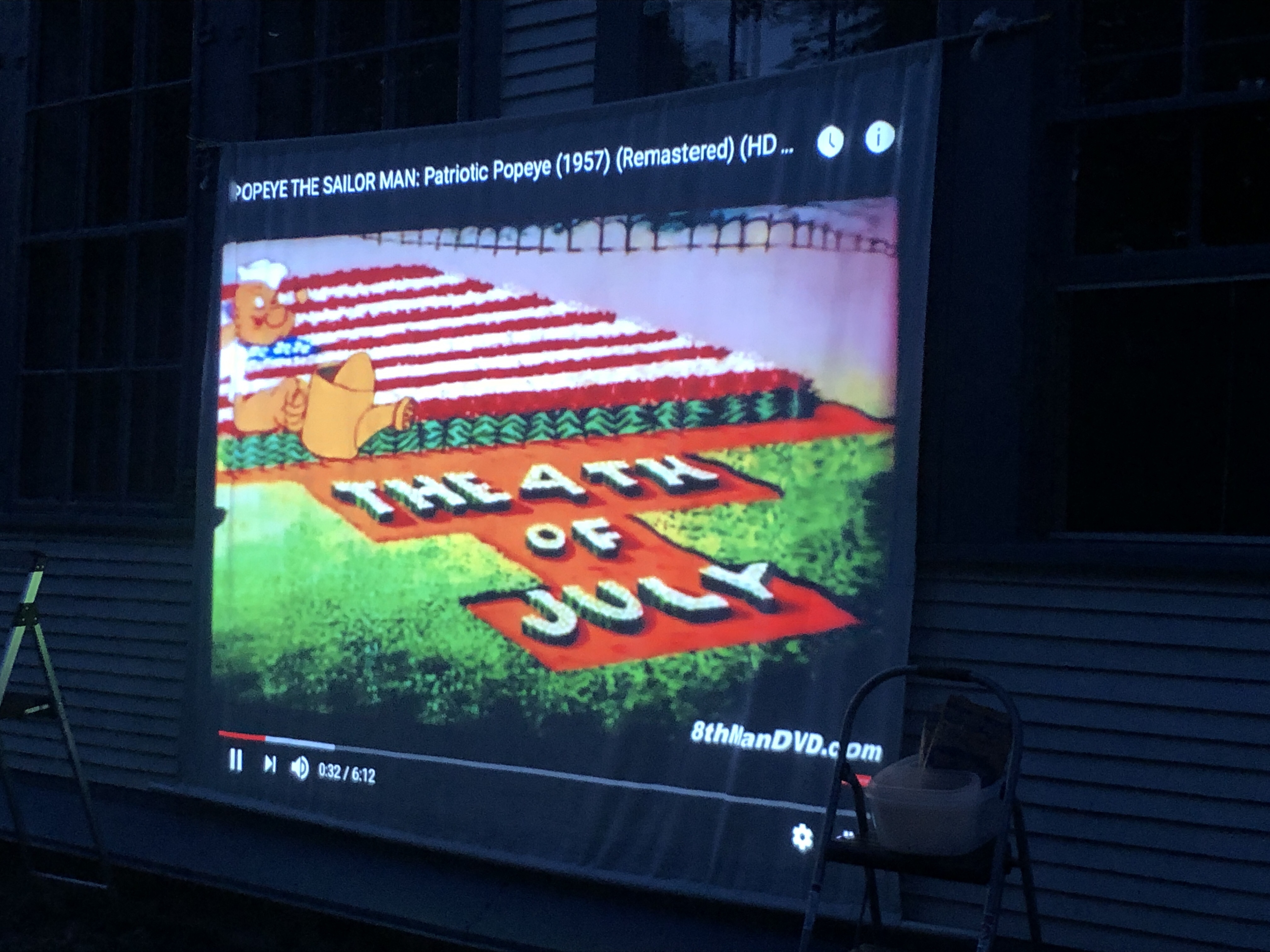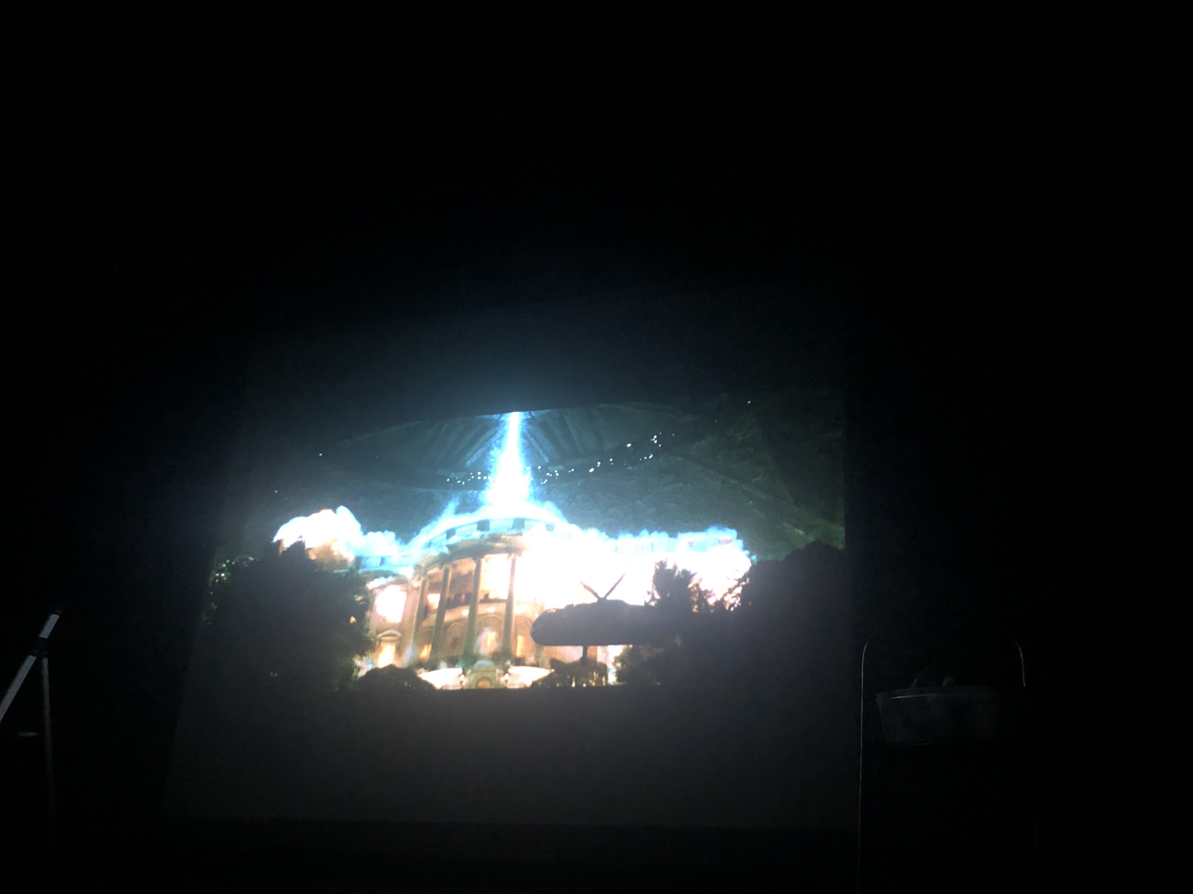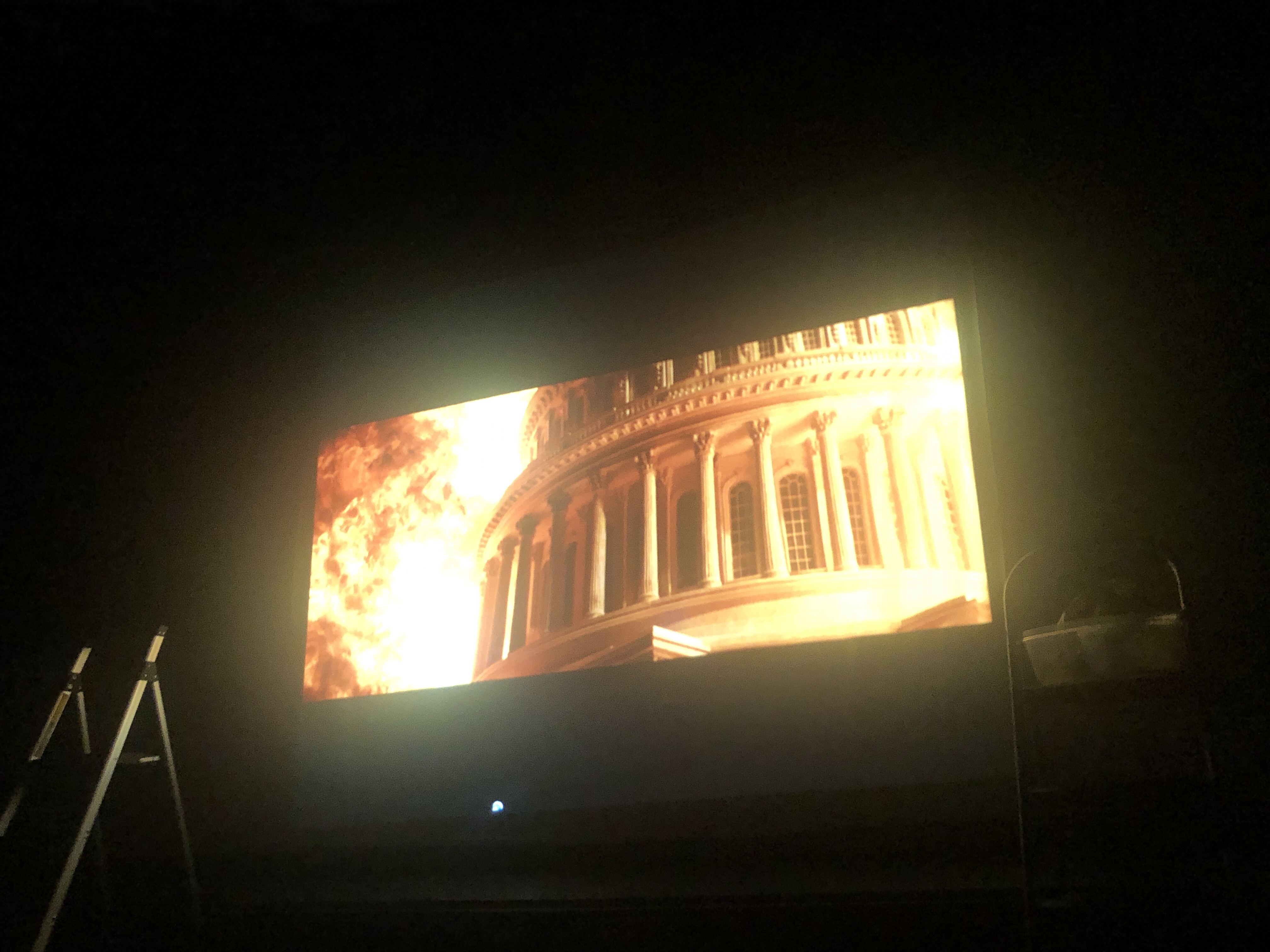 We walked the dogs, went for a run… Dianne garden and I worked on a project that I’m doing with my brother… Things we both enjoy doing. Around eight some of my friends started showing up for our movie night. We all kept social distance… Everyone brought their own drinks and snacks. And then we turned on the movie… We watched a Popeye cartoon… Then a video of some recorded fireworks… And then we put on Will Smith in Independence day. It came out in 1996… And I don’t recall ever watching it. It was great in a schlocky Hollywood kind of way. We had about 15 people spread across the yard watching it… And we had borrowed a very bright projector so it was really fun to watch.