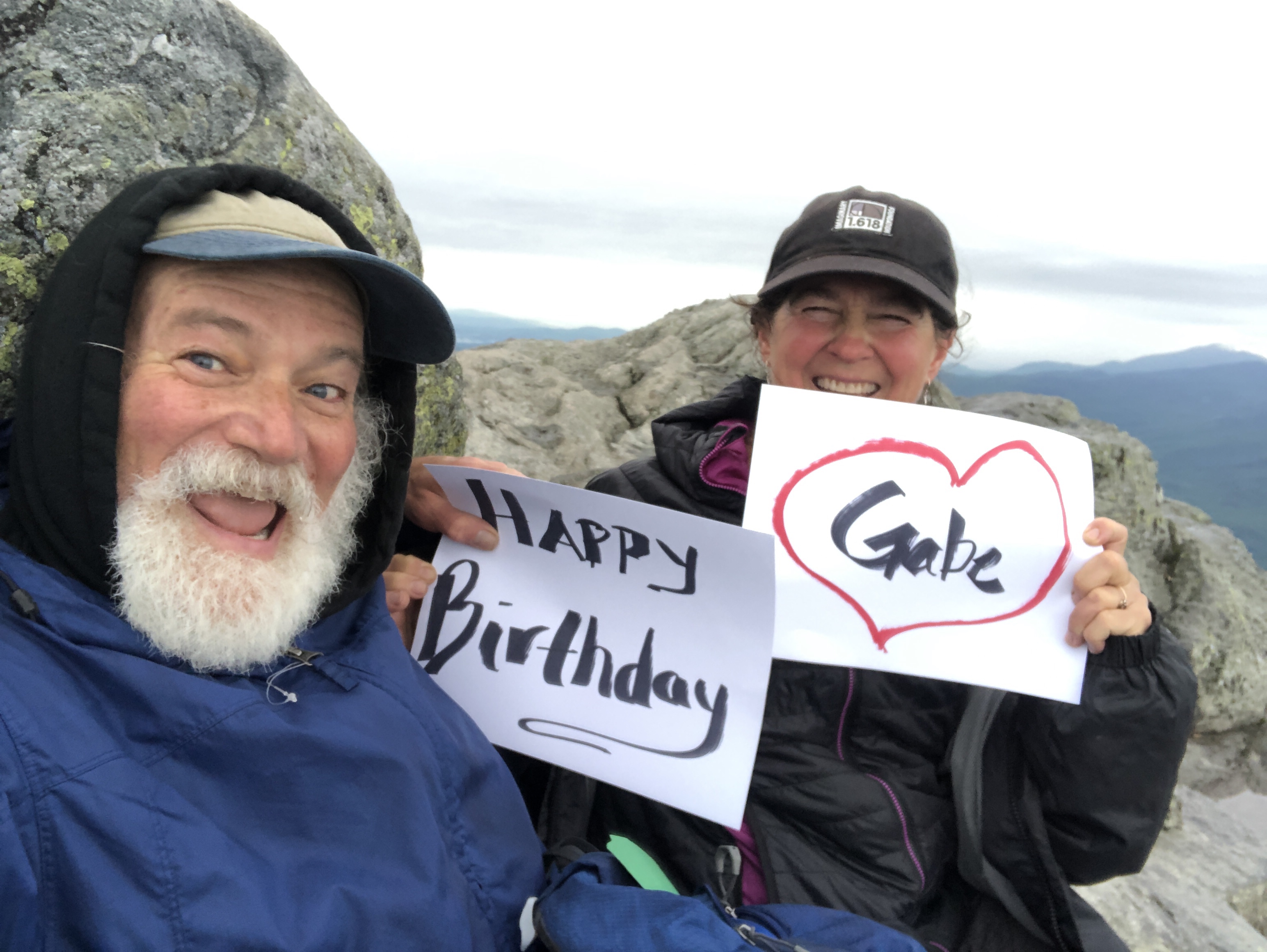 Since ‘Diane and I couldn’t be with him… We started the day super early with a hike up Camel’s hump. We Got on the trail around 6 AM and took a birthday picture for GabÉ at the top