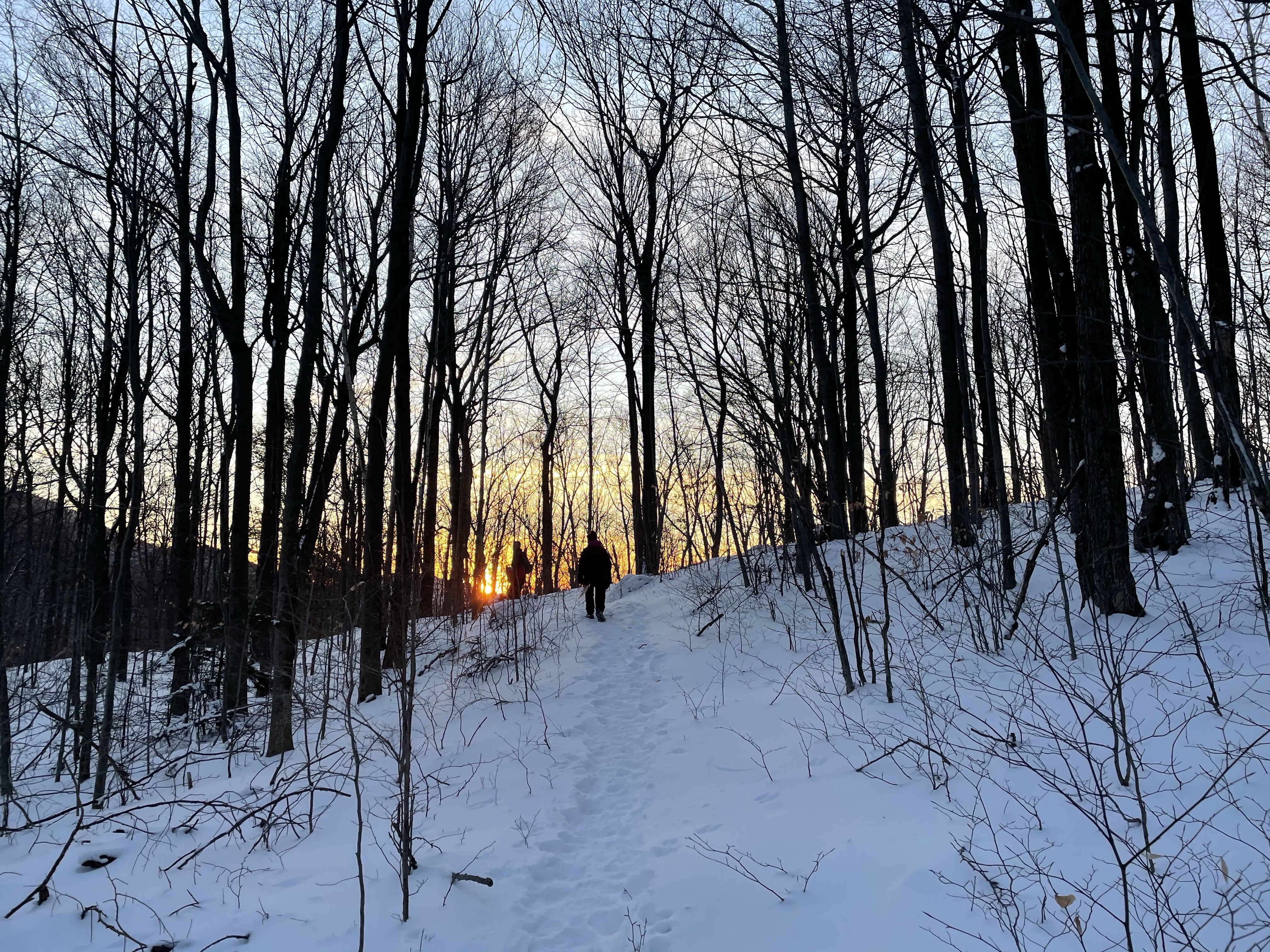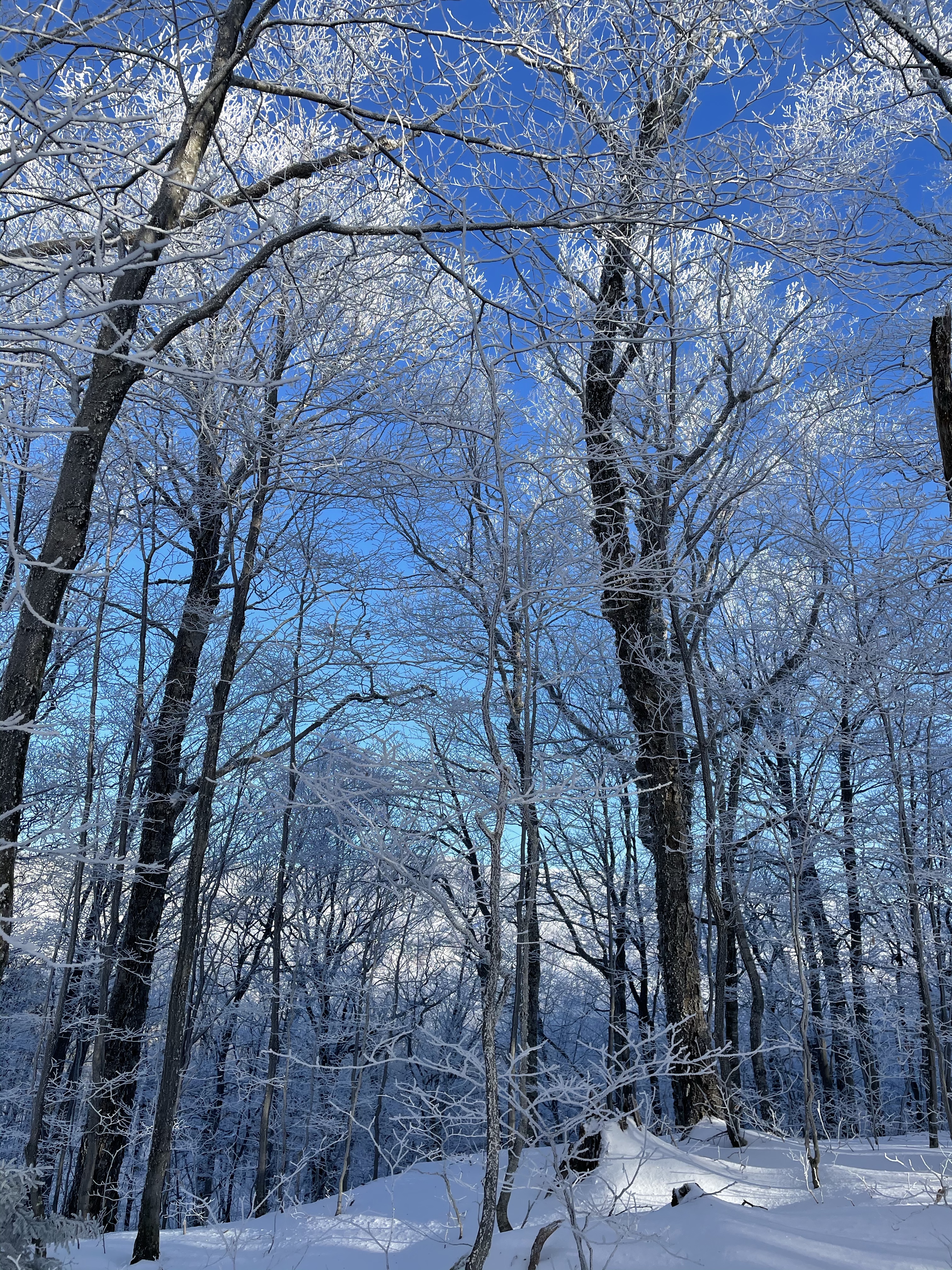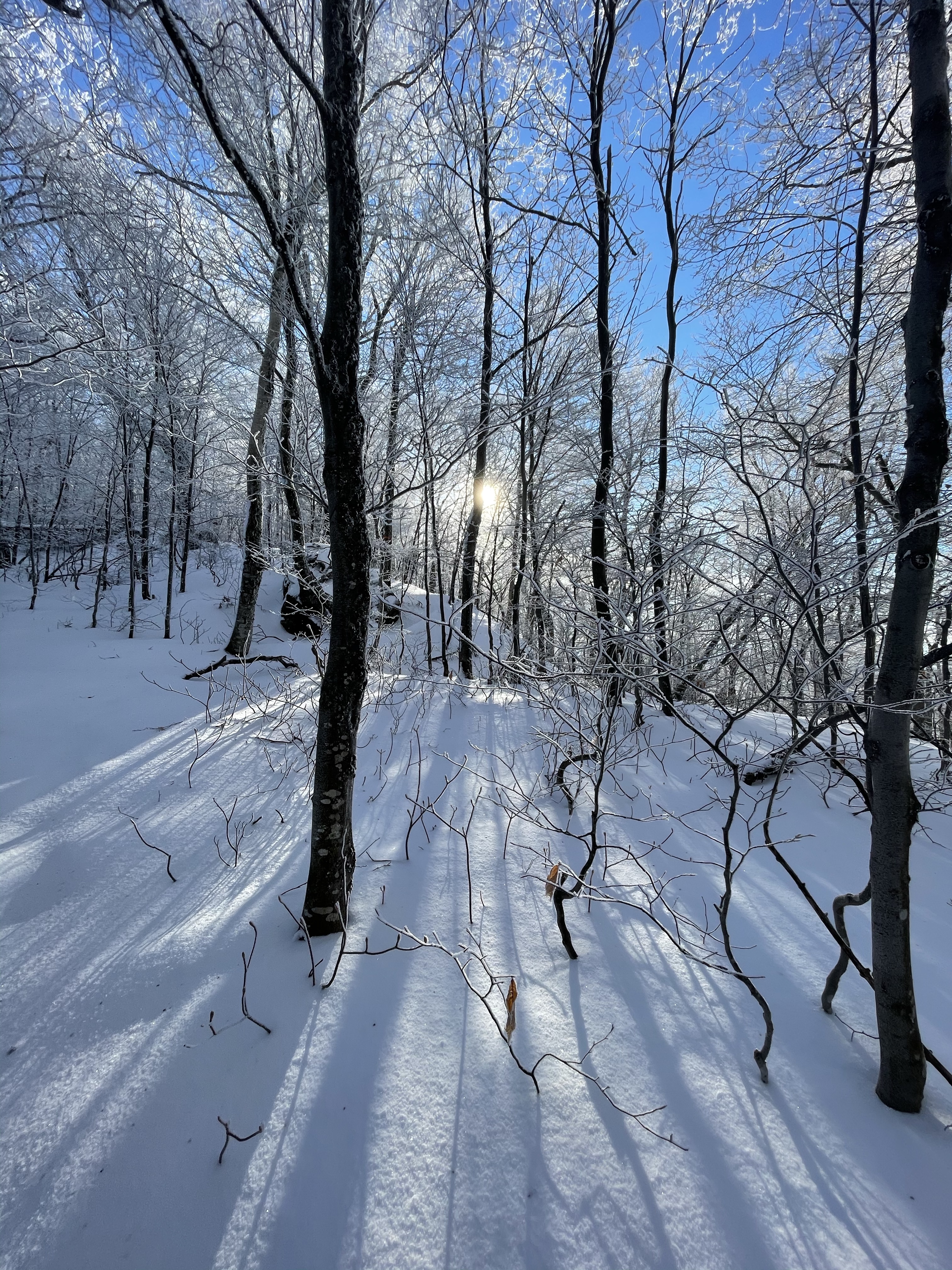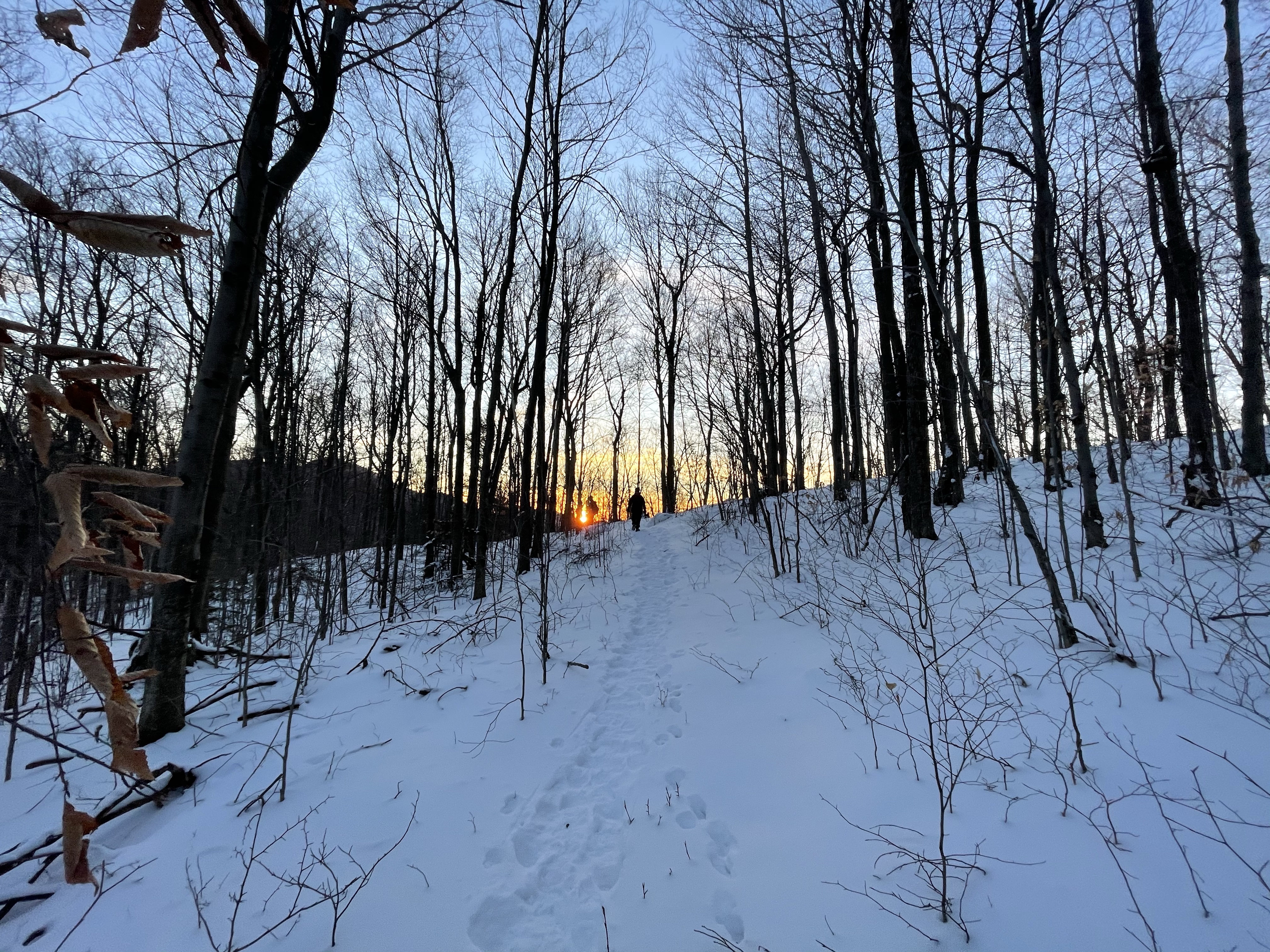 We also took a 6 mile hike . We started up the notch road and hiked up to the long trail on the ridge between notch and Bolton access road . There was more than a foot of snow up there .. much of it fresh tracks , we had two sleds with us which was so fun