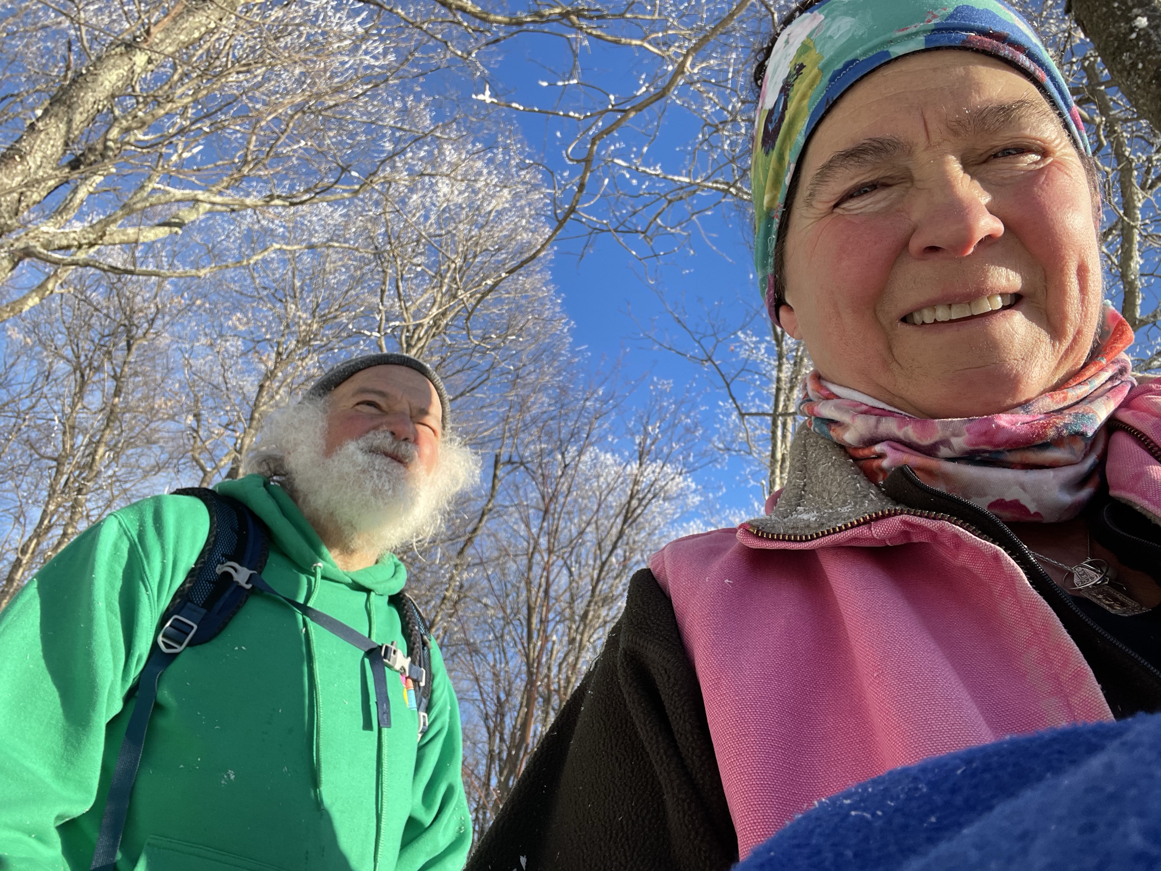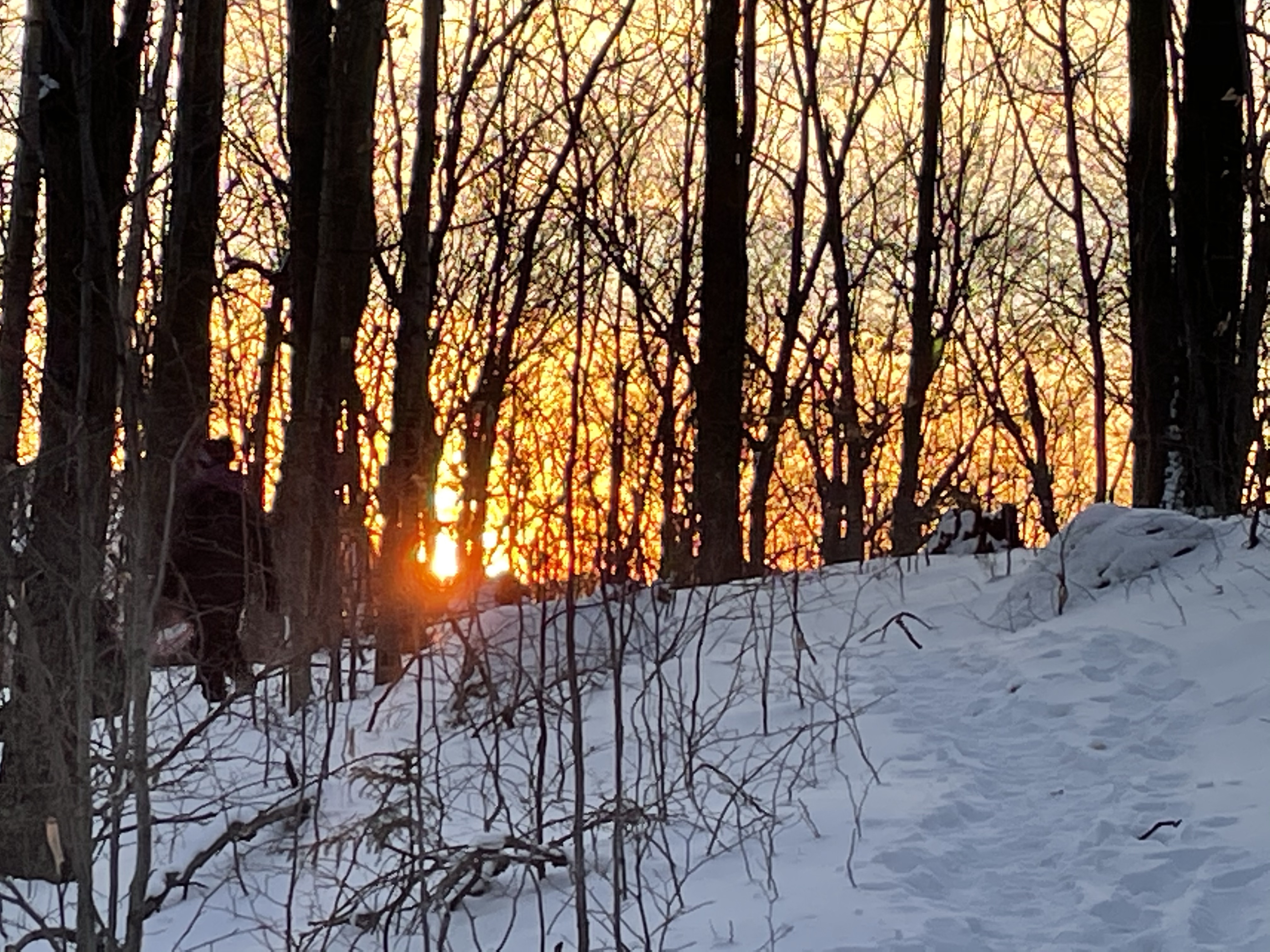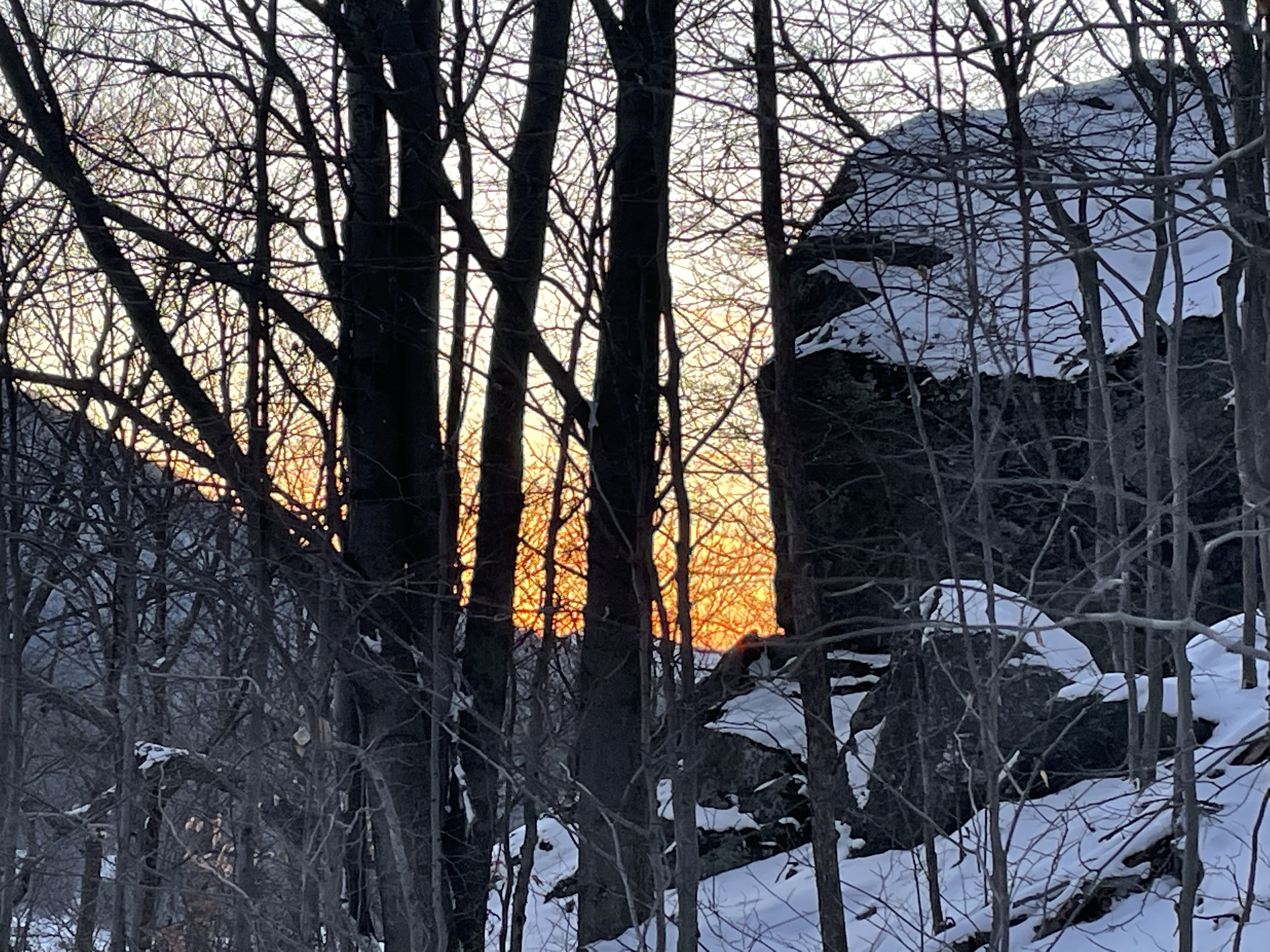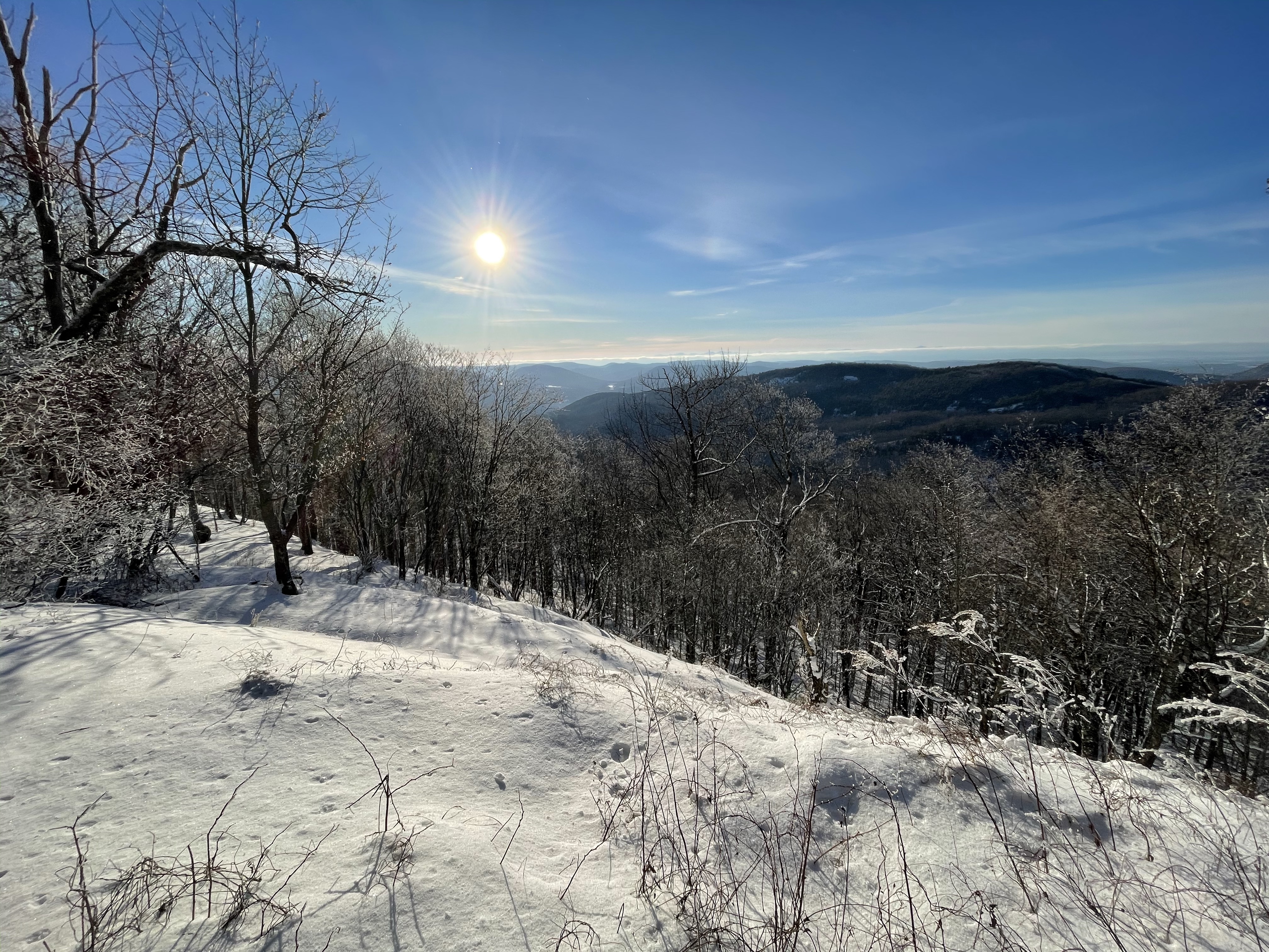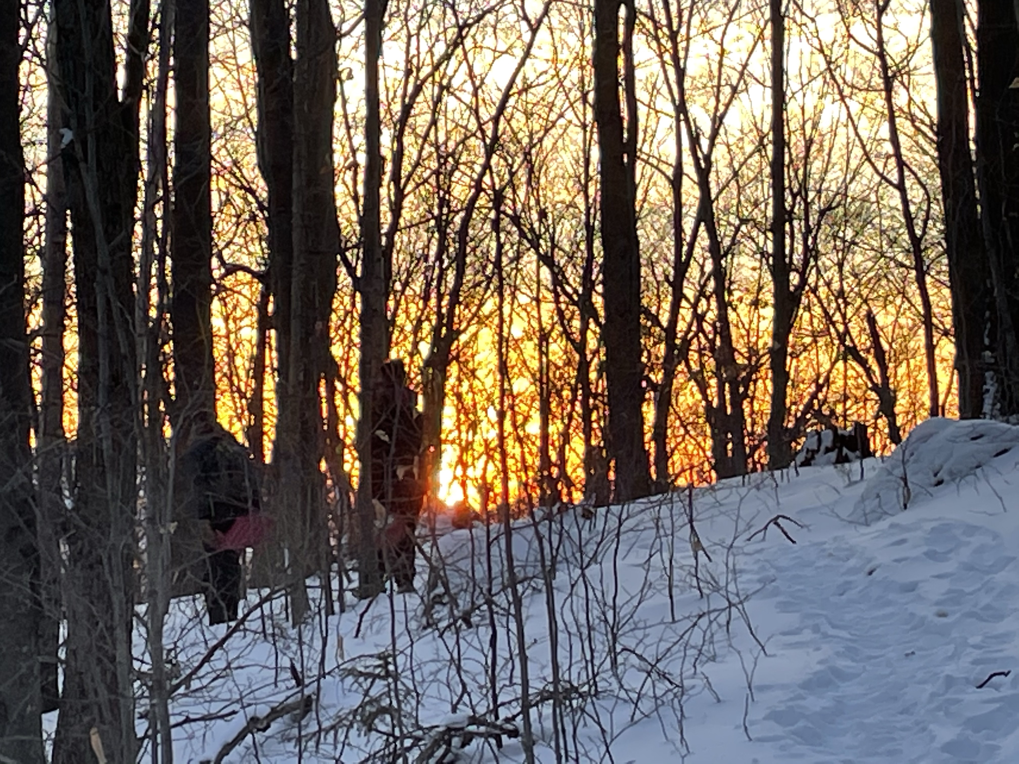 We also took a 6 mile hike . We started up the notch road and hiked up to the long trail on the ridge between notch and Bolton access road . There was more than a foot of snow up there .. much of it fresh tracks , we had two sleds with us which was so fun