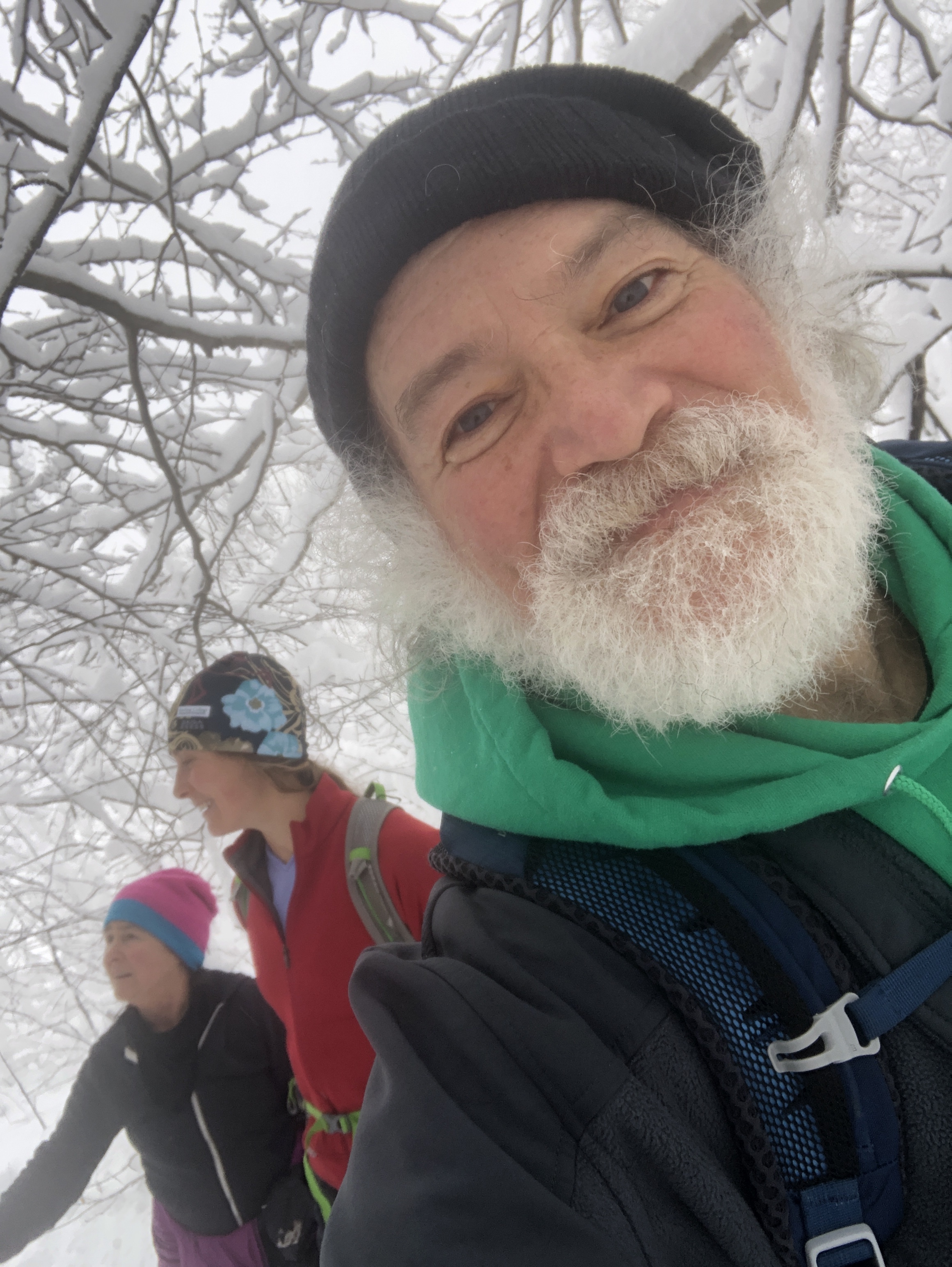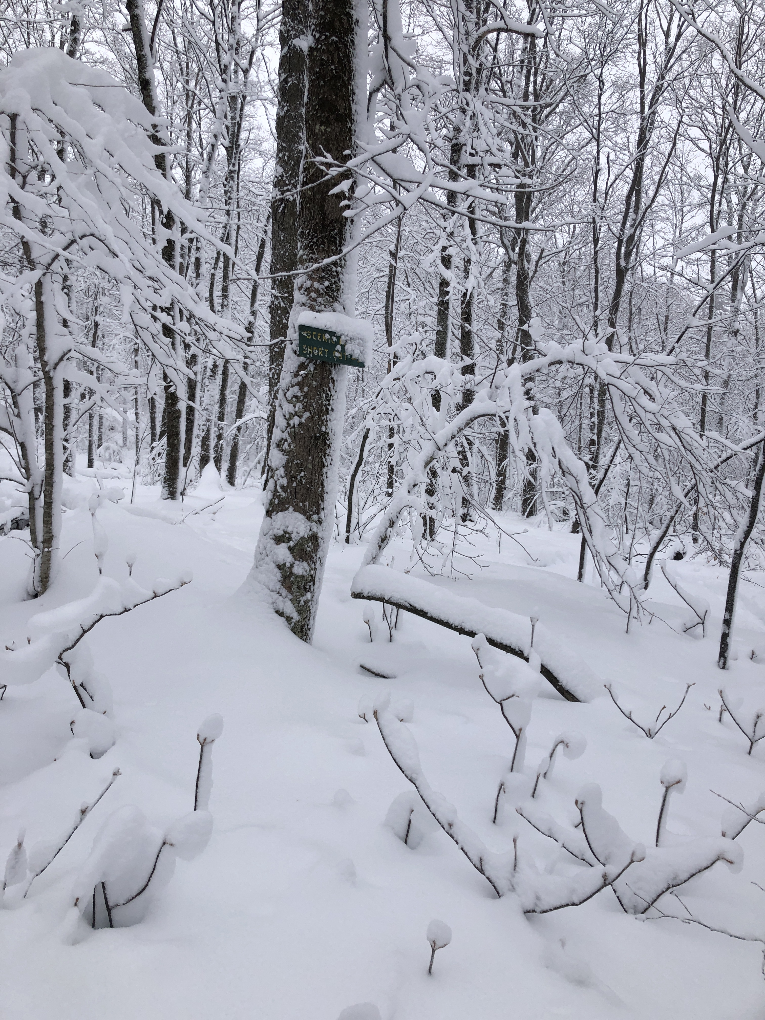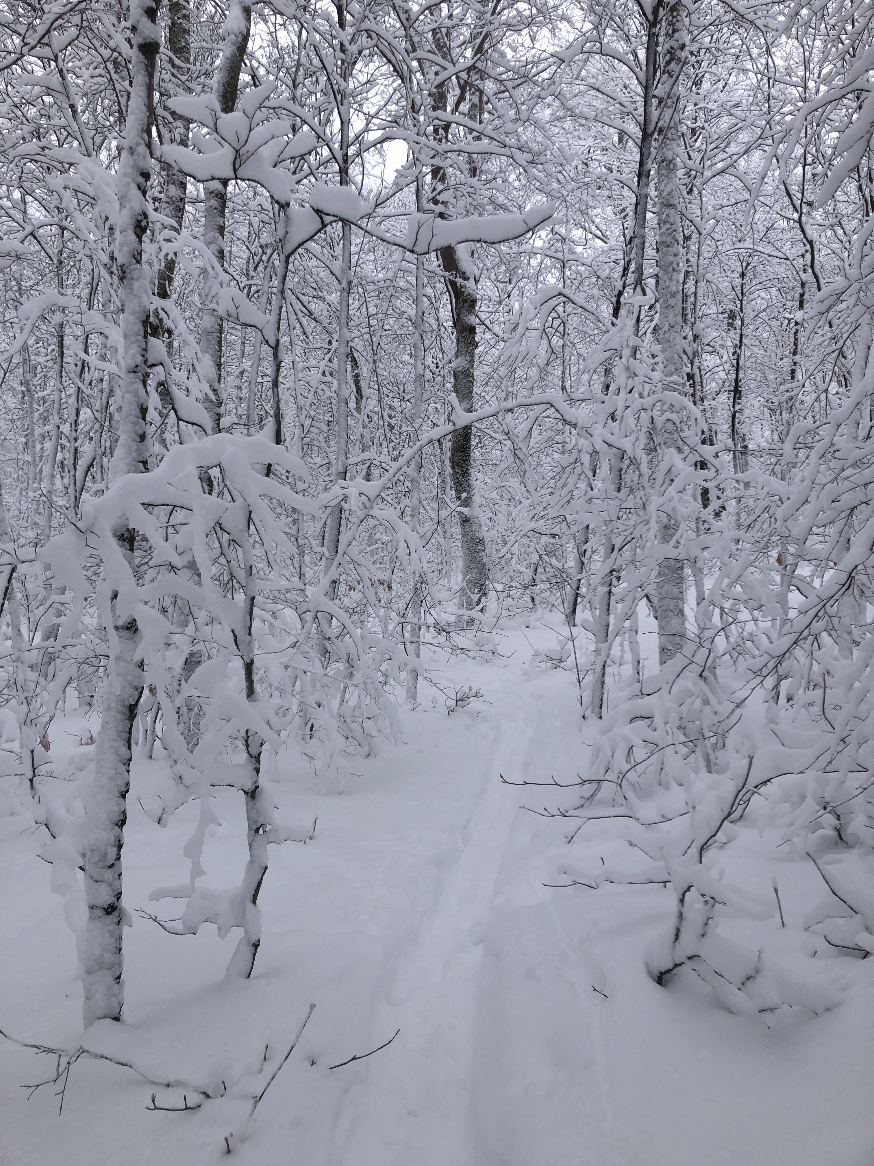 Gosh what happened on Sunday?… Not much which was kind of wonderful. Diane ‘Kyle and I took advantage of the deep new snow To explore some of the trails around John’s pond at the top of happy Hollow (I love the name happy Hollow)… There’s been a heavy snow after some rain and lots of wind. It made for a magical icing like affect over all the trees.… The snow is pretty deep in some places over my knees which was nice… This is the first real so far we’ve had. It was beautiful