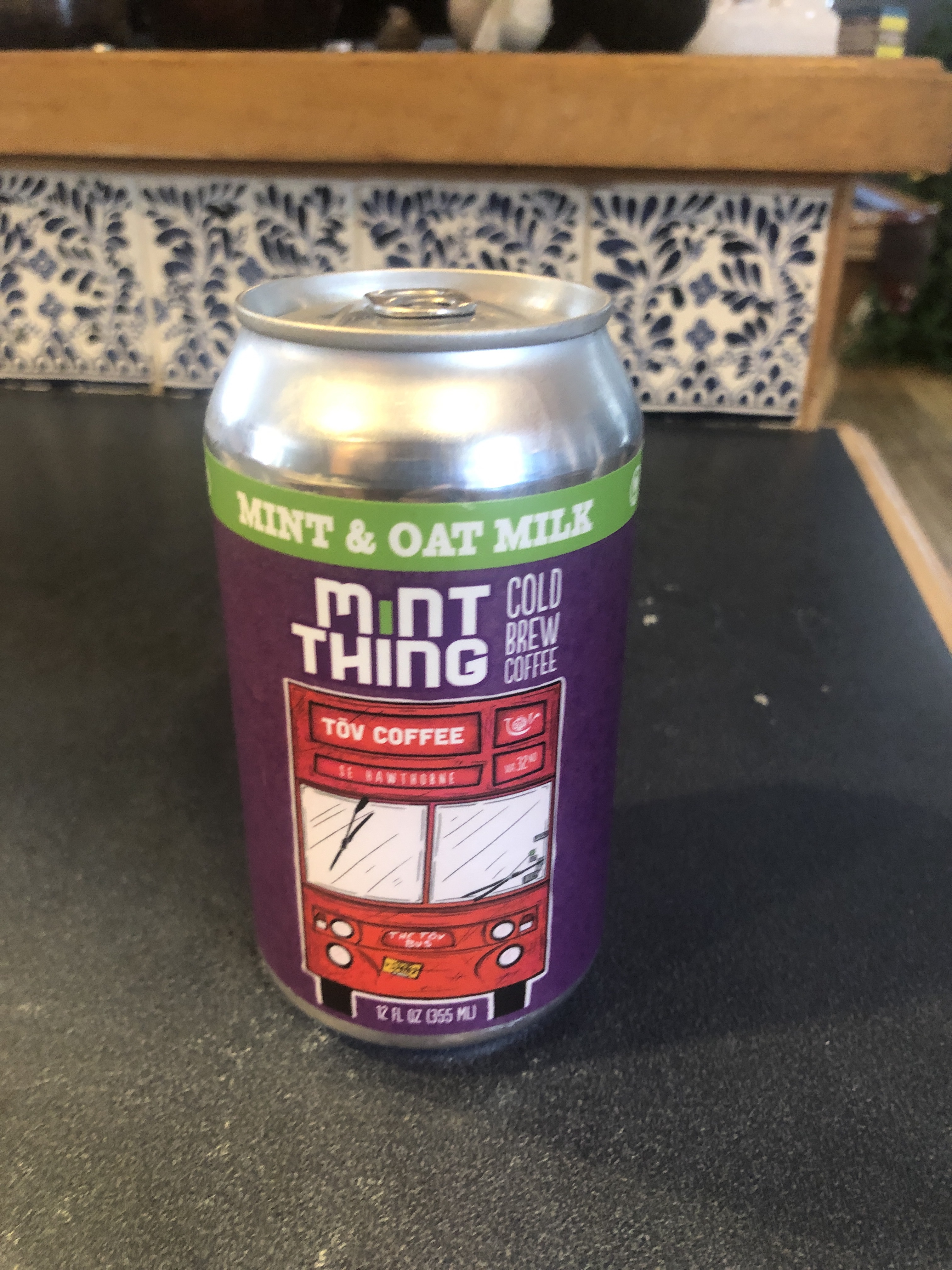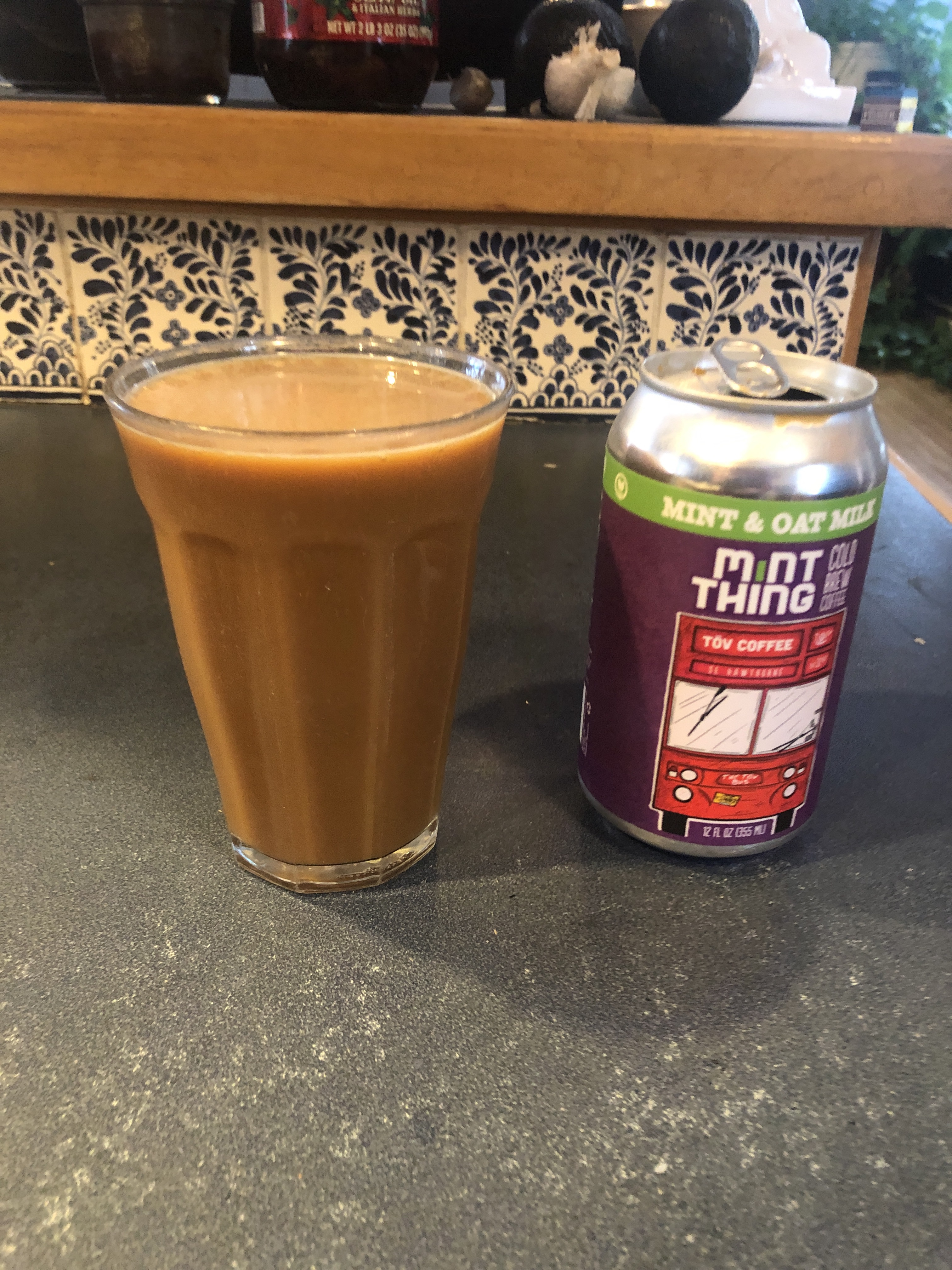One interesting thing I tried today was a Christmas present from GabÉ… It’s called a “mint thing”… It’s a strange mint flavored cold brew coffee with oat milk thing…
