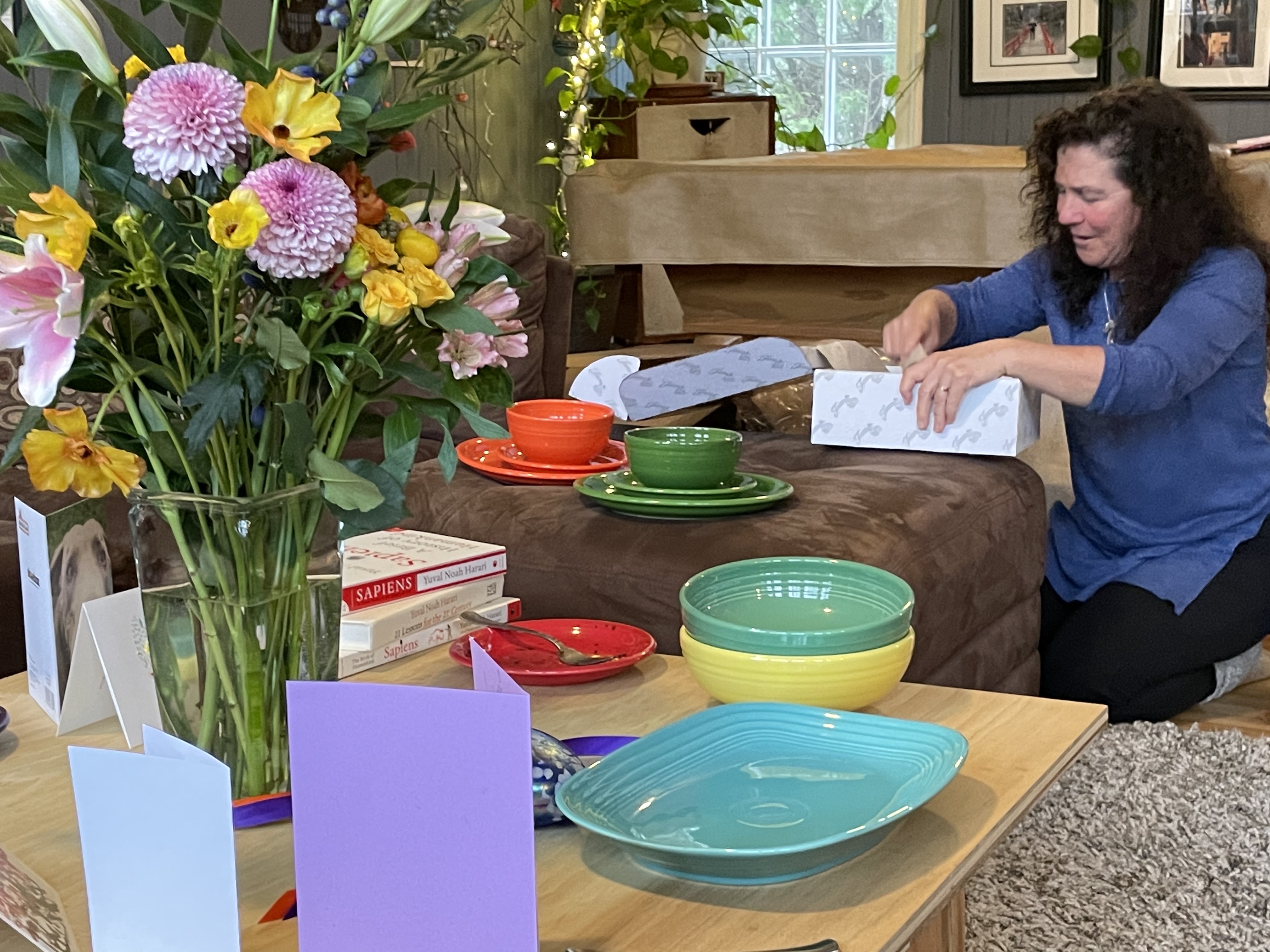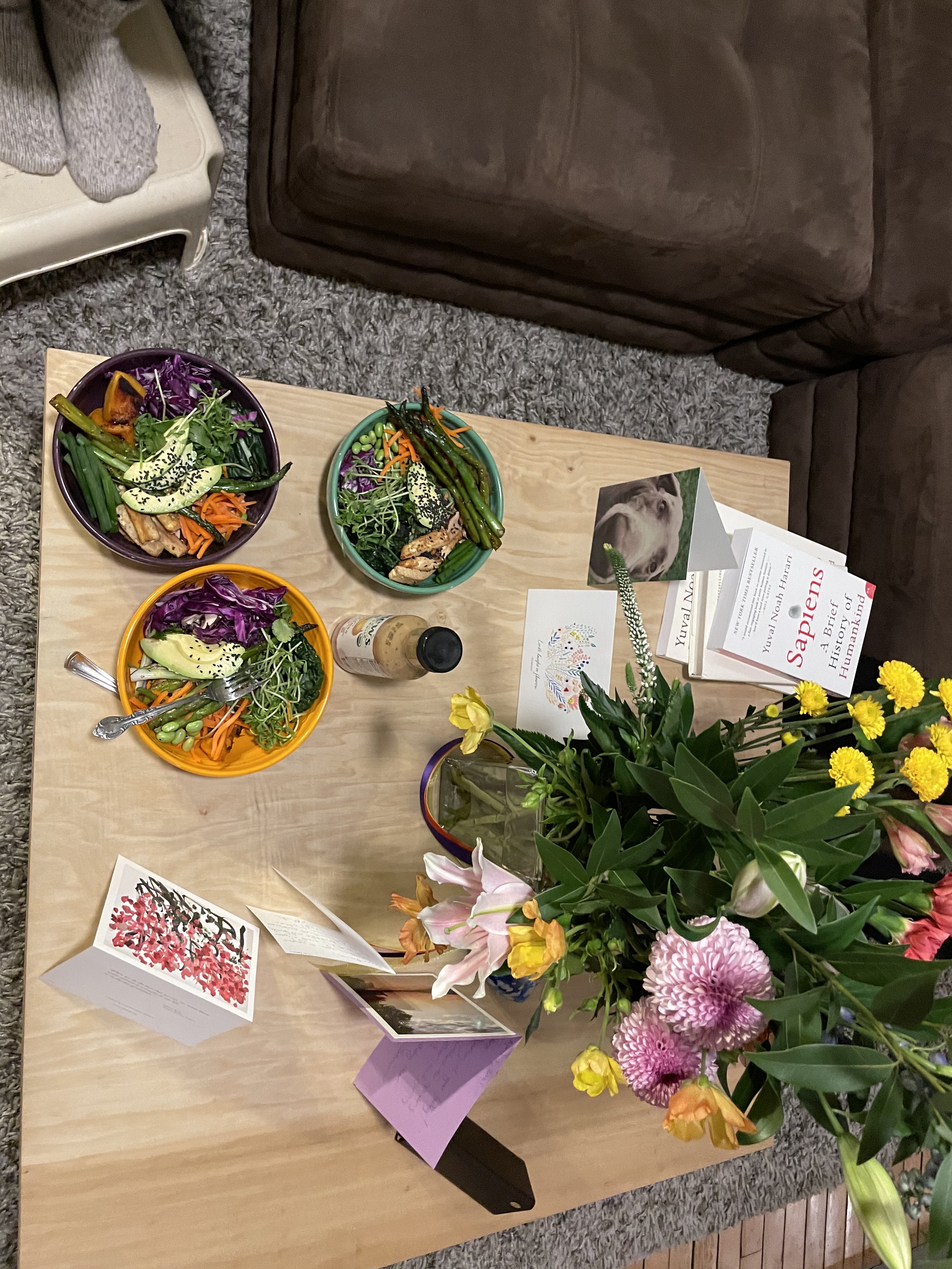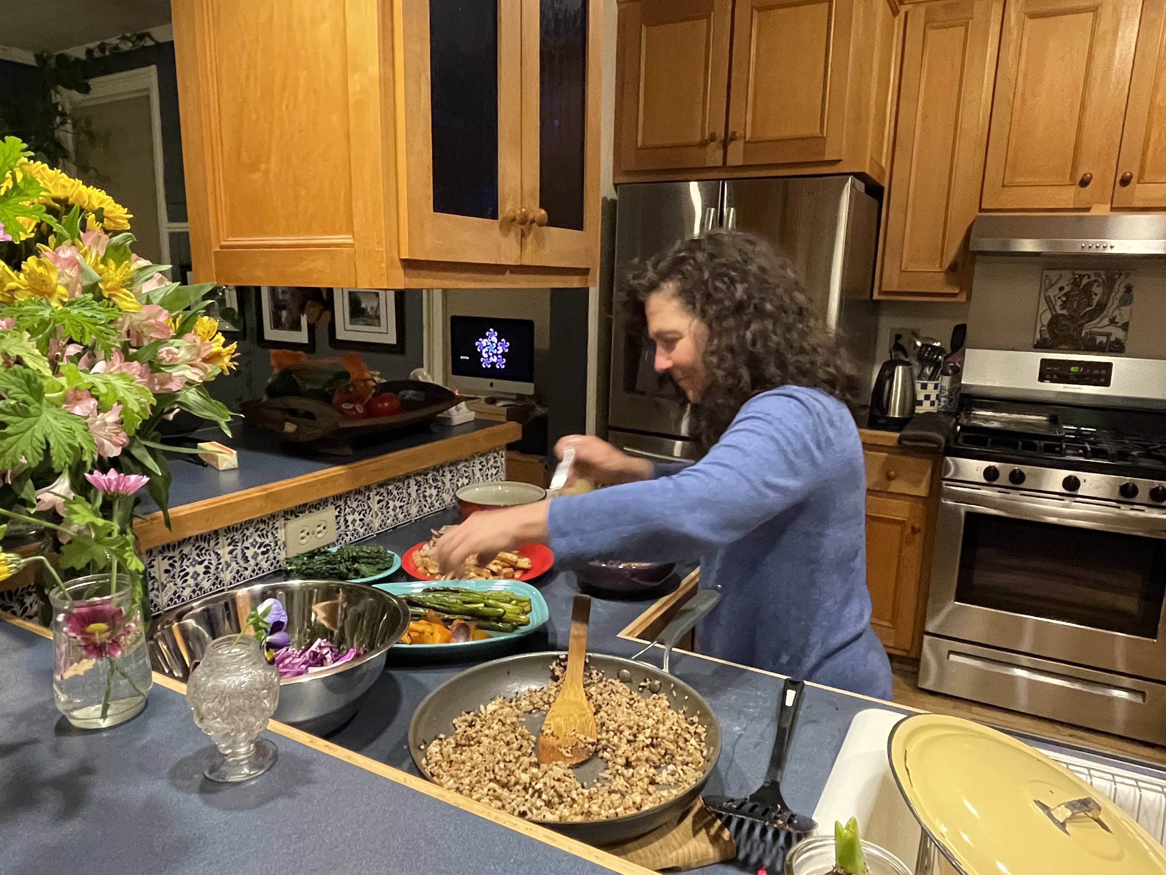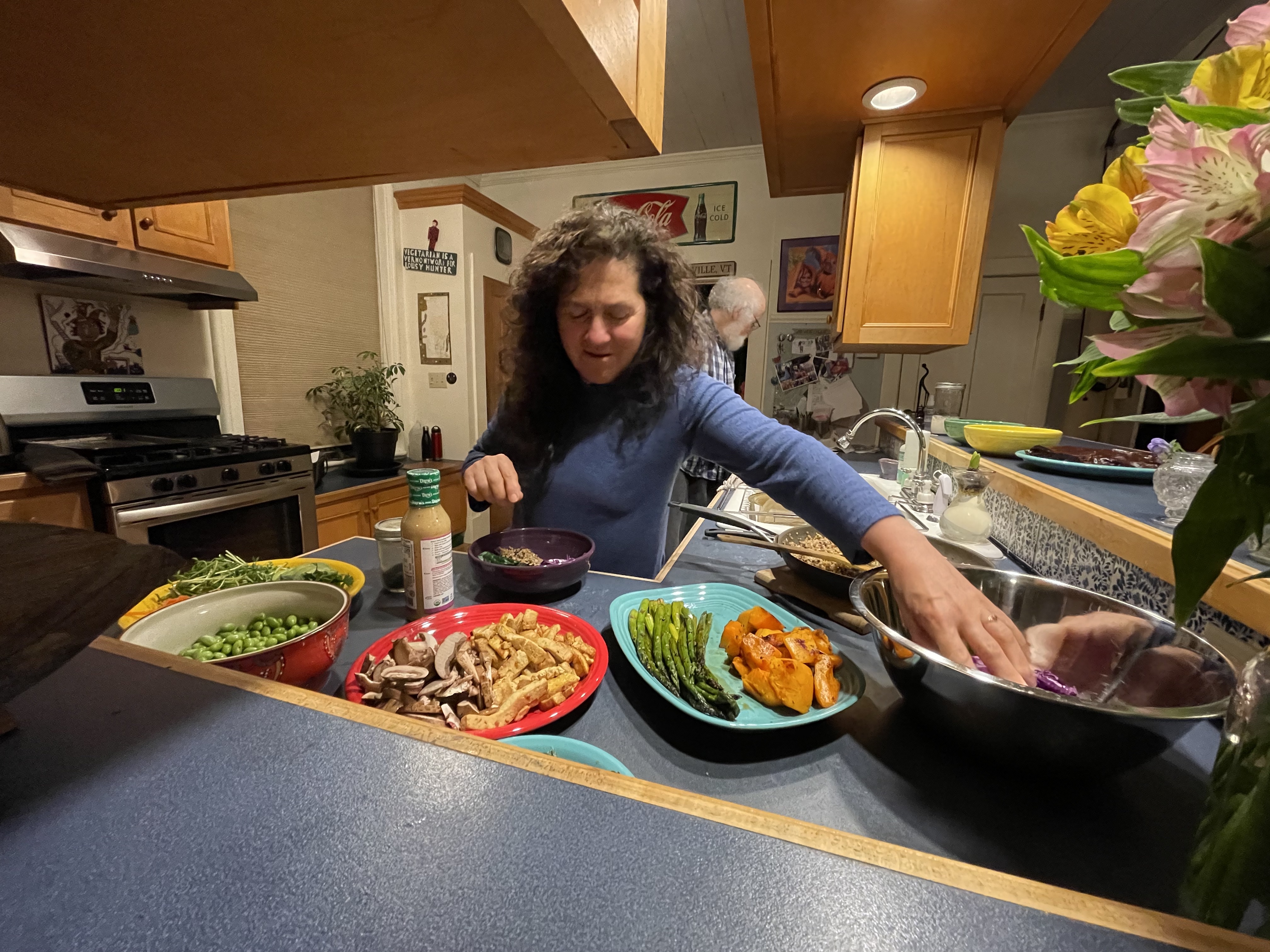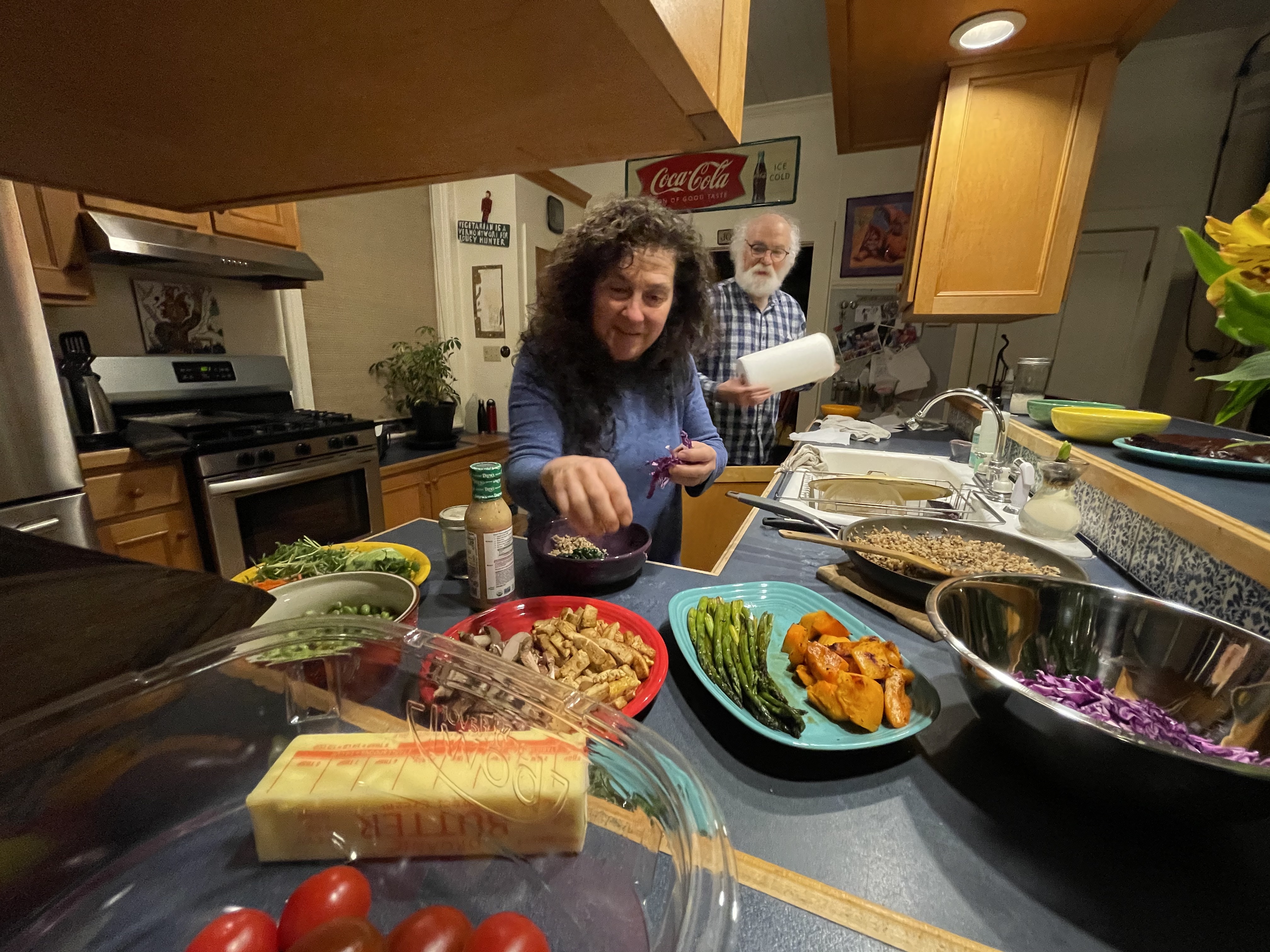 It was nice to see Mike’s wife Sue and their daughter Tessa.. We had a lovely dinner out overlooking the lake… Sue had made vegan matzoh ball soup with fresh ground horseradish… Just my style