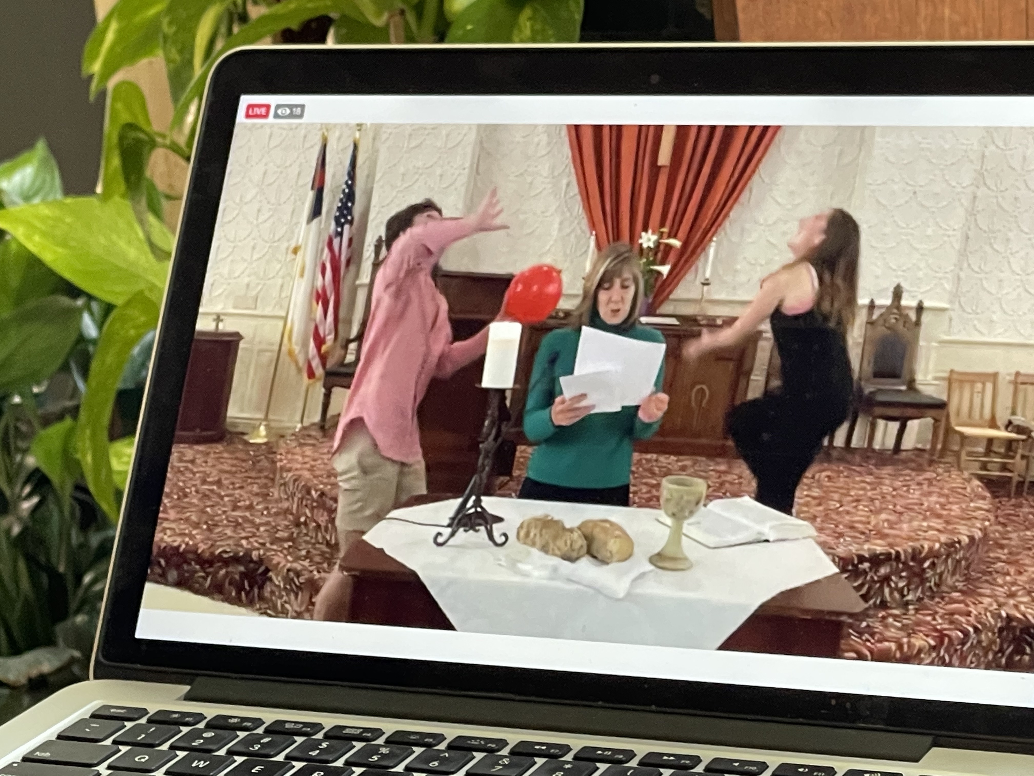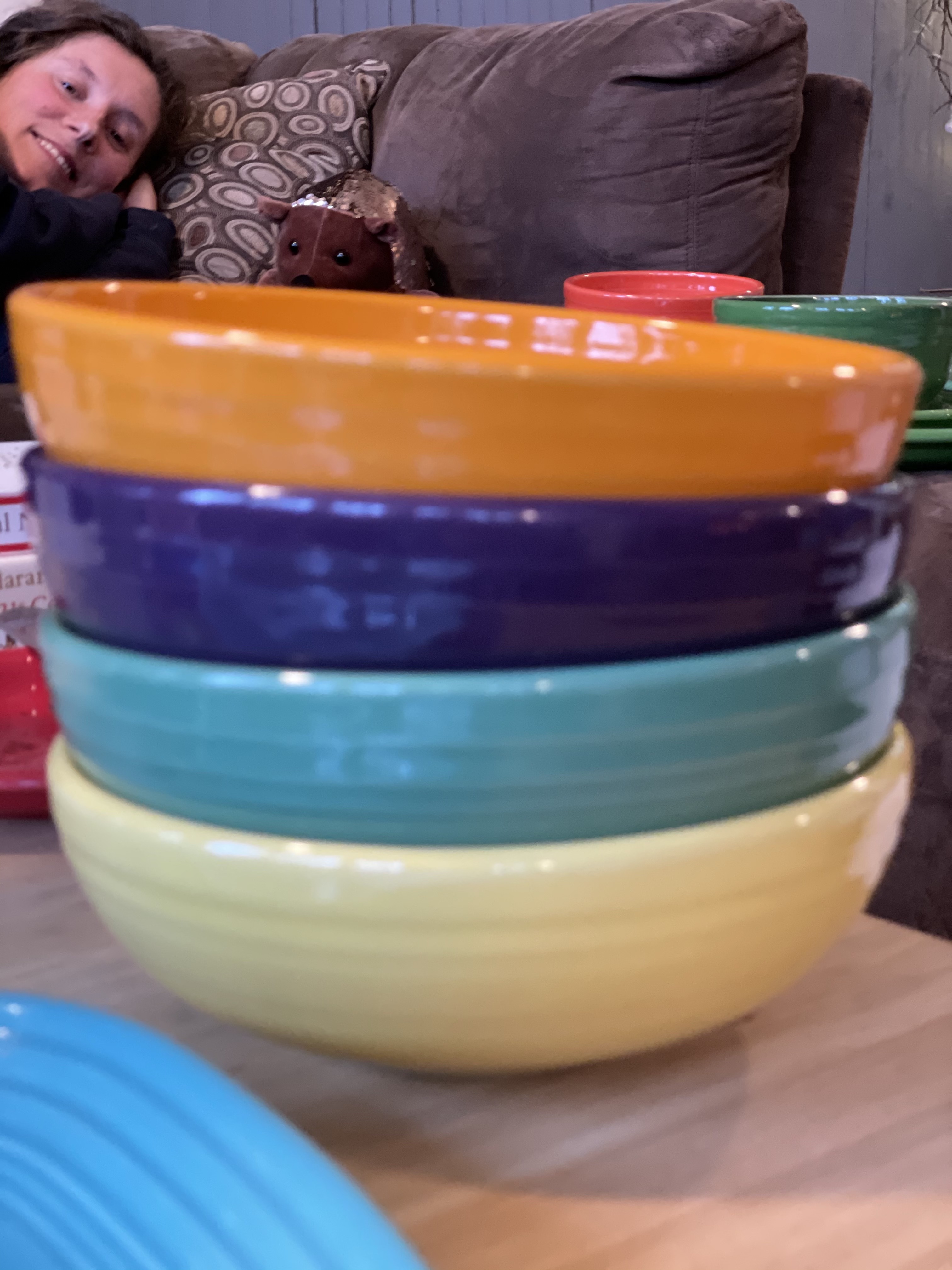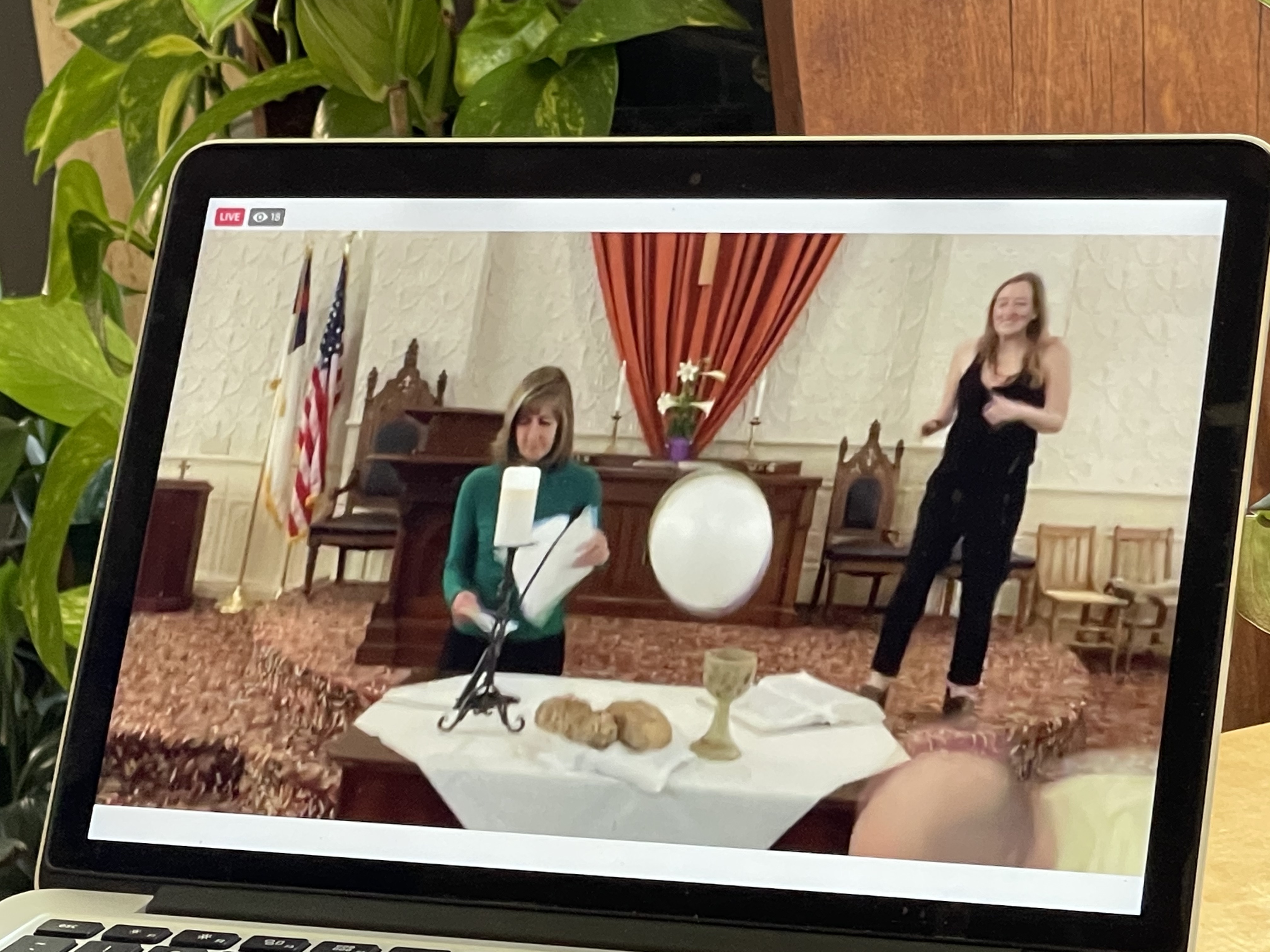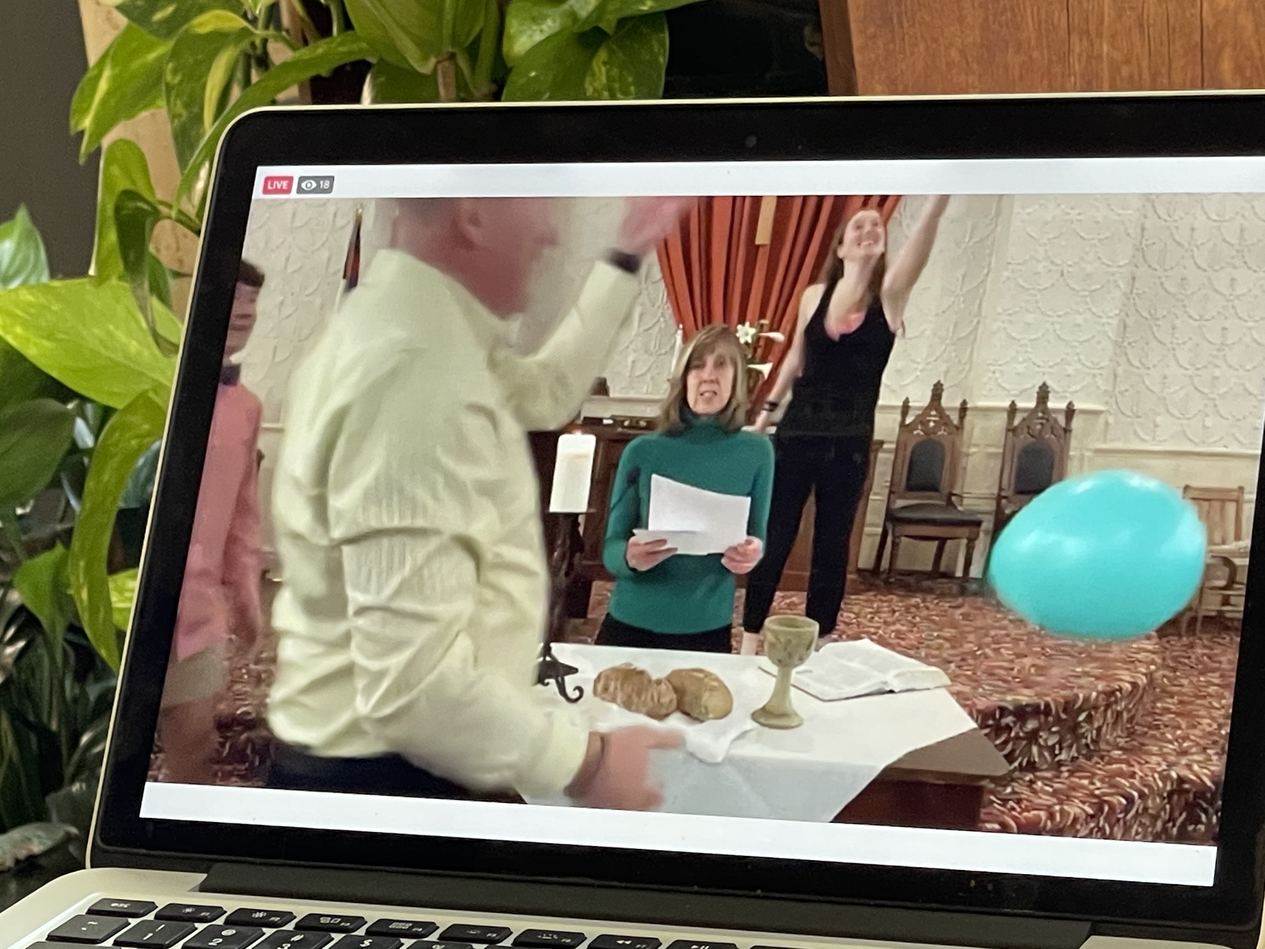 We are the additional treat this morning of watching ‘Kyle’s mom ‘Tracy and dad John we’re both Congregationalist minister’s give their Easter Sunday service. John and ‘Tracy are getting to be good friends of ours… They have such a nice philosophy of life we really enjoyed watching the end part of the service. It ended with a really nice participatory thing with Kyle’s parents and brother and sister bouncing balloons around . They are wonderful folks… And getting to be good friends of ours.they have a very human approach to religion and life that appeals even if you’re not a christian..