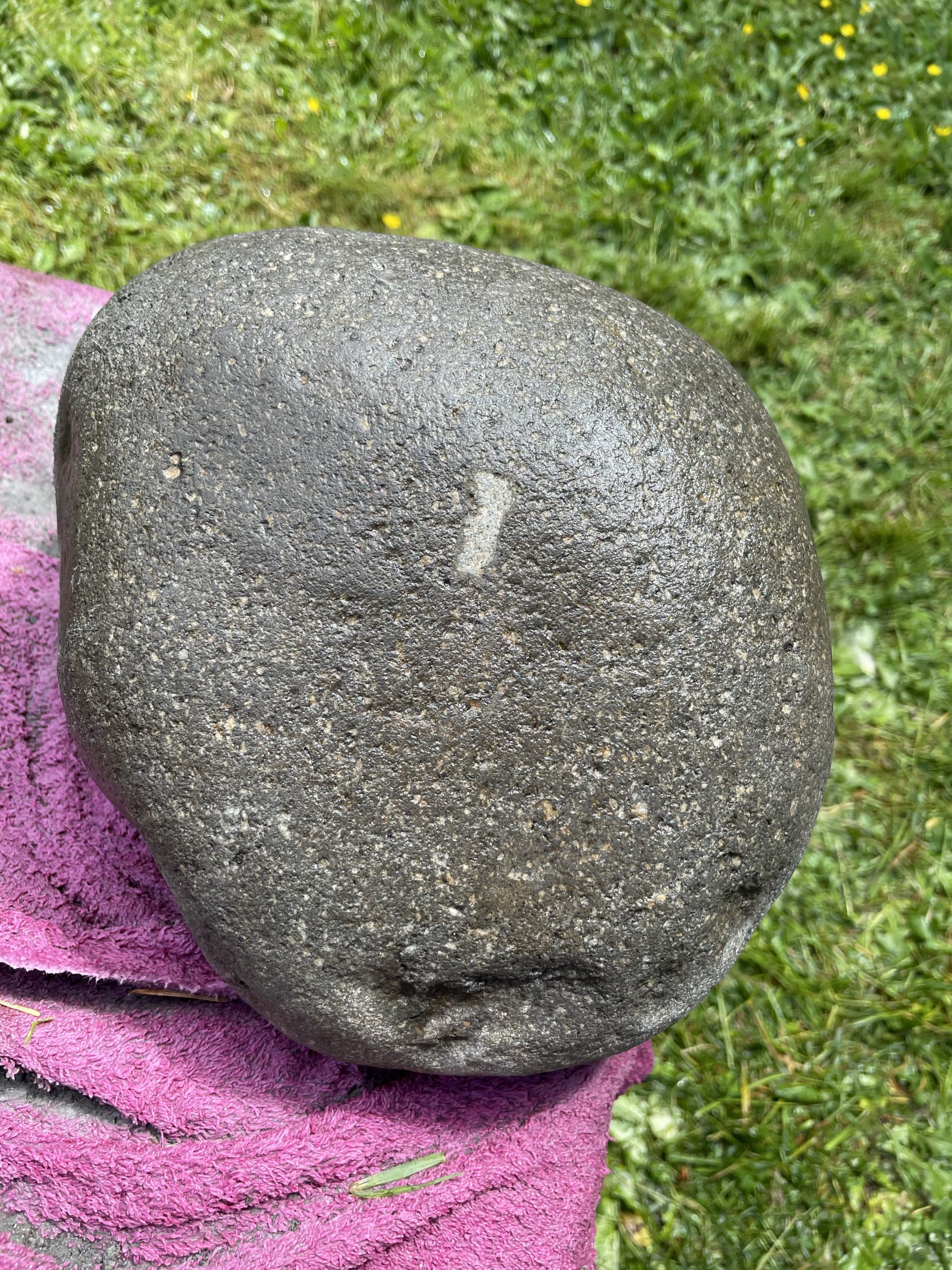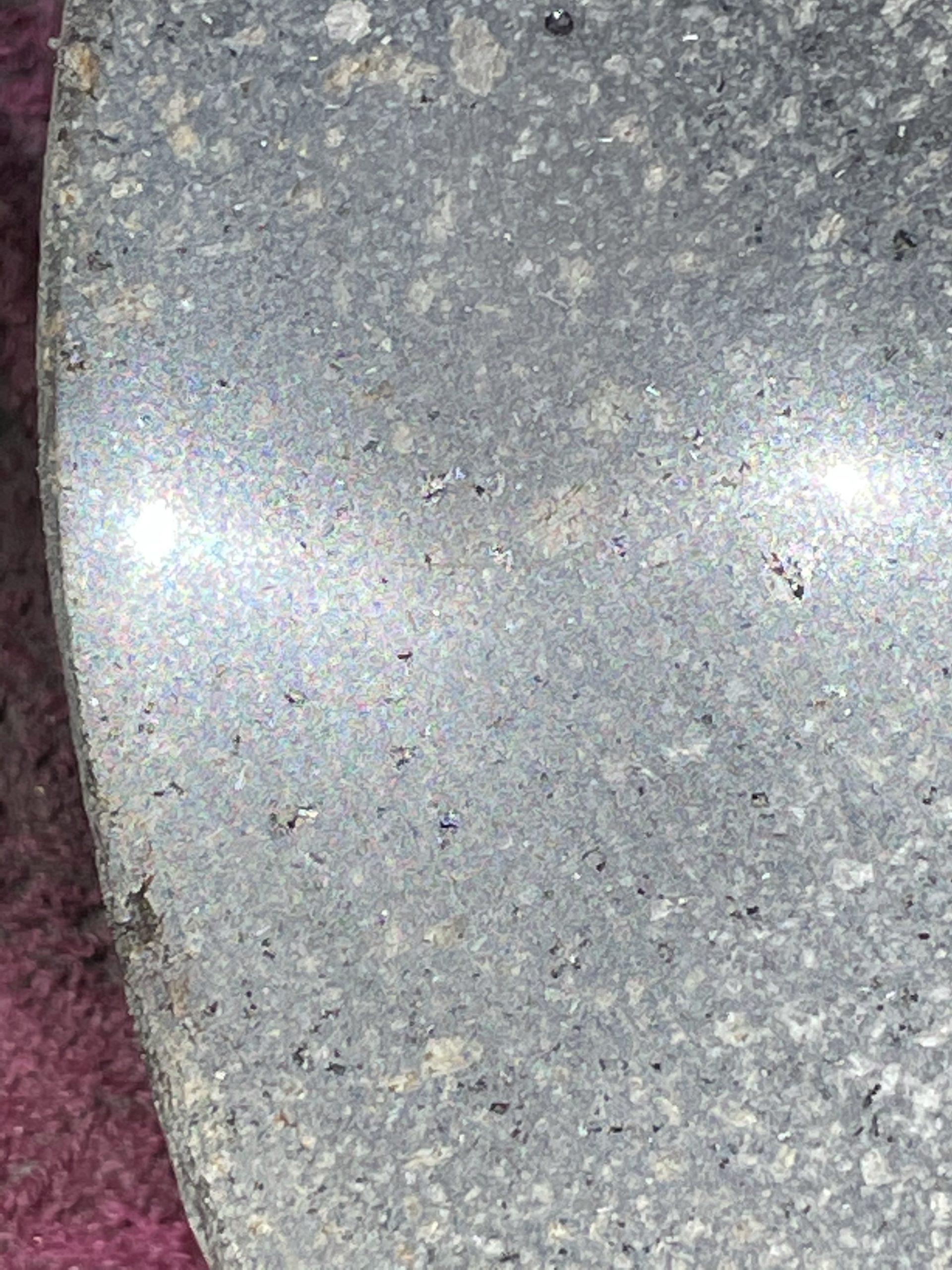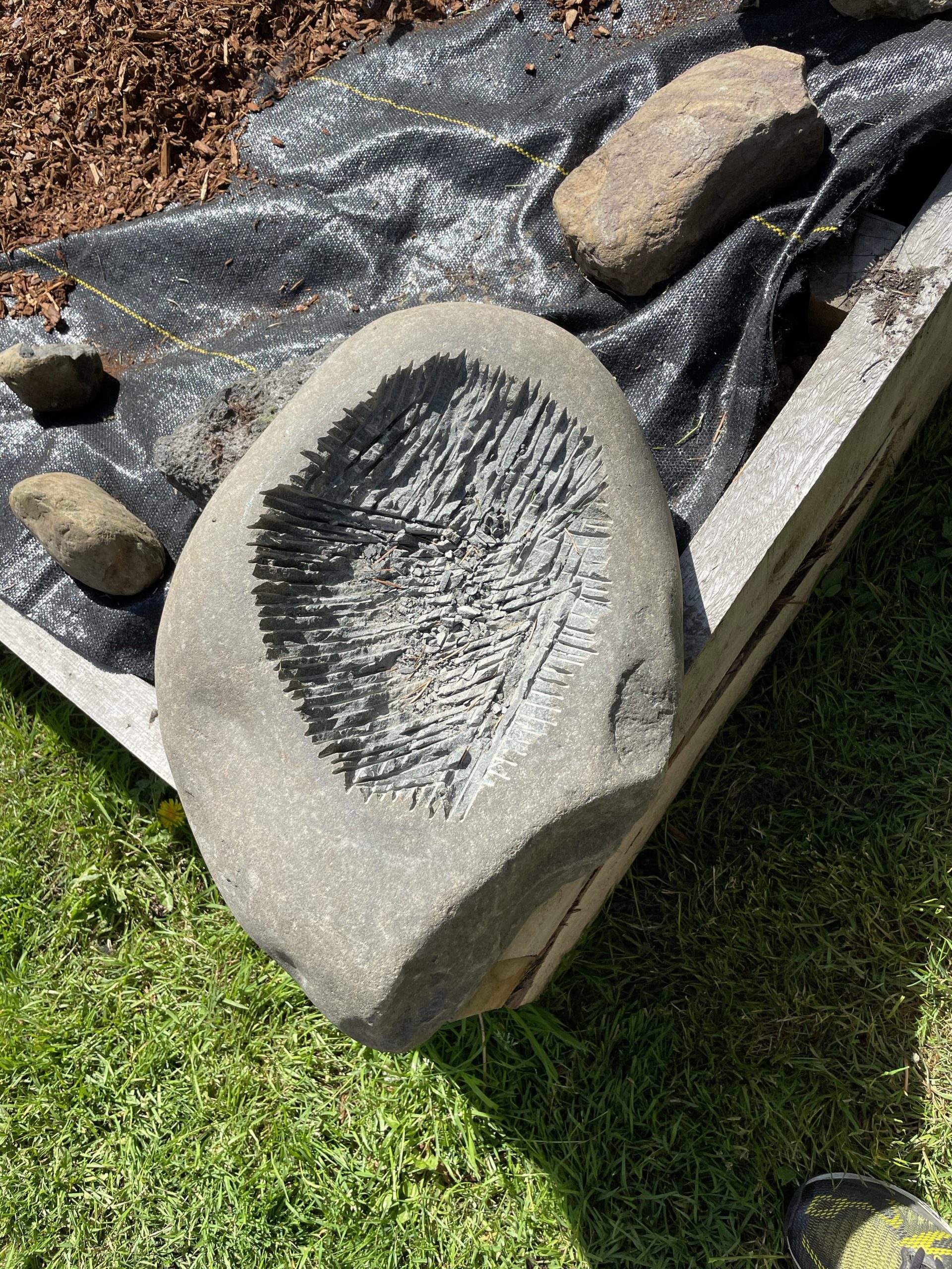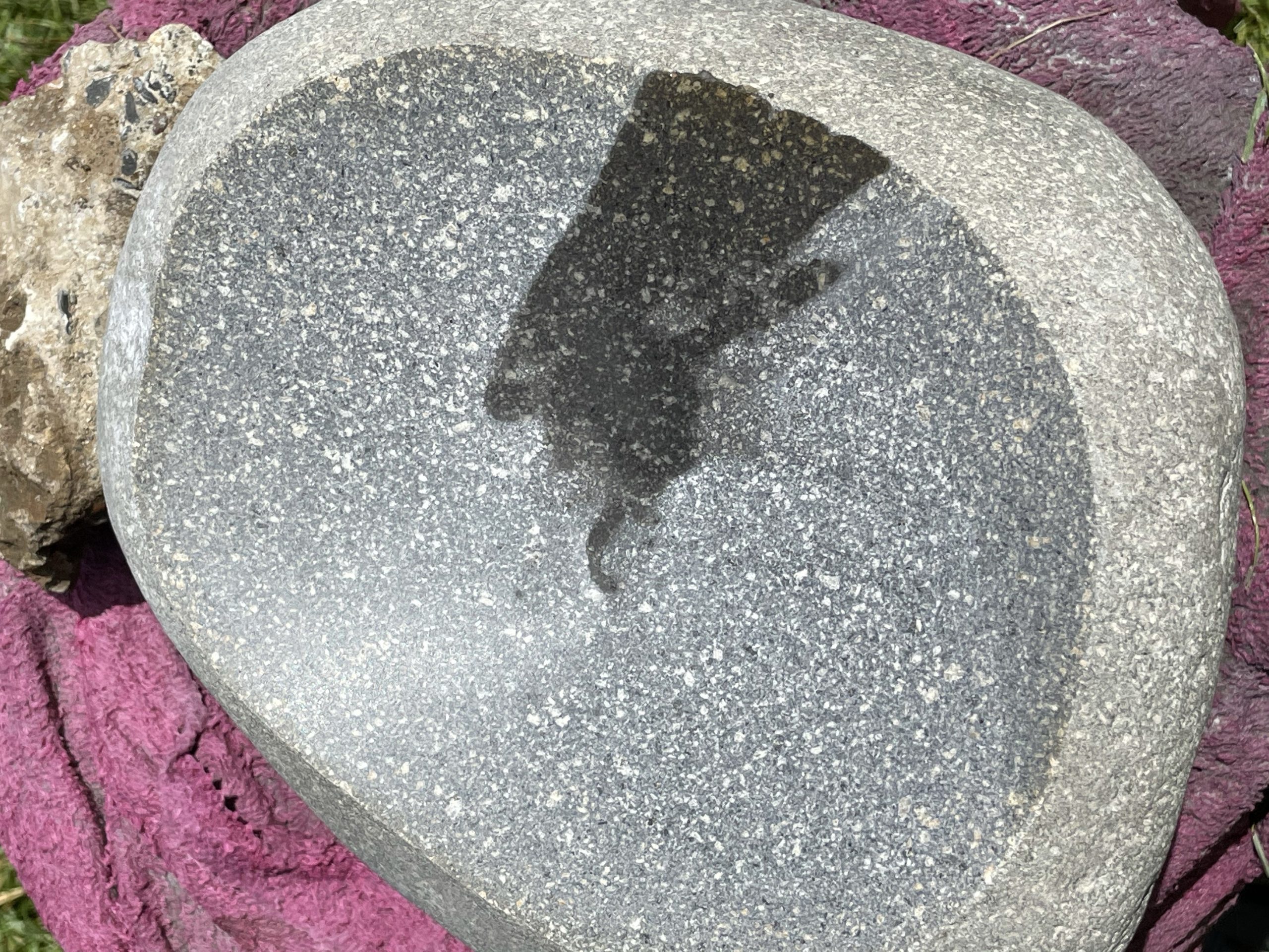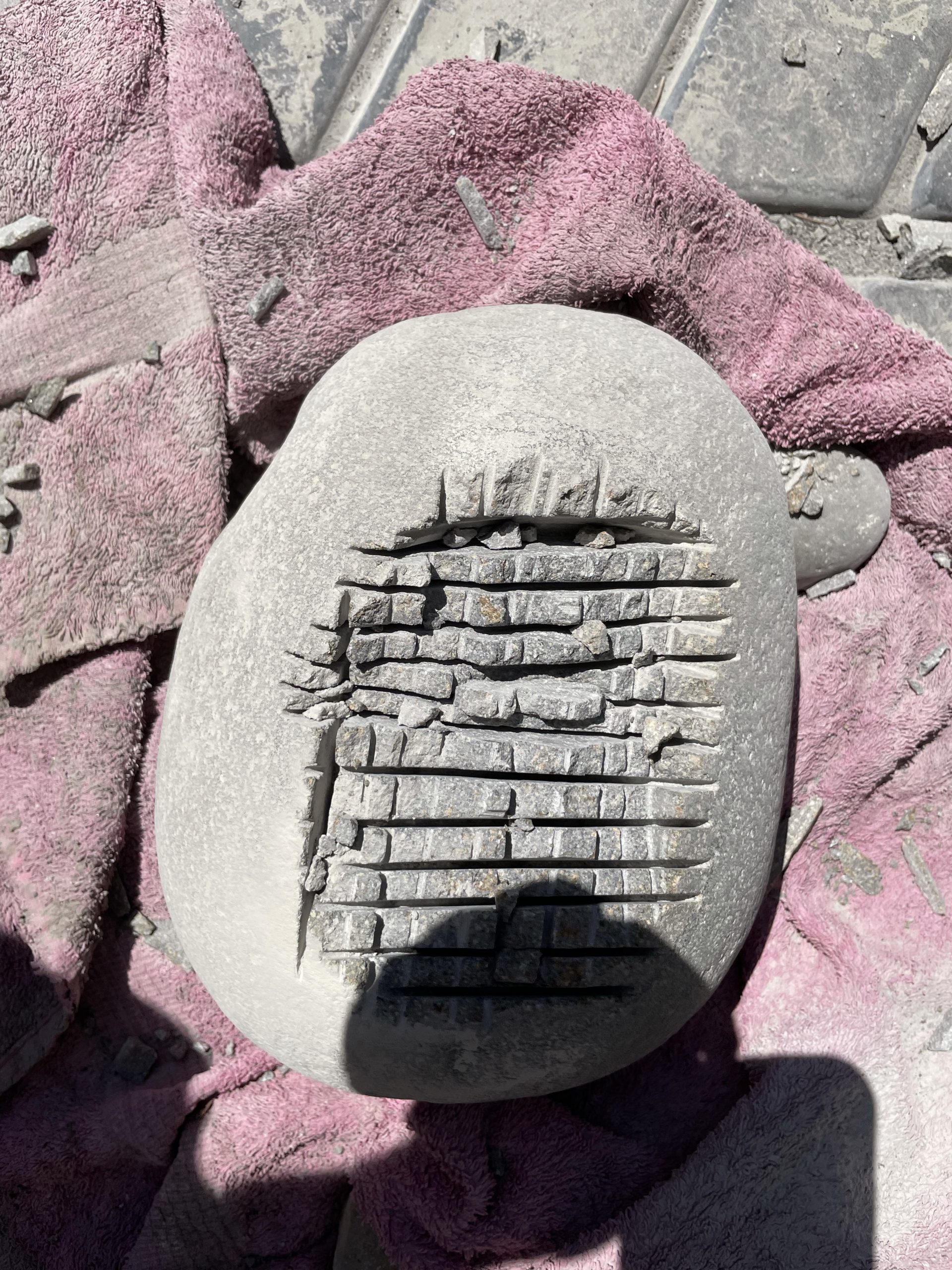 One of the high points of the trip… Beyond just being with family… Was the game taught me to cut, grind and polished stone. I made my first bear birdbath under his expert tutelage.… First I had to find the right stone… Then I had to crisscross it with cuts from a diamond cut off wheel. From that I had to knock The things I cut out with a rock chisel and hammer… To basically shape the rough parts of a bowl. From that I used a 30 grade diamond grinding bit to take down all the roughness that the chiseling have left. From that point it was a progression of 100 to 200 to 500 to 1000 to 1500 to 3000 to buffing Using a water cooled electric grinder…