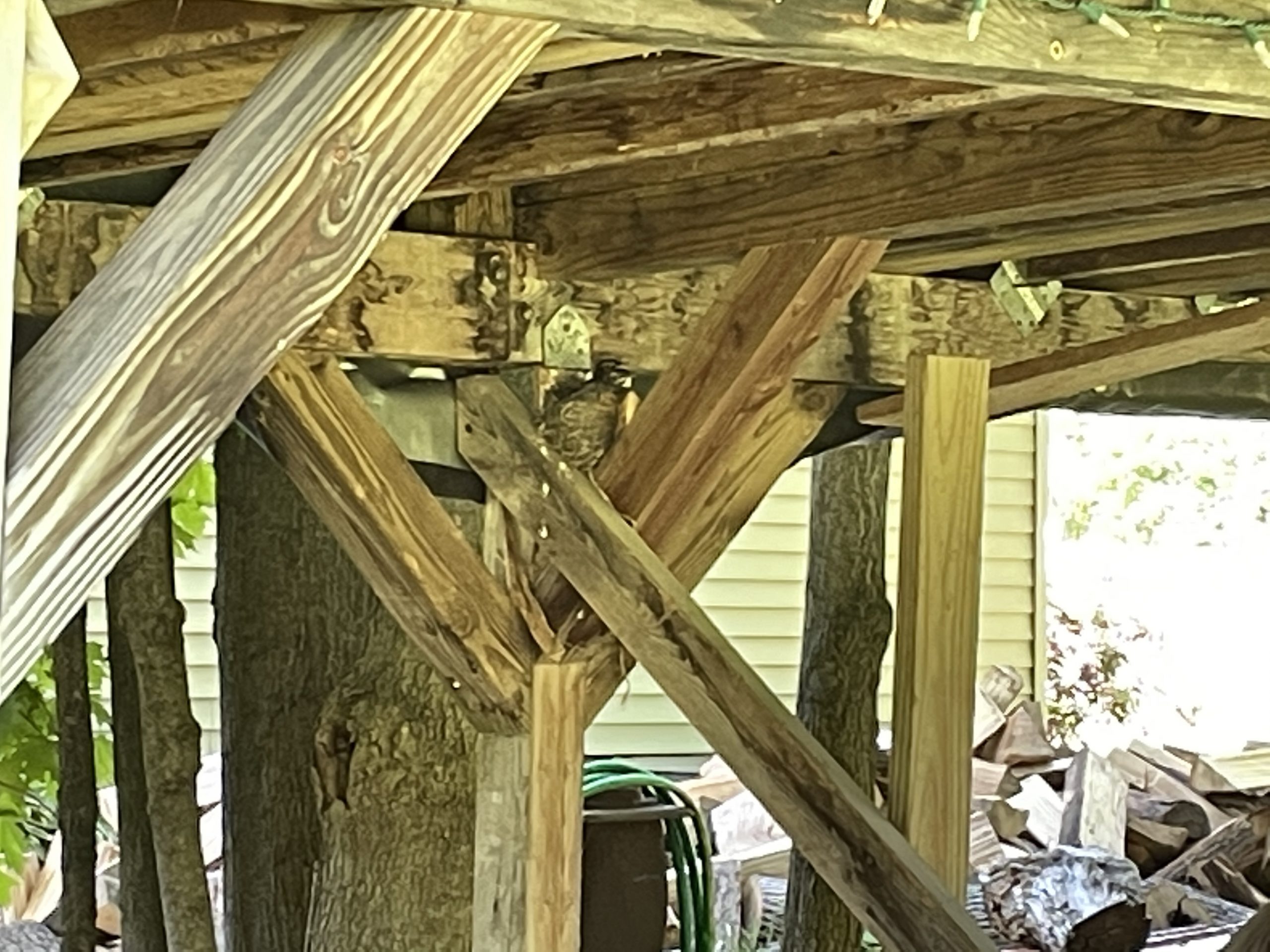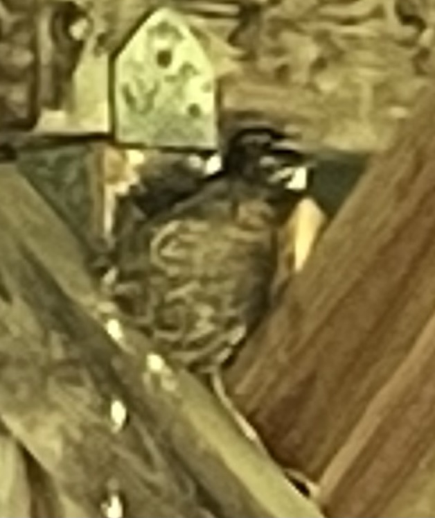 Diane found a family of robins living our wood frame. She thinks there’s three babies in there and they are big !