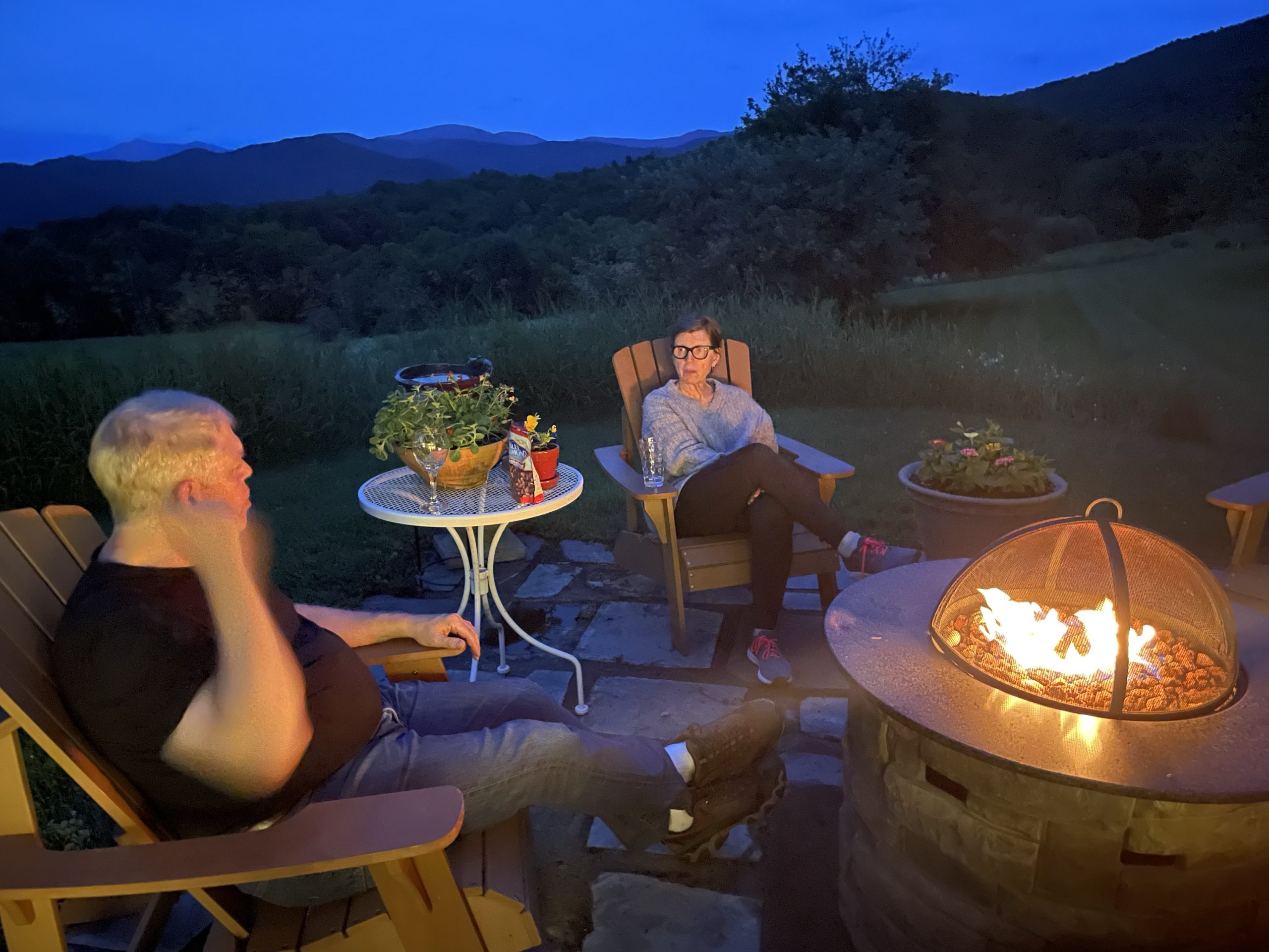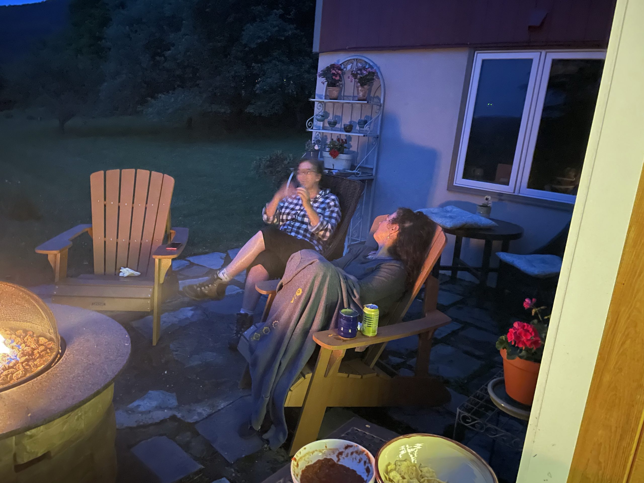 We decided to just hang out around the house for the rest of the evening but then Jen and Tim called and we were up there for glass of wine around the fire.