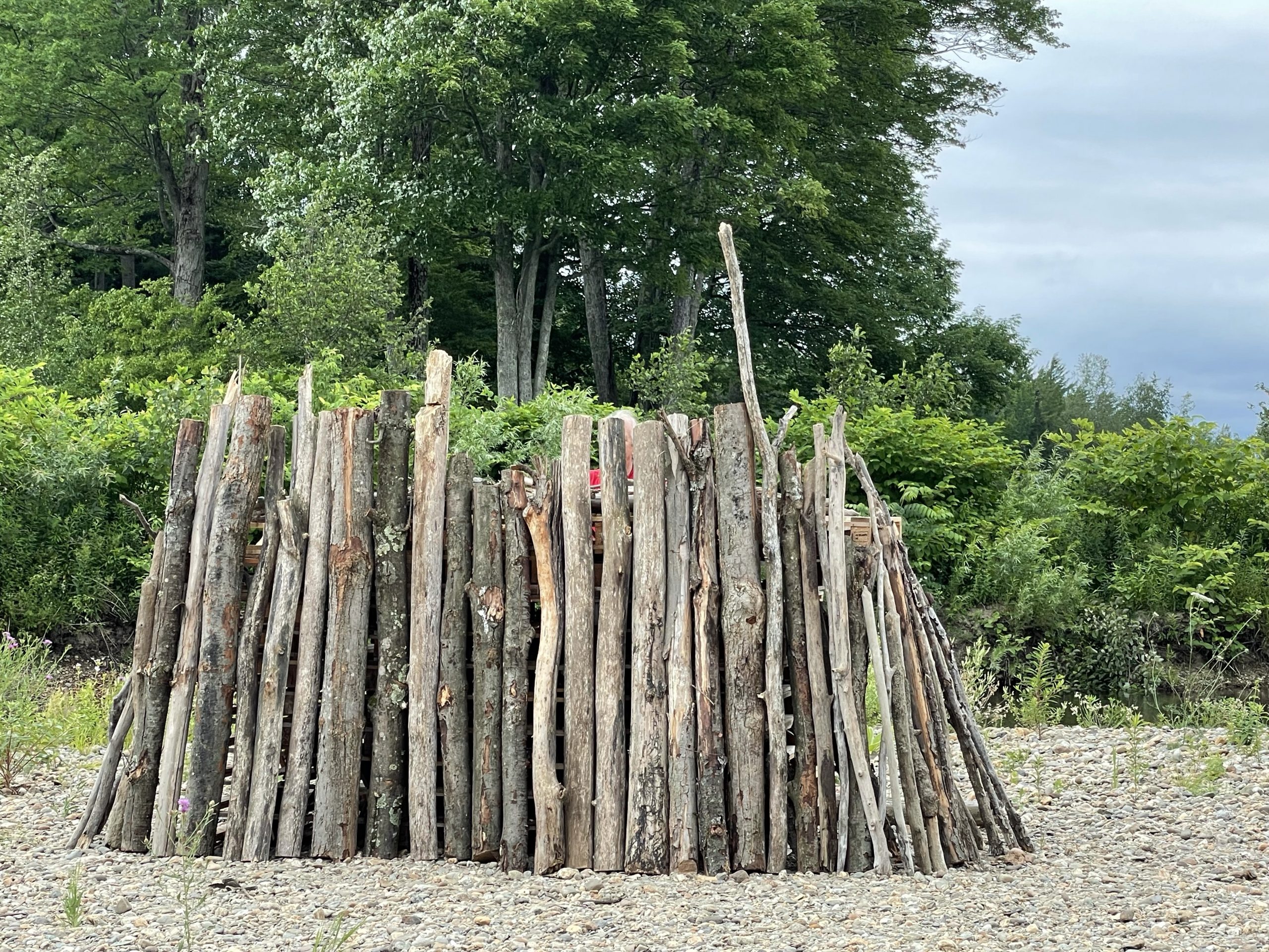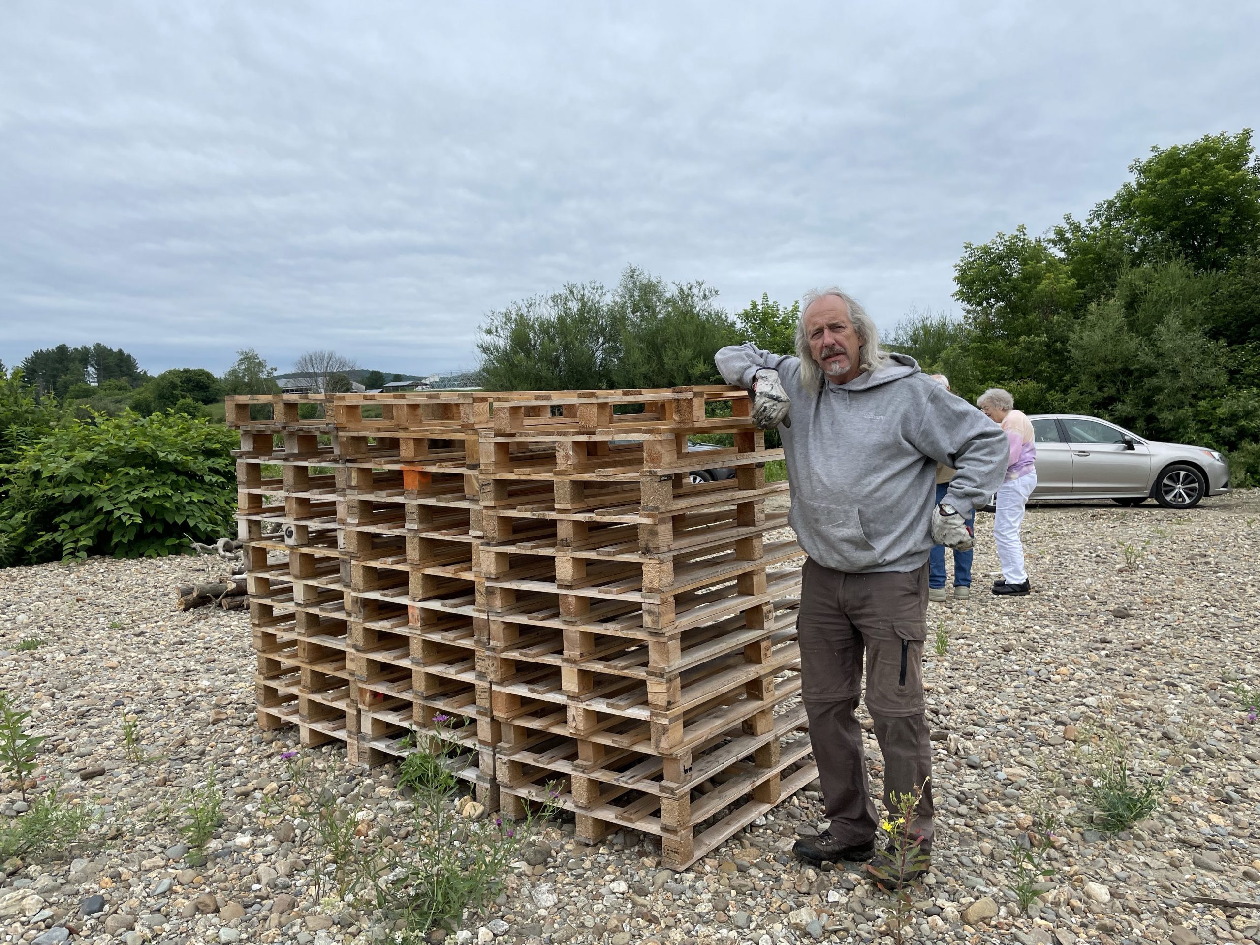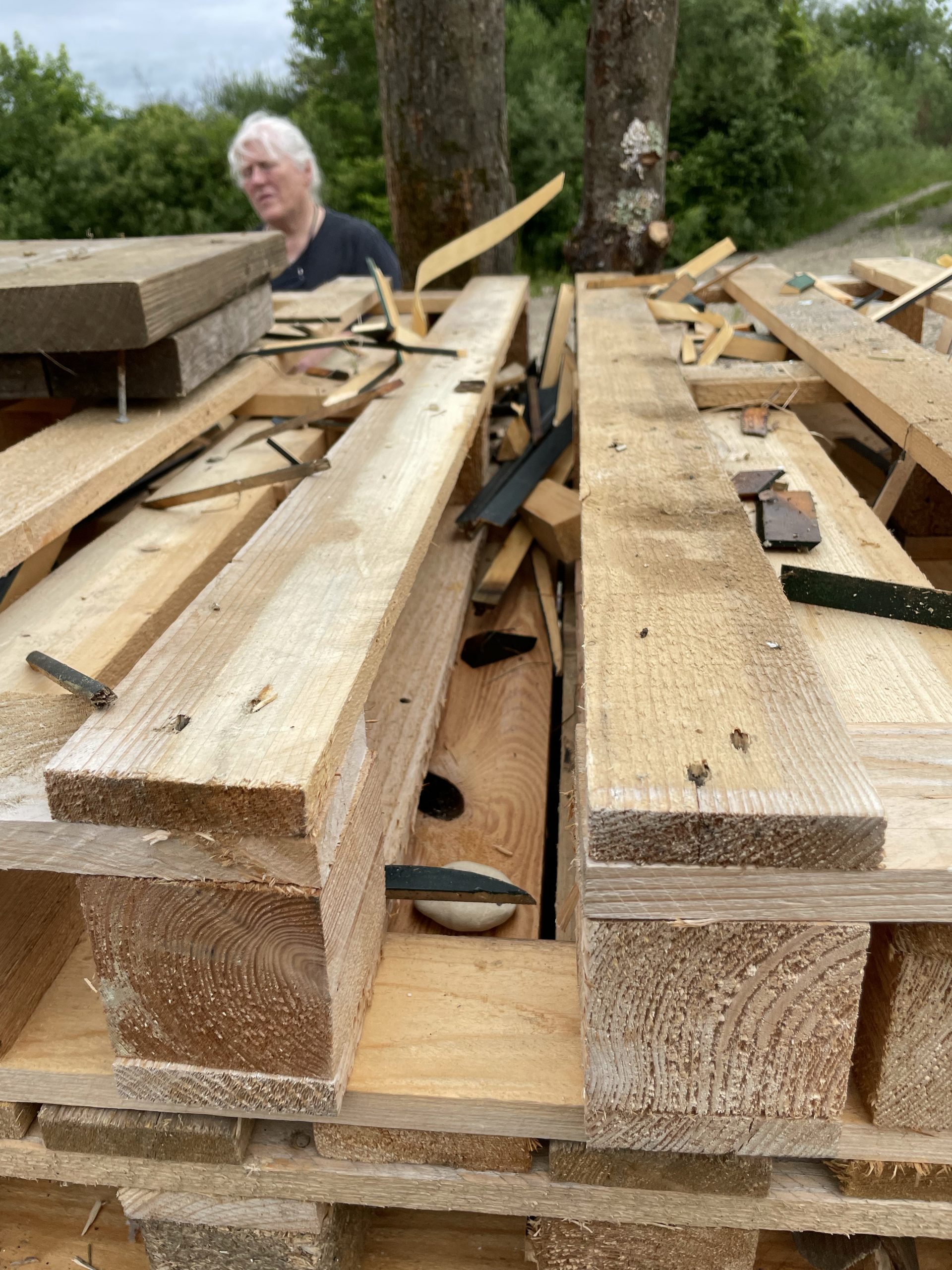 We met early in the morning and built up the pyre out of Pallets, wood scraps and logs. It’s actually really beautiful. Tomorrow (Friday) family and friends will gather and Julianne will put James ashes on top… And then use it flaming staff to ignite the whole thing. I’m very sad not to be there for her and for James… But it was good to help build the buyer. With your permission I put the same stone in there as well.