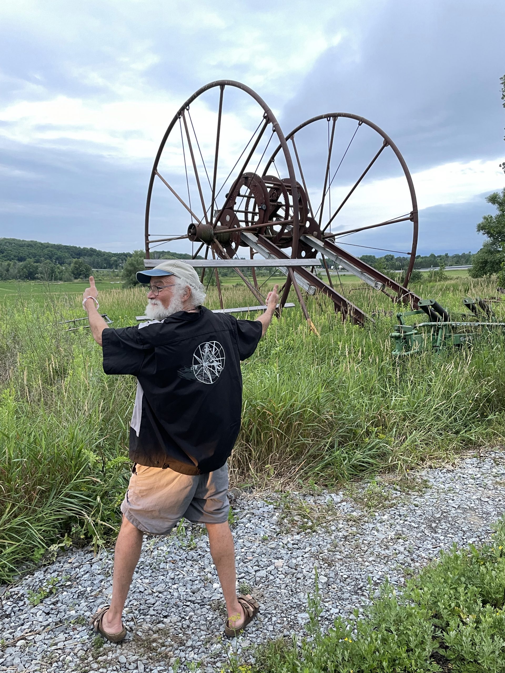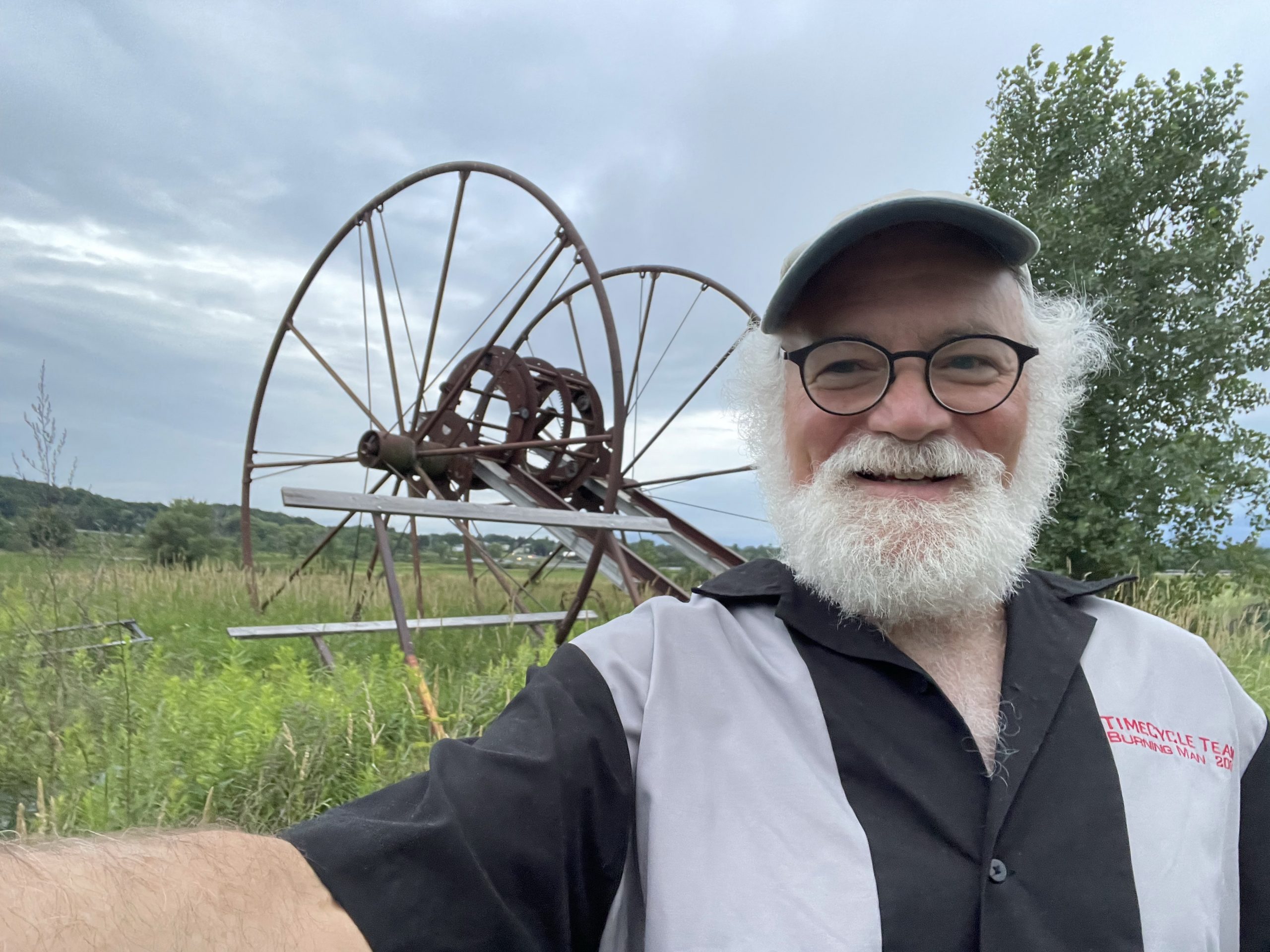 I spent the day working and getting packed for my trip out to Santa Fe… I got back early so in the evening I first headed to Nordic farm for “team vaccine”… We’re Building a large version of the Covid vaccine to burn at our fire and water festival in August… It was nice seeing all of our friends there. Then some of them came with me down to Homer’s house… He’s having a maker weekend with a bunch of old friends. It was great seeing him. On the way down we stopped and actually saw the time cycle which is rusting in the markowskis field. It brought back some great and some crazy memories