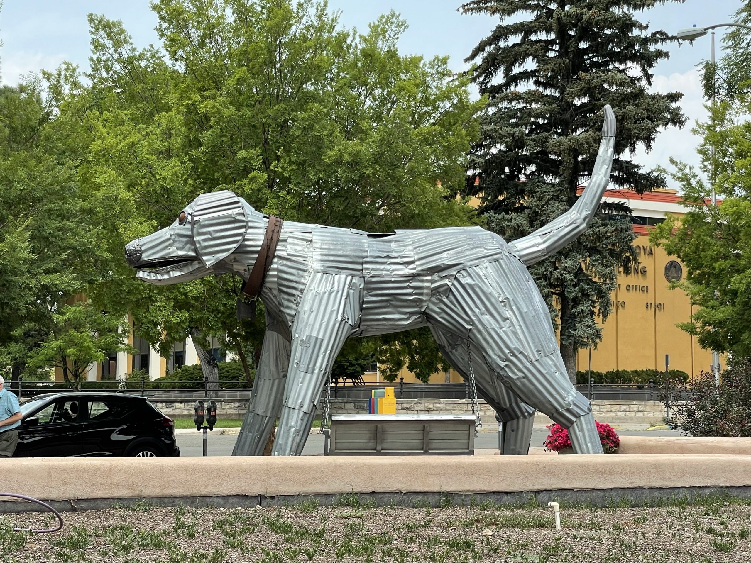 Laid-back day here in Santa Fe with Max. We got off to a slow start . We headed downtown to see folk art festival… When we got there it was actually pretty small but still really beautiful stuff. Max took us on a really nice tour of downtown Santa Fe which is always fun. It was great just hanging out together. We loved the art there… Some of it was public art and some of it was in galleries….