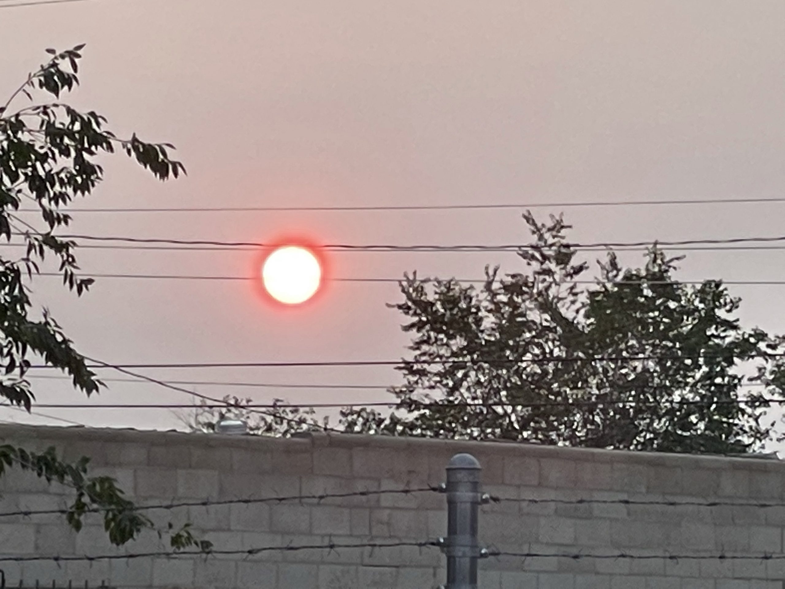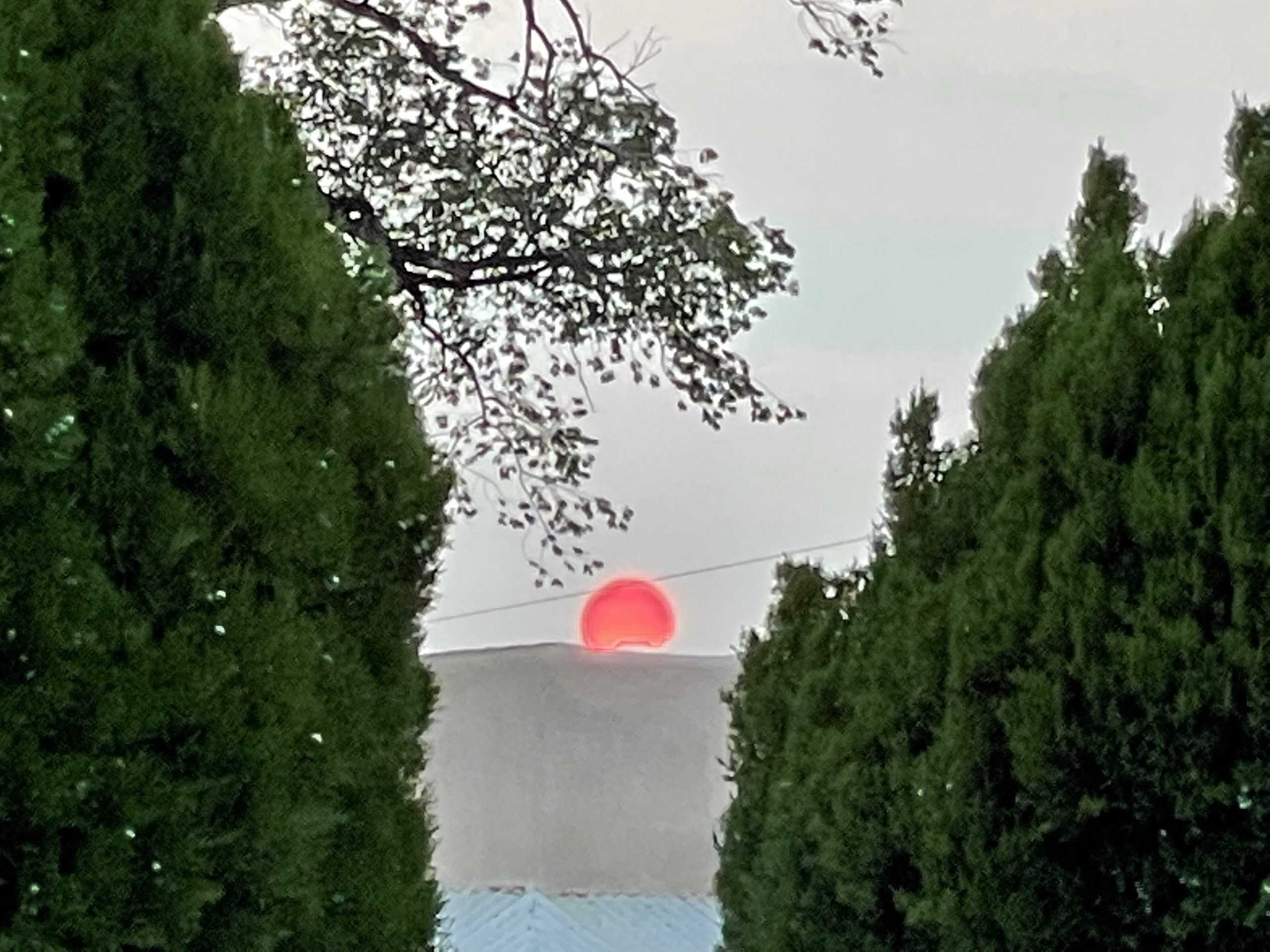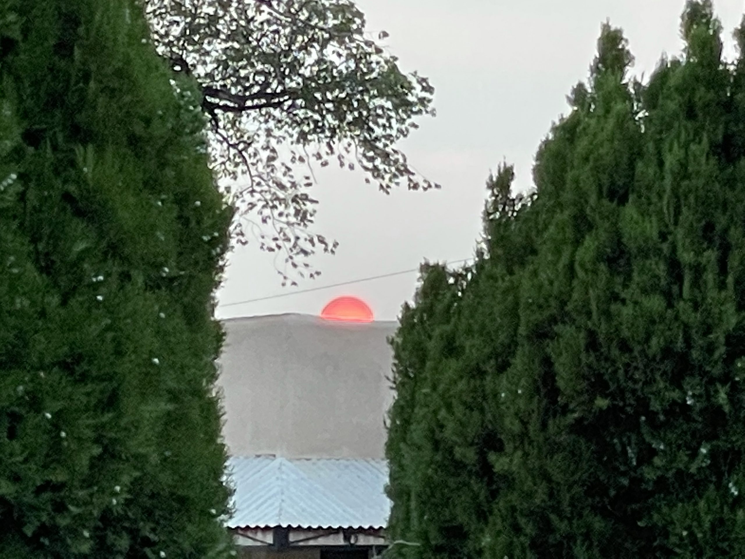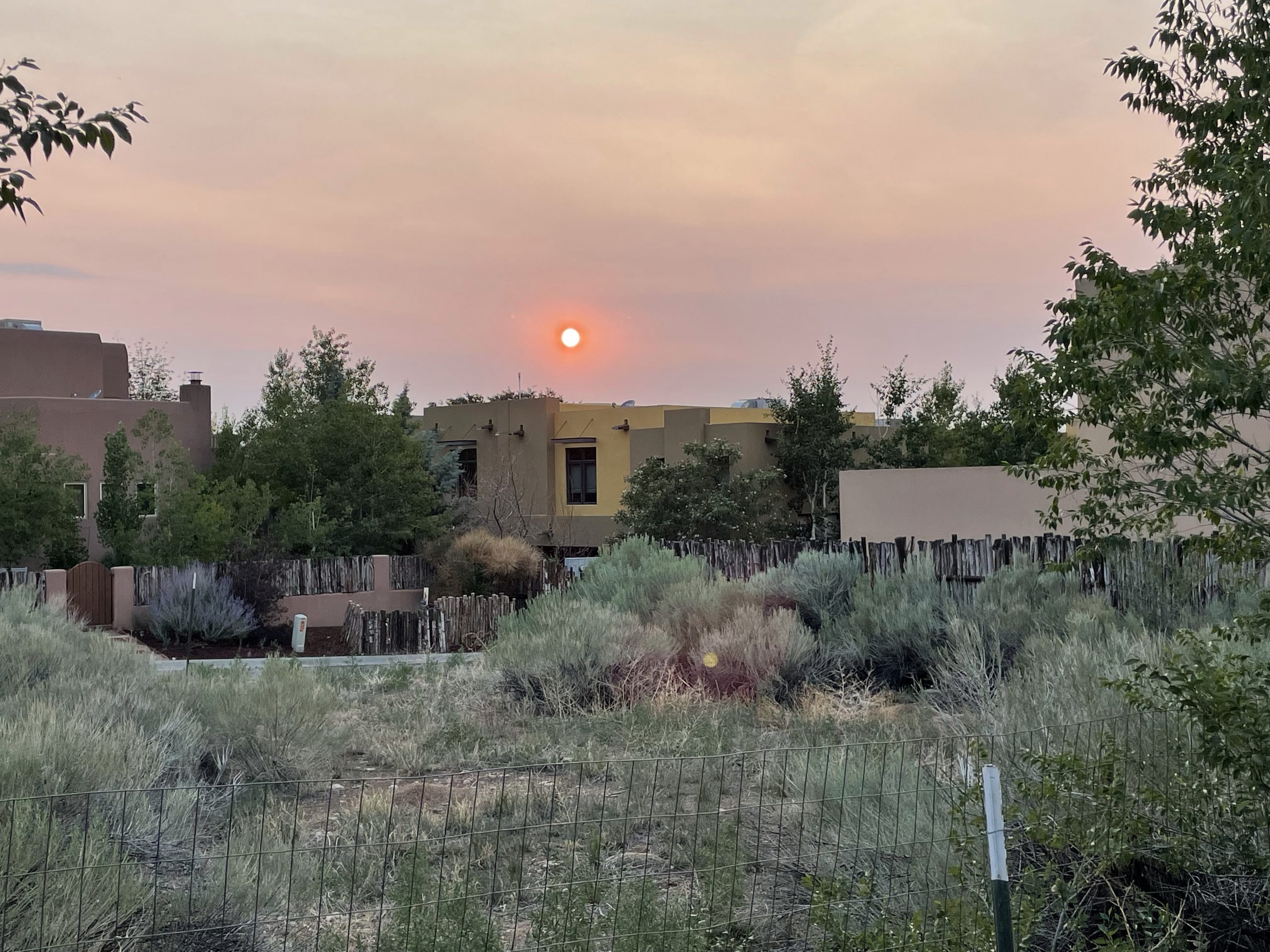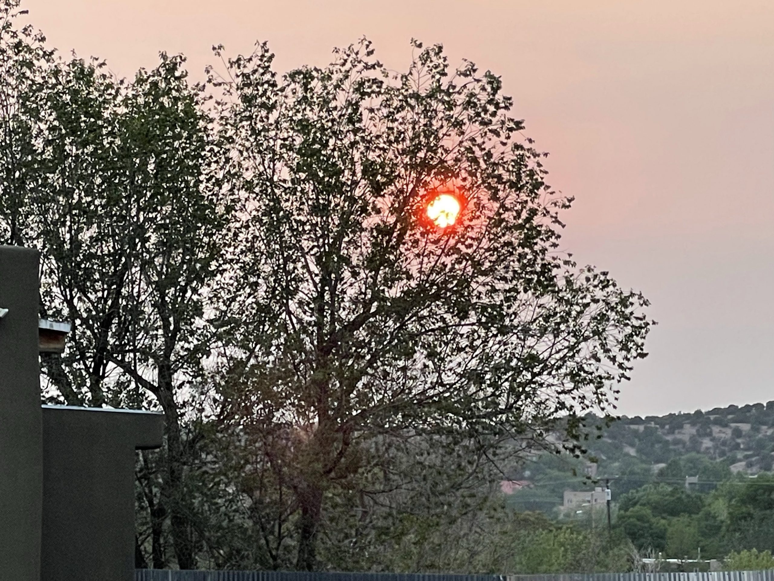 The three of us did projects around the house all day. Around 730 Diane and I took off for a walk. The Santa Fe sky never ceases to amaze me. Check out the sun here. I don’t know if that’s dust or smoke or whatever but it’s beautiful