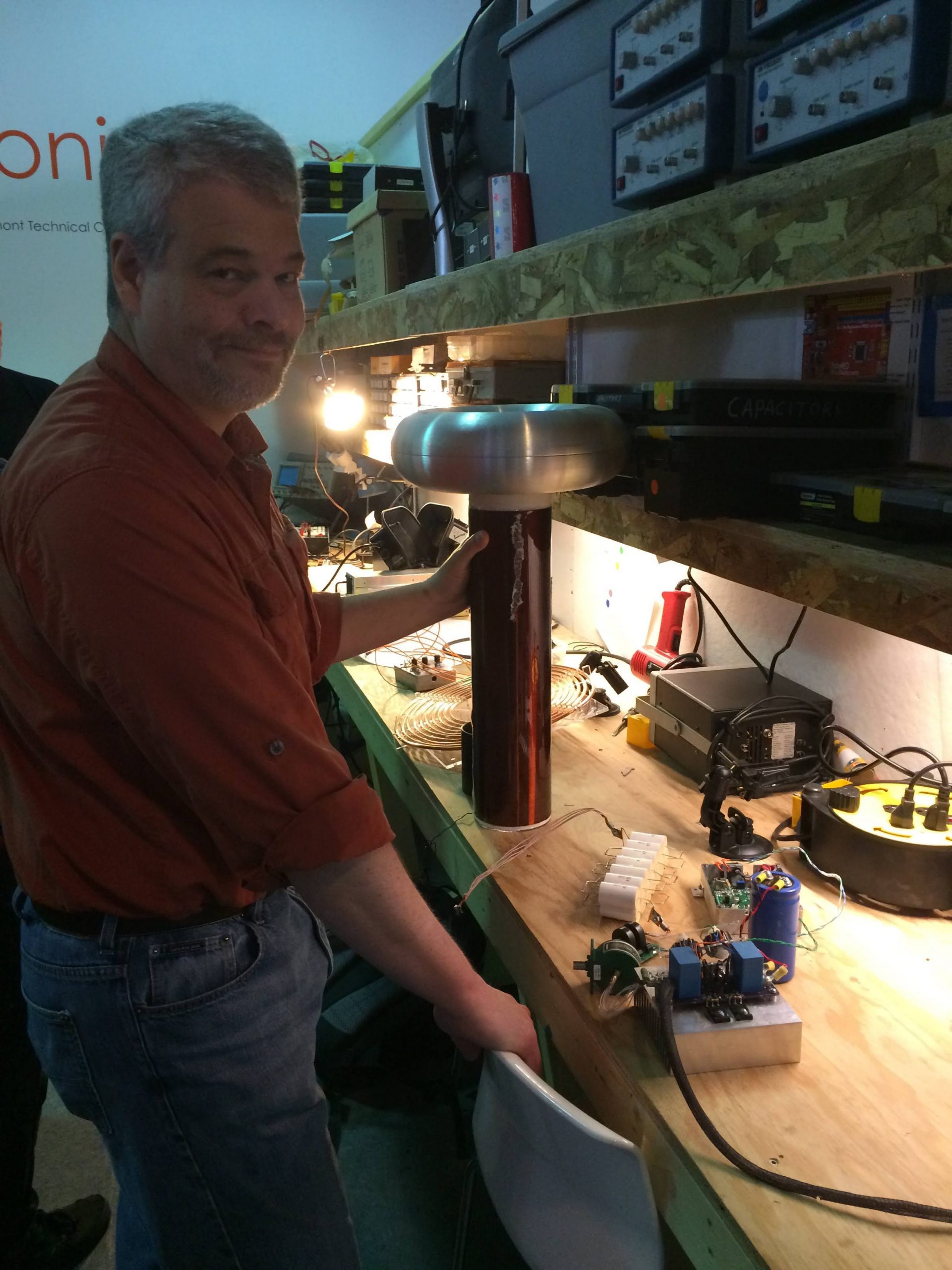 Scott was an amazing man and a great friend. He was truly one of my closest friends… The basis for our relationship was around our common love of science and technology…. Scott was an natural born scientist… He had amazing curiosity for anything related to science. He didn’t just dabble… He dove in to anything he could find related to electronics, high-voltage, radio, optics, chemistry… He had an amazing laboratory in the basement of his home Where He built incredible machines for demonstrating and exploring physical phenomenon. His favorite things were making tesla coil’s… Devices that can transform low voltage into high-voltage high frequency sparks. Throwing arcs sometimes several meters.He made everything from really tiny ones to huge ones with 8 foot sparks…