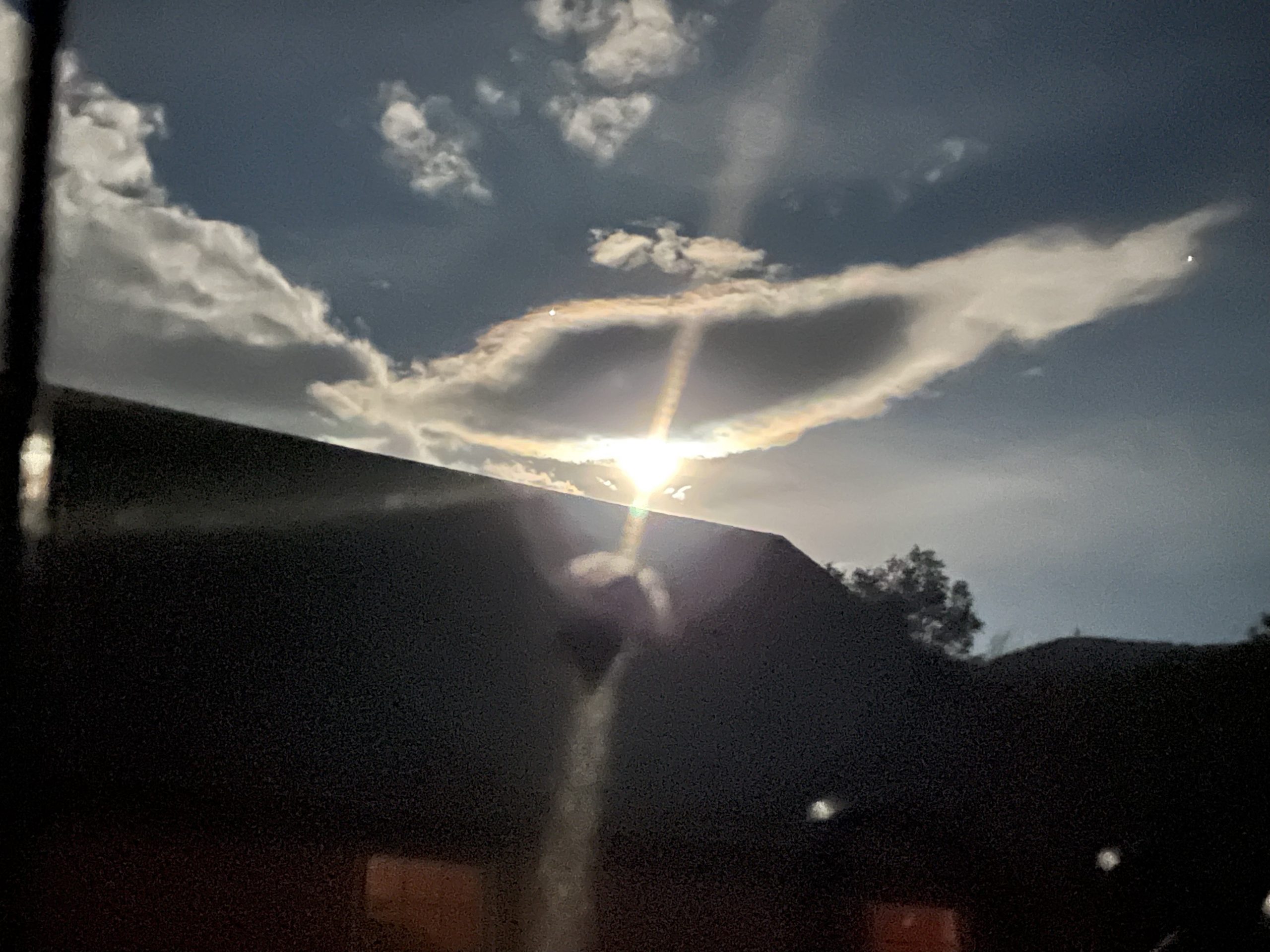 It was almost a full moon… Just before 5 AM I woke up and watch the full moon cross over the sky… ‘Diane and I were sleeping in the barn because of the air-conditioning… It was such a beautiful site
