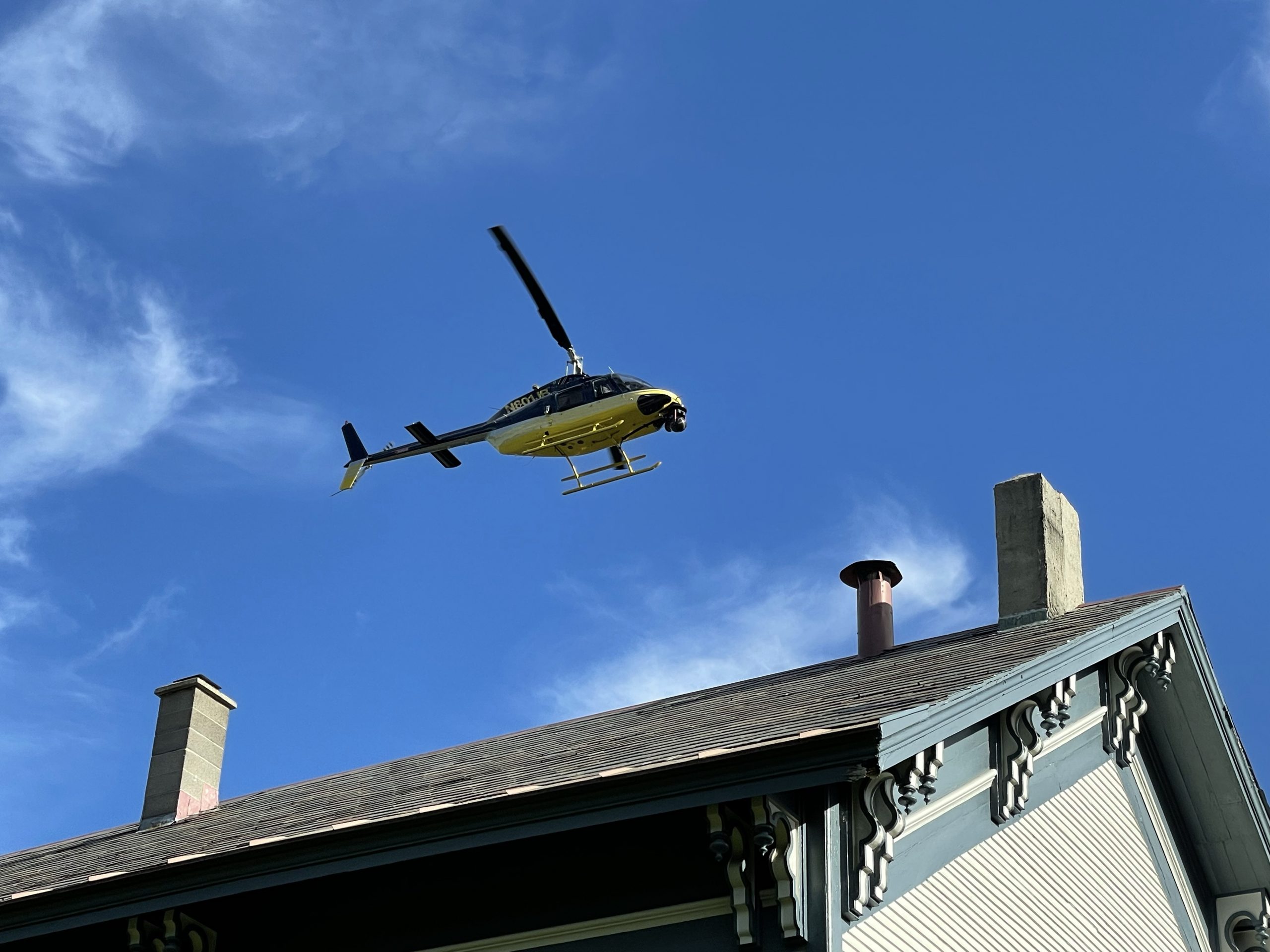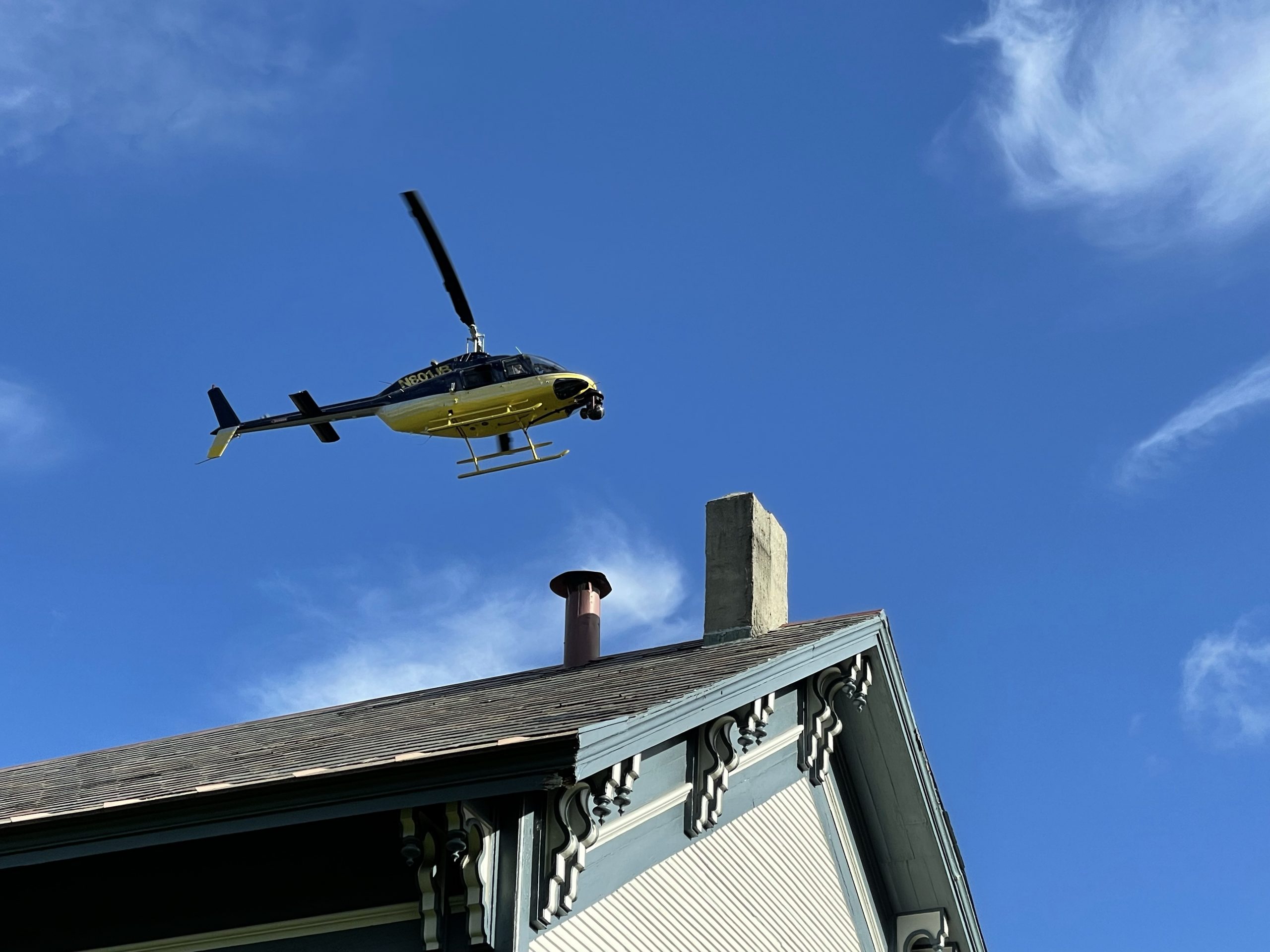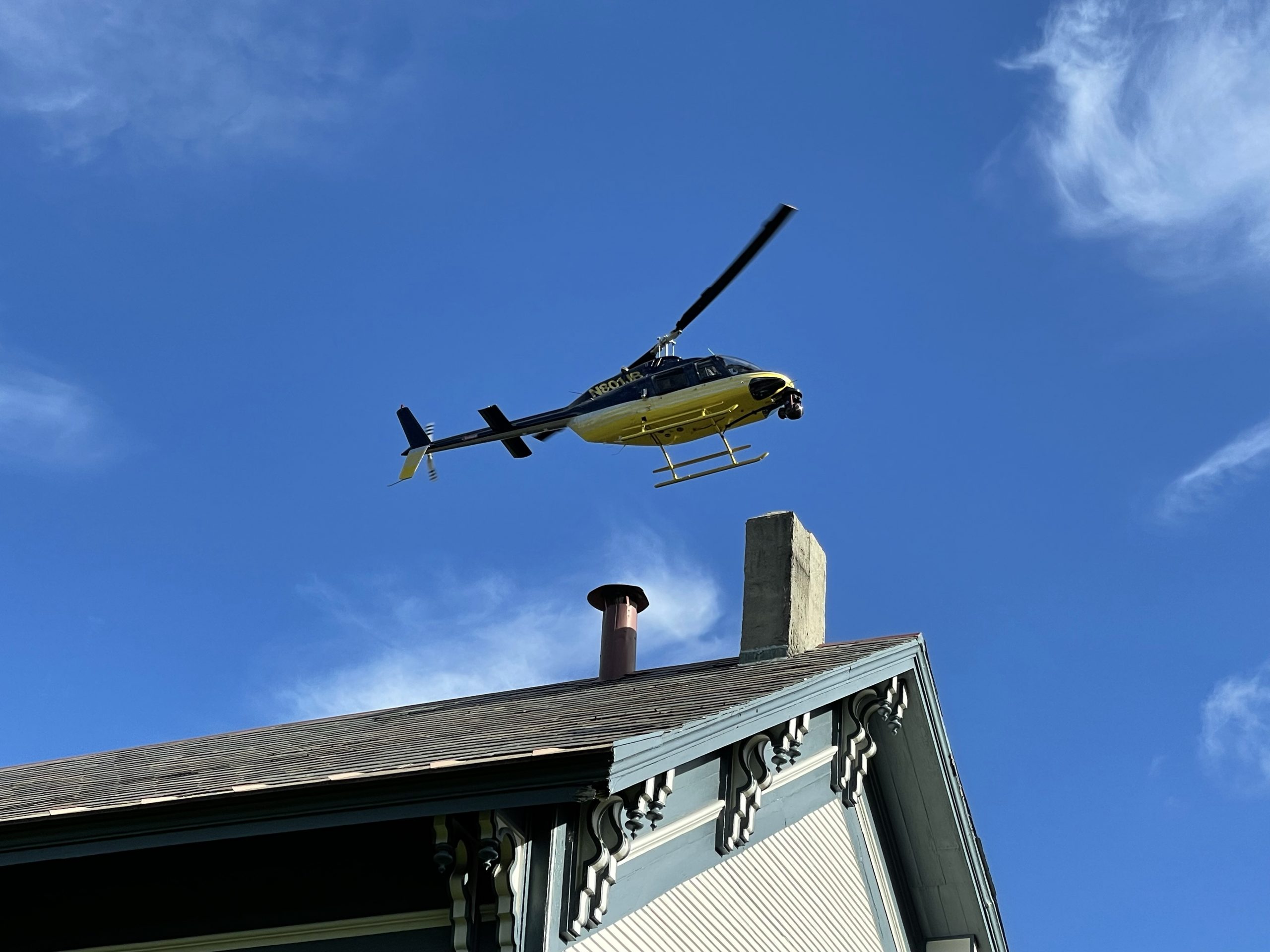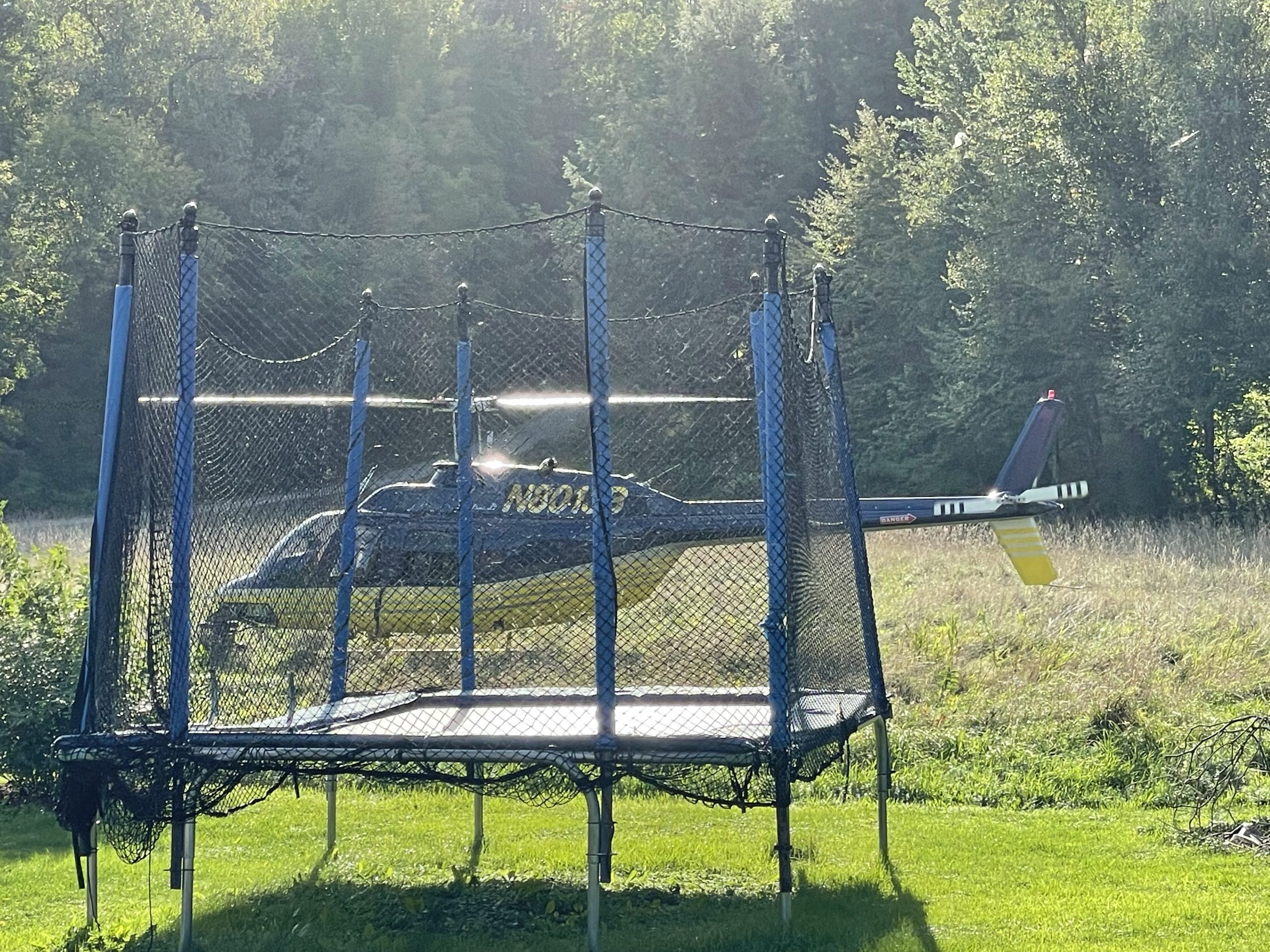 a funny thing happened today… We had a helicopter landing and taking off In her backyard all day. It was for the railroad that was doing some track inspection. That asked our neighbor Bob they could takeoff from there. It was so funny to hear and see a helicopter coming right over the house minding our backyard… The wind wash from that was so strong that it actually broke some of our pot plants… Too bad… But overall worth it to see such a cool thing.
