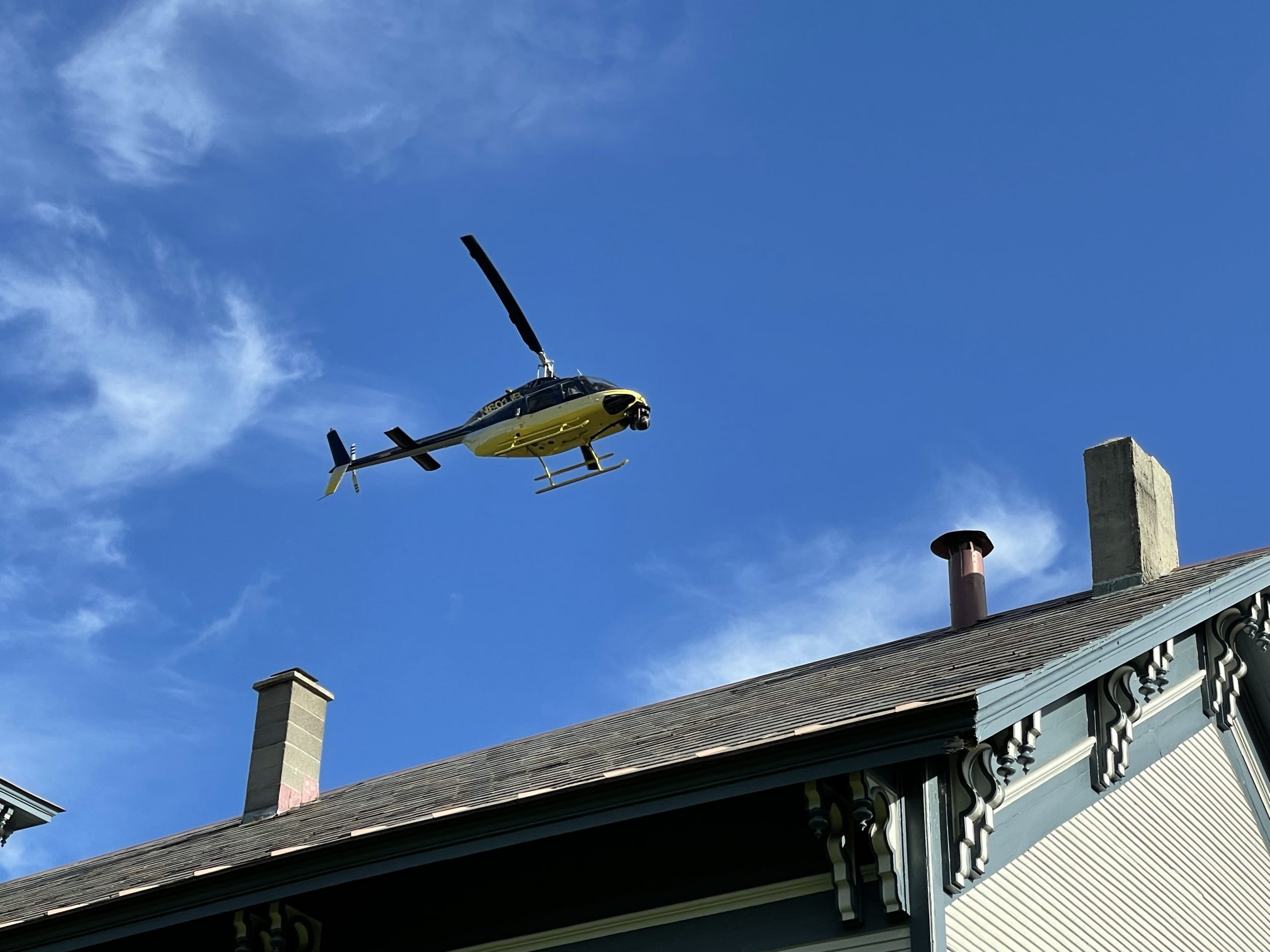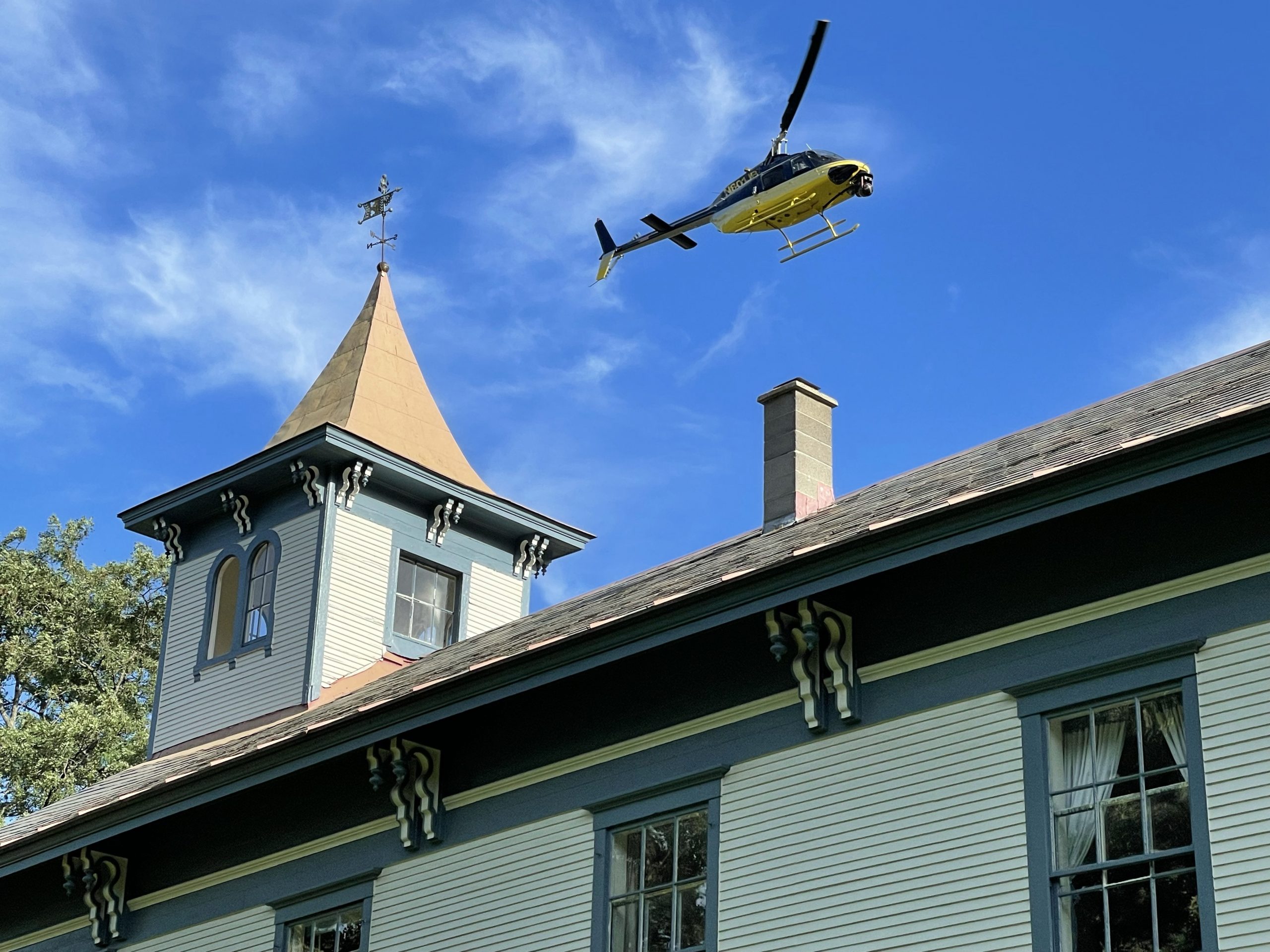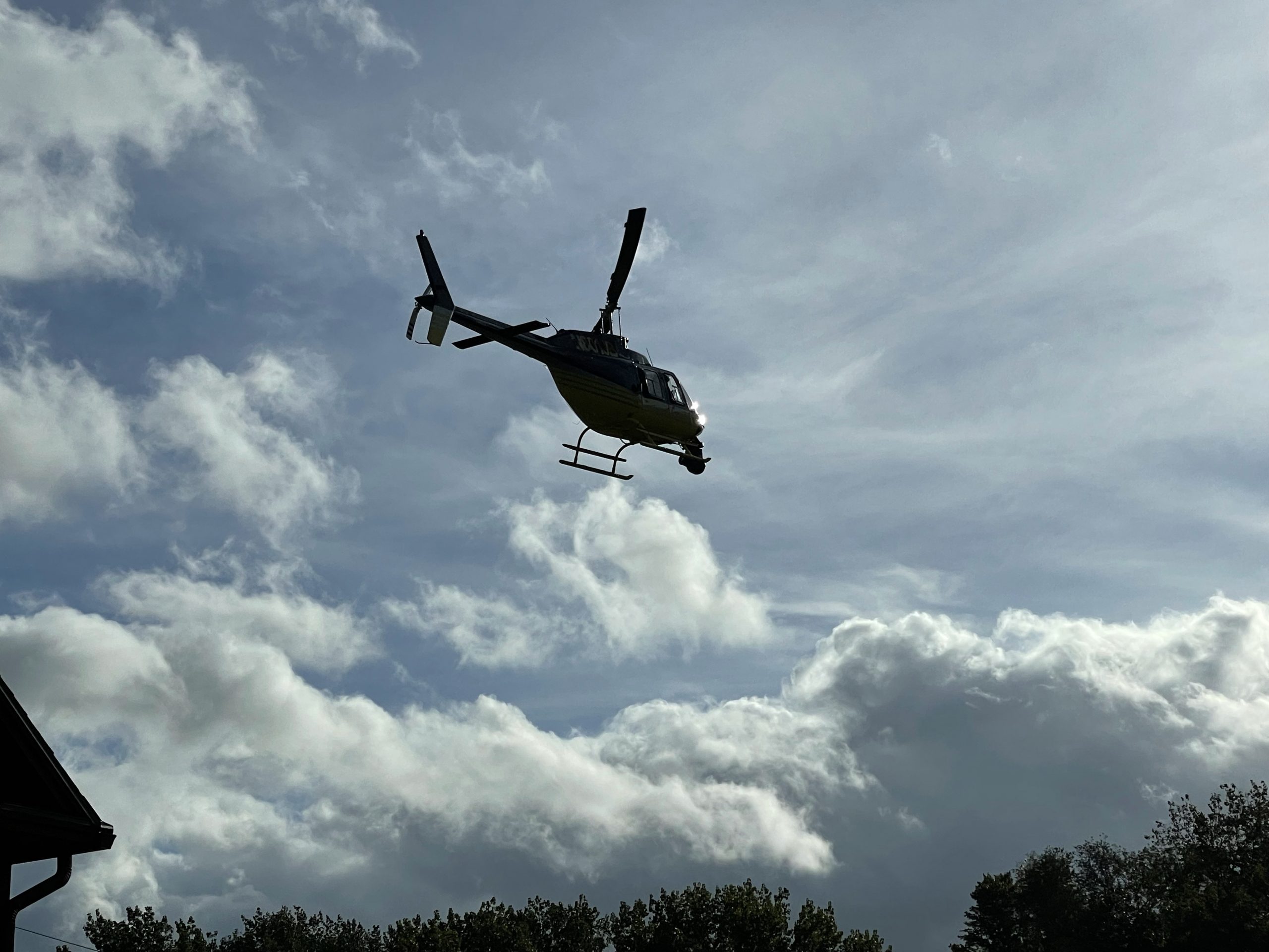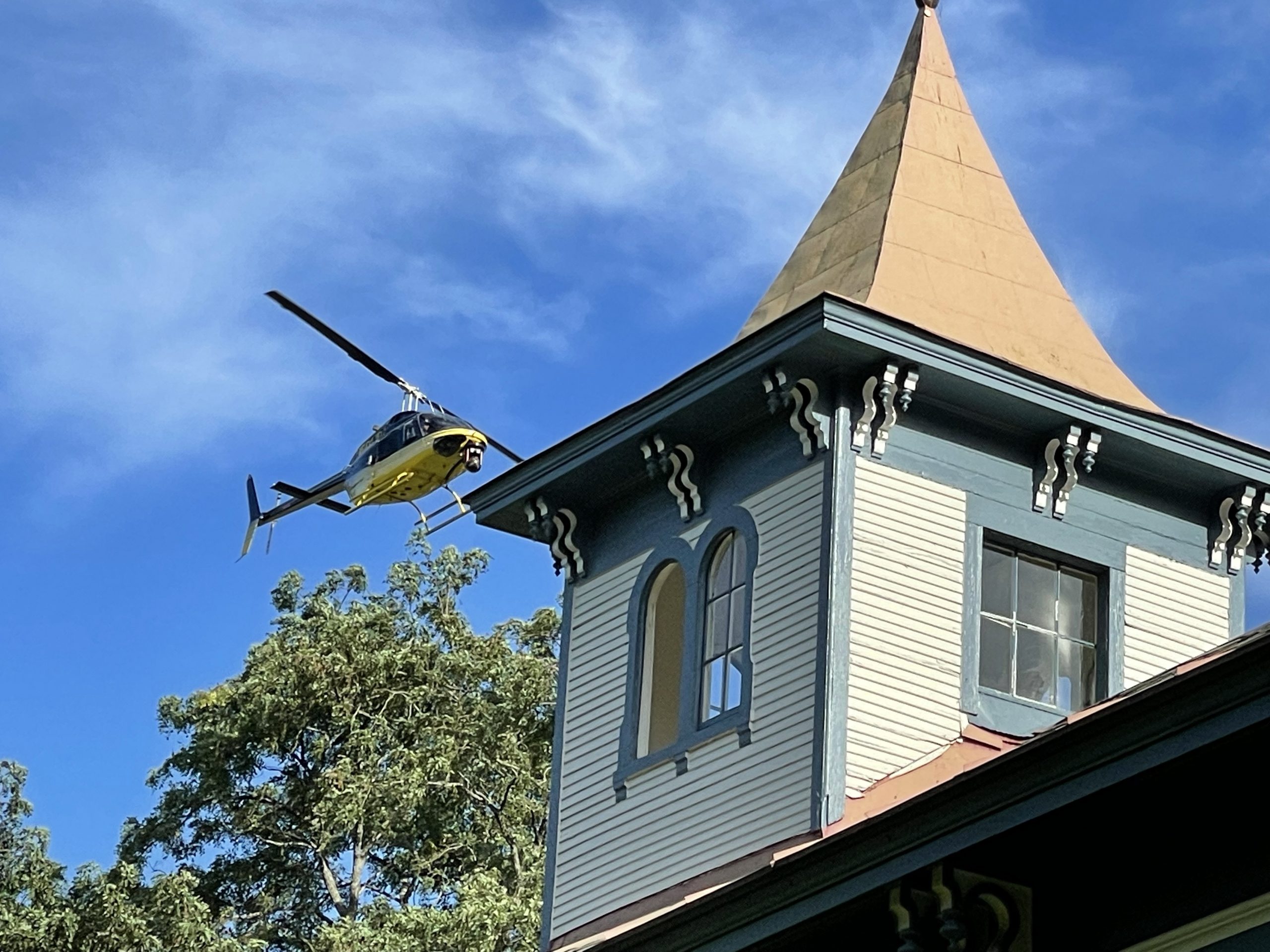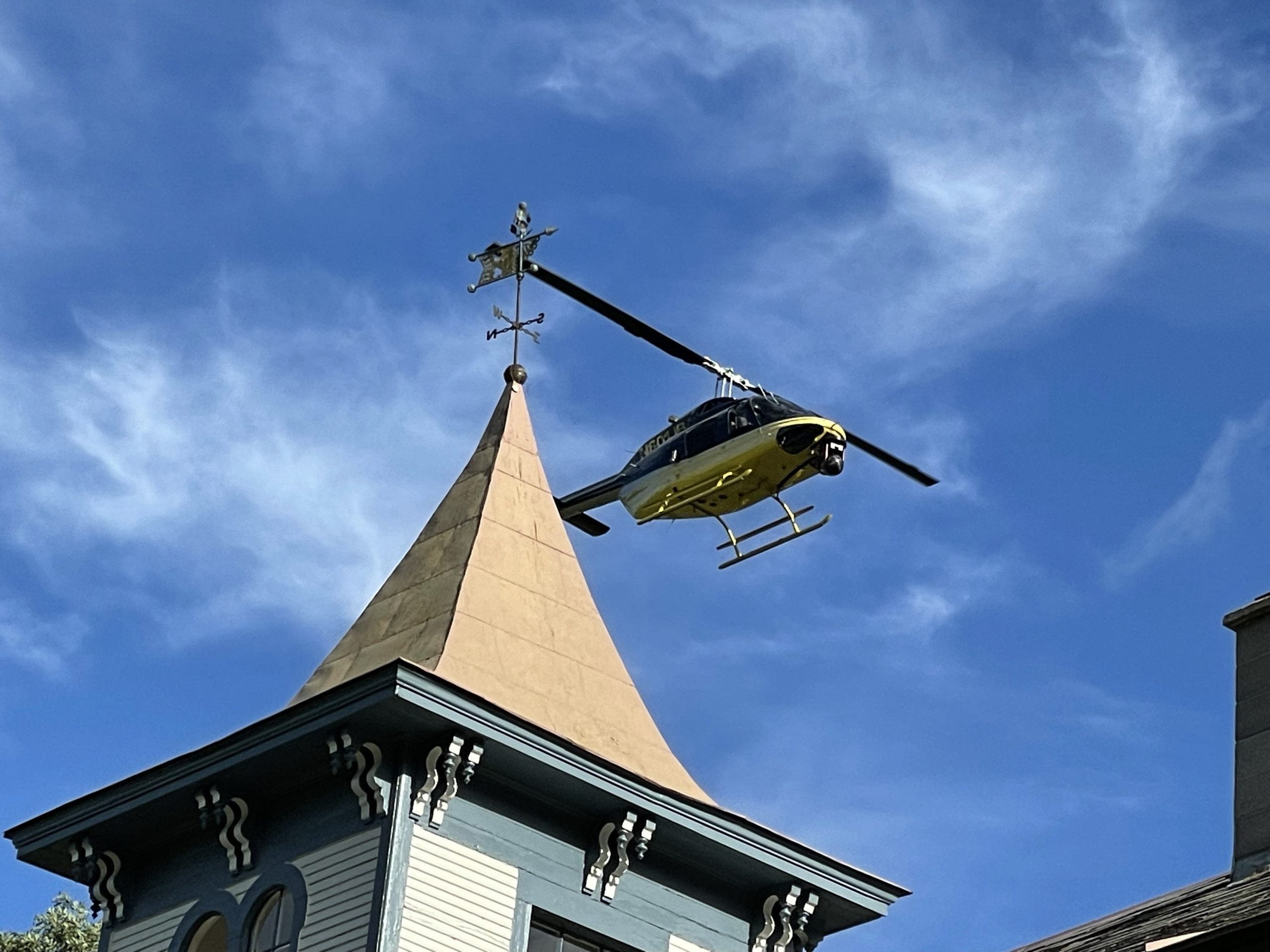 a funny thing happened today… We had a helicopter landing and taking off In her backyard all day. It was for the railroad that was doing some track inspection. That asked our neighbor Bob they could takeoff from there. It was so funny to hear and see a helicopter coming right over the house minding our backyard… The wind wash from that was so strong that it actually broke some of our pot plants… Too bad… But overall worth it to see such a cool thing.