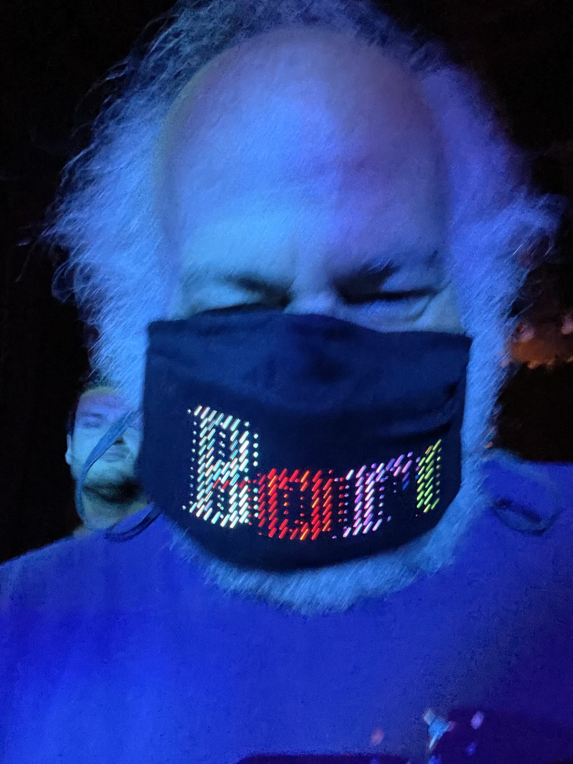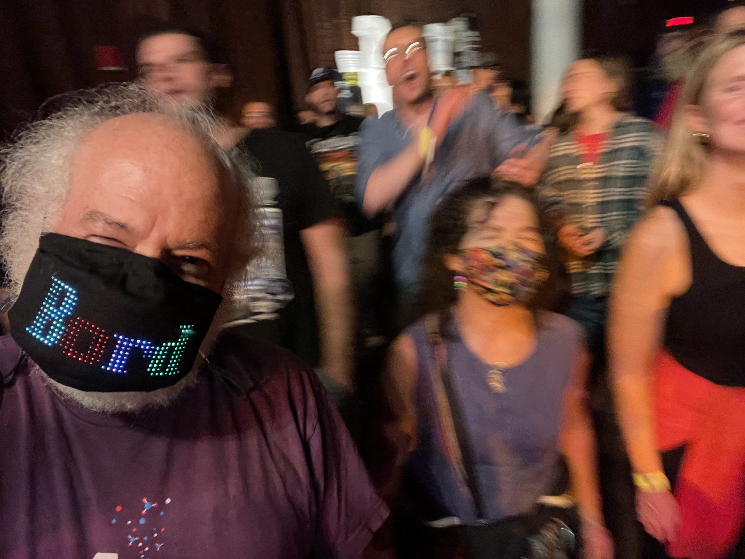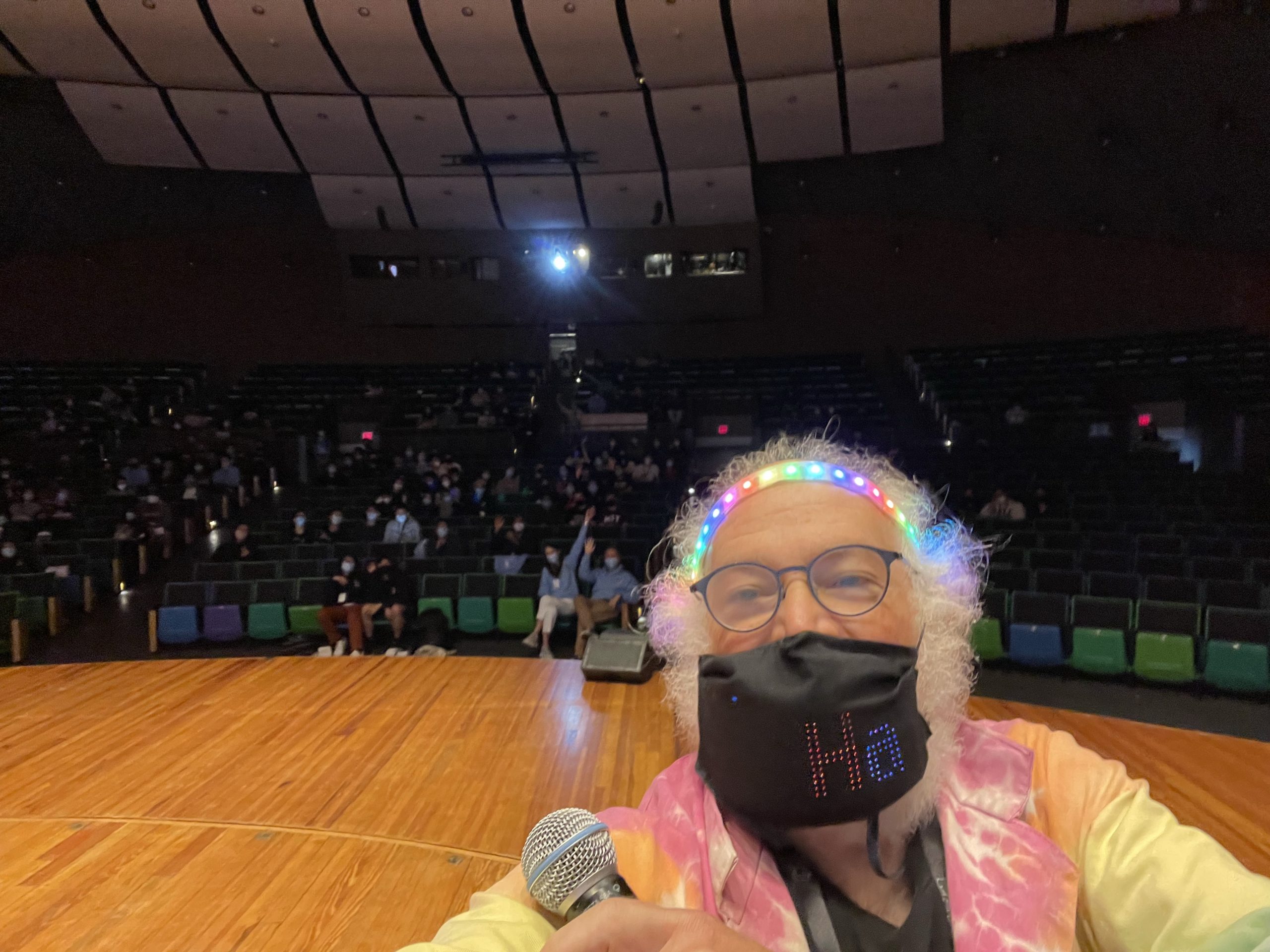 my part came and went… And it felt good to be off stage. I guess it’s my last event Of the first part of my Ibm career .It went well… They did it up in full tie-dye and bling.One funny thing right before it the ceremony started I had double equipment failure… My led glasses Broken wire as did my LED headband.… Dan was able to give me some emergency supplies and I was able to repair the headband… But I retired the glasses and relied on my light up mask… Understated as always. I was proud to have not freaked out… And it all went fine. A nice part of a new beginning