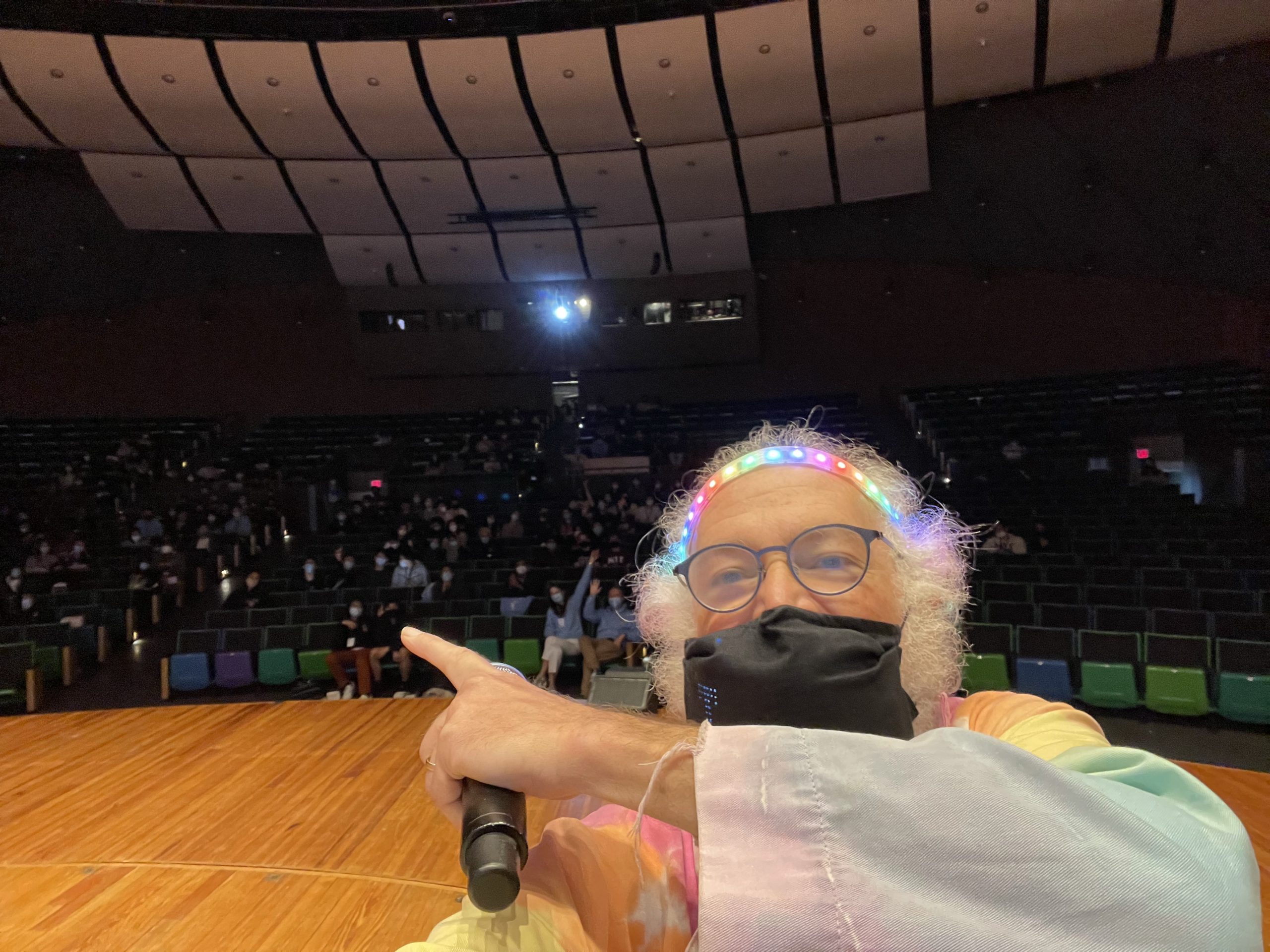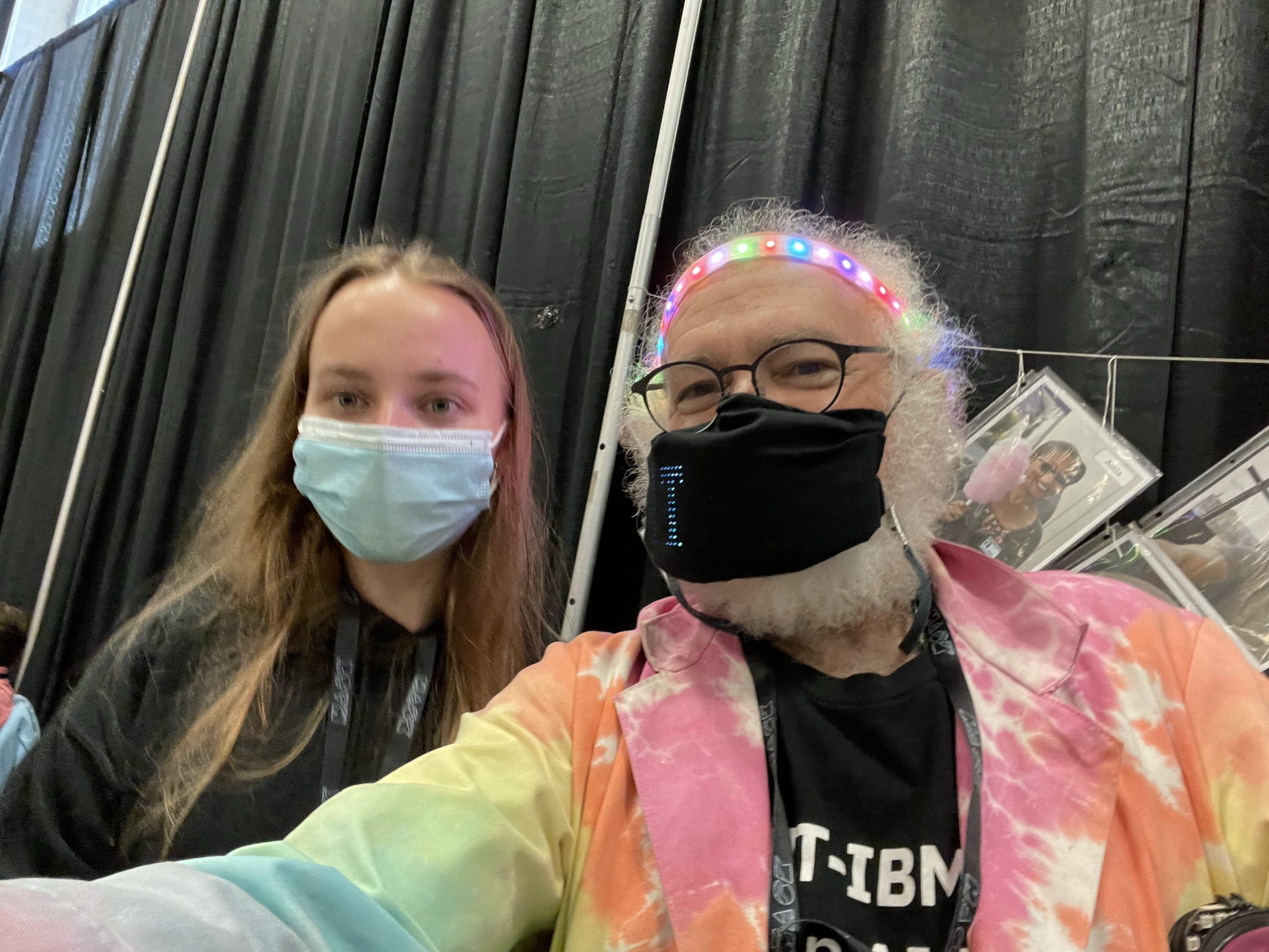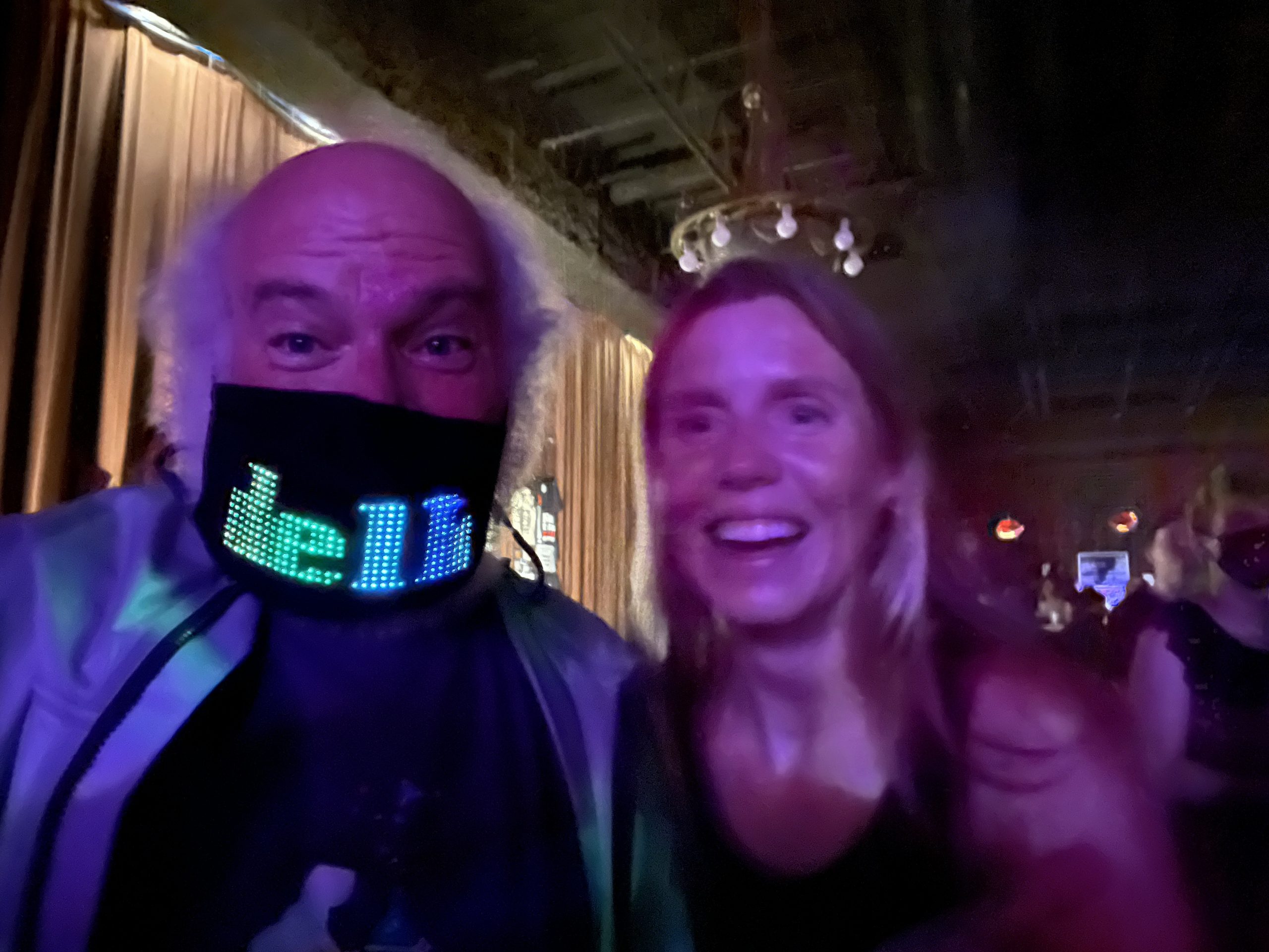 my part came and went… And it felt good to be off stage. I guess it’s my last event Of the first part of my Ibm career .It went well… They did it up in full tie-dye and bling.One funny thing right before it the ceremony started I had double equipment failure… My led glasses Broken wire as did my LED headband.… Dan was able to give me some emergency supplies and I was able to repair the headband… But I retired the glasses and relied on my light up mask… Understated as always. I was proud to have not freaked out… And it all went fine. A nice part of a new beginning