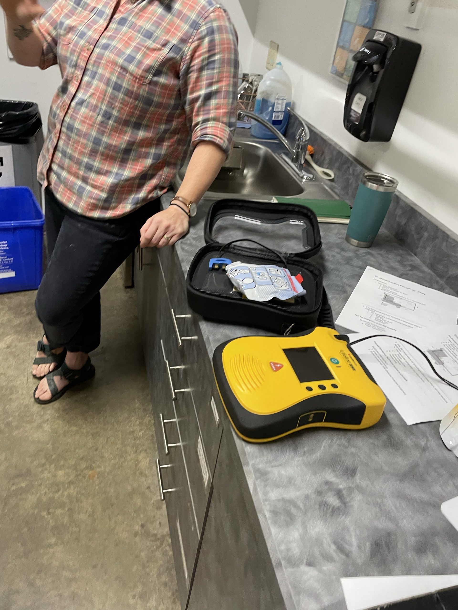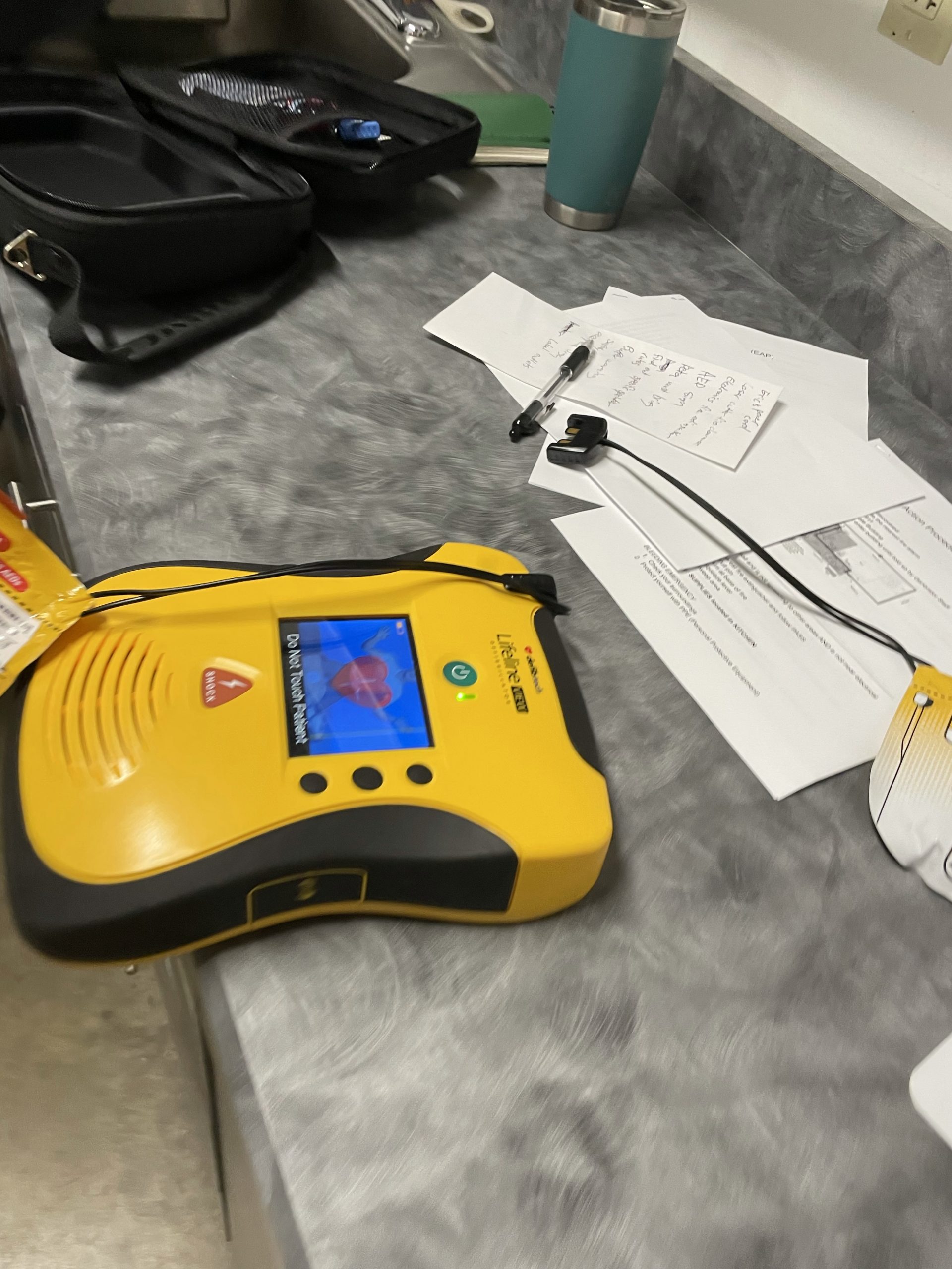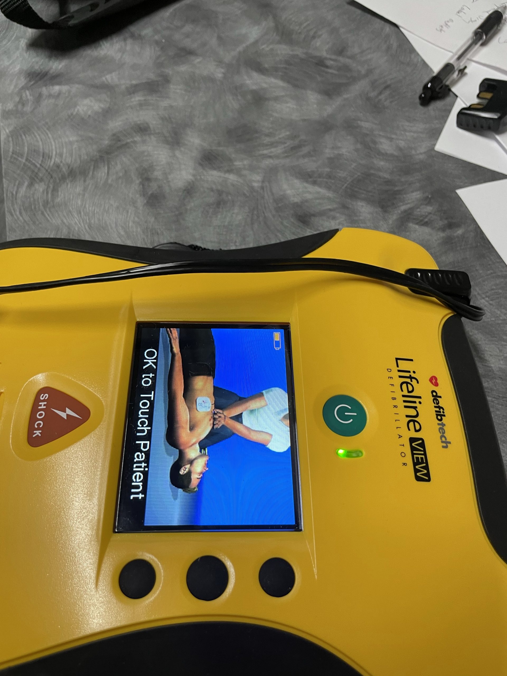 During our monthly walk-through we had planned to do a mock AED Defibrillator drill.… I was really surprised when my friend (and distant cousin in law) Bill. … Who’s actually a physician… pulled up his shirt and put the pads on himself. He was trusting that the machine could tell a healthy heart… Luckily he was right