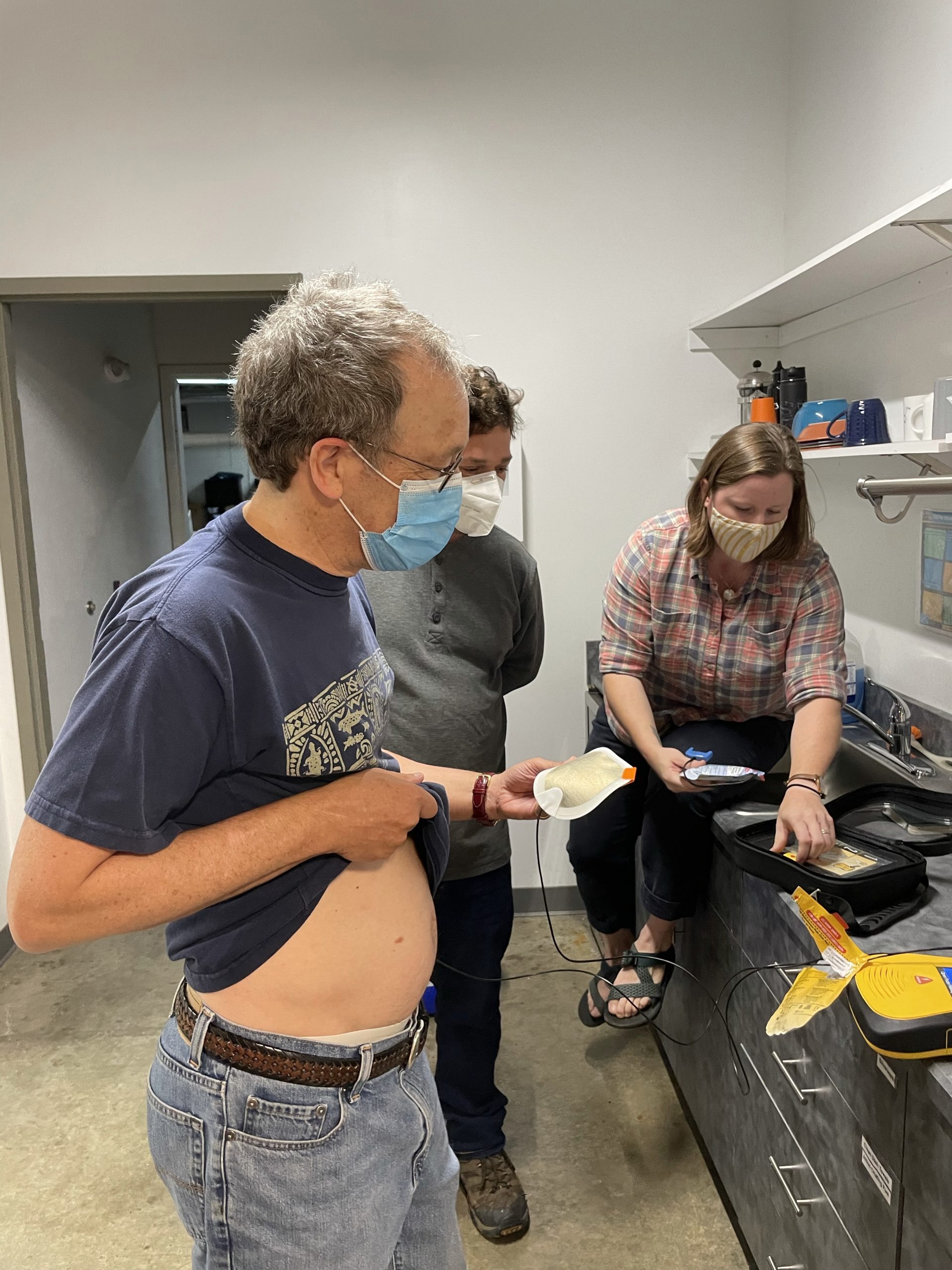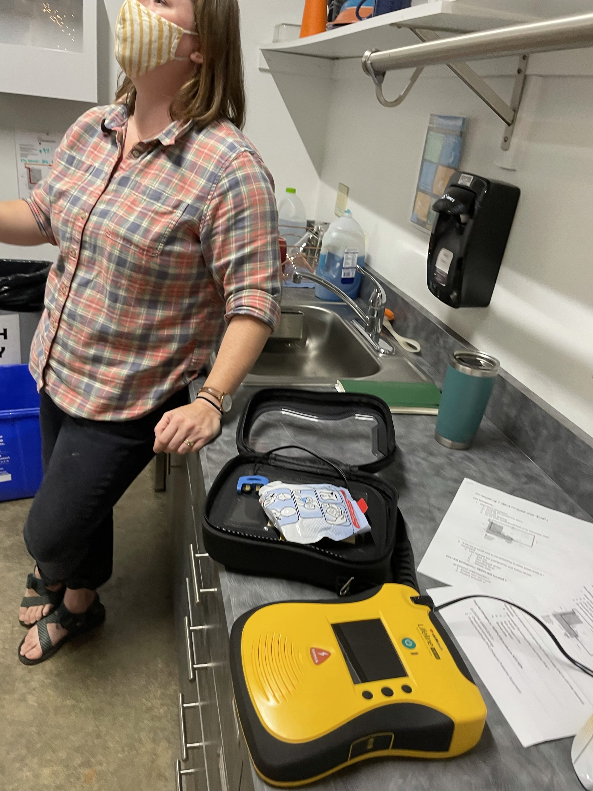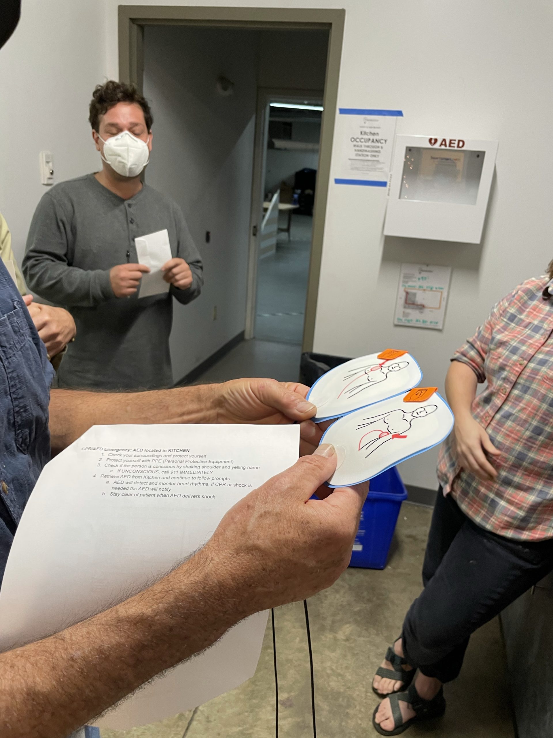 During our monthly walk-through we had planned to do a mock AED Defibrillator drill.… I was really surprised when my friend (and distant cousin in law) Bill. … Who’s actually a physician… pulled up his shirt and put the pads on himself. He was trusting that the machine could tell a healthy heart… Luckily he was right