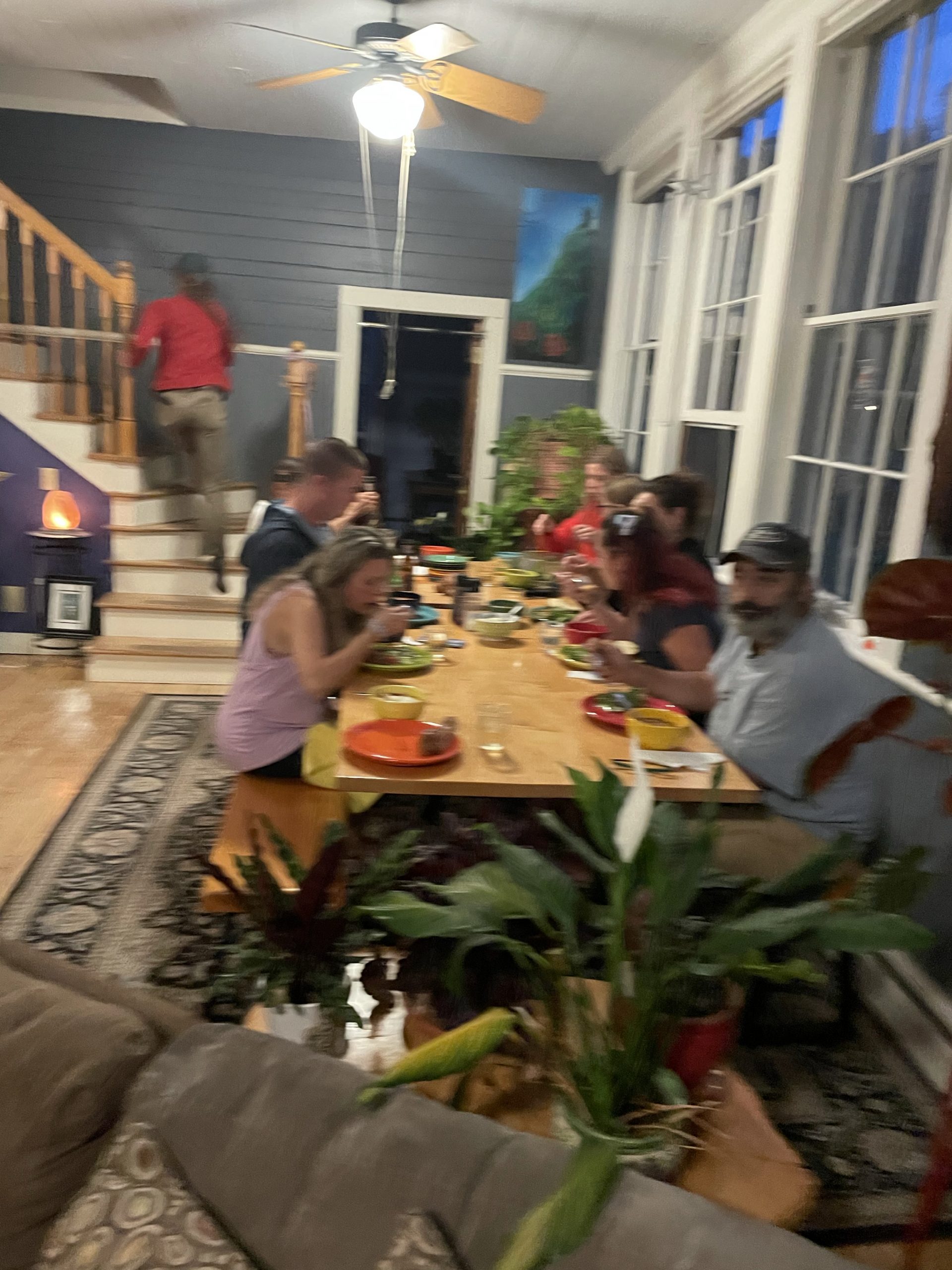 And tonight ‘Diane held one of her pop-up yoga and soup nights… I think it might actually be the first one in a year and a half… We had about 10 friends over for Jenifer yoga and then we came in for some of ‘Diane’s wonderful vegetable soup. It really felt great.… Everyone was vaccinated and the windows were open and it almost felt like normal
