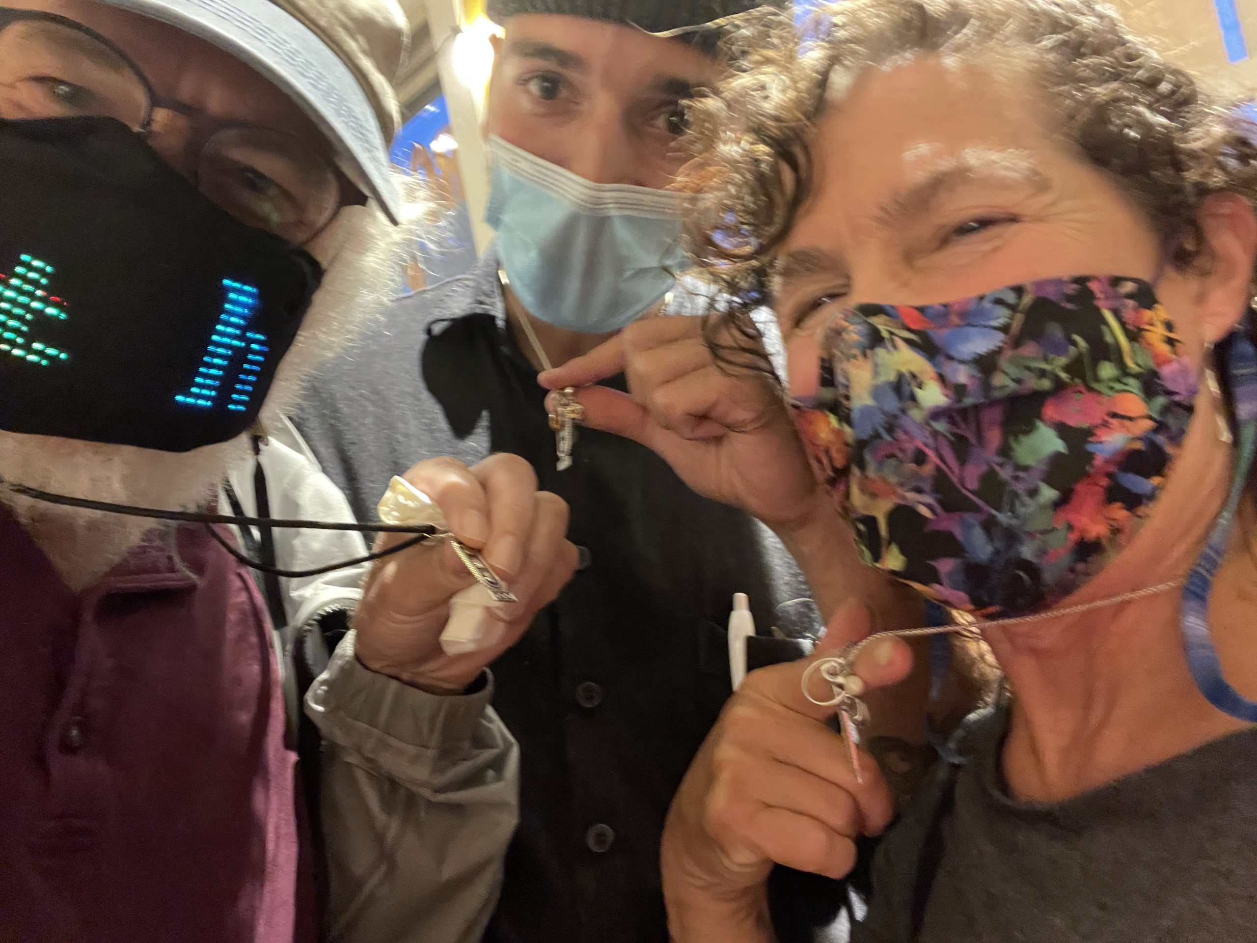 I lost track of how many friends we ran into tears it up but it was really great running into Sumner and his girlfriend. Sumner Diane and I were all wearing the same Sam necklace