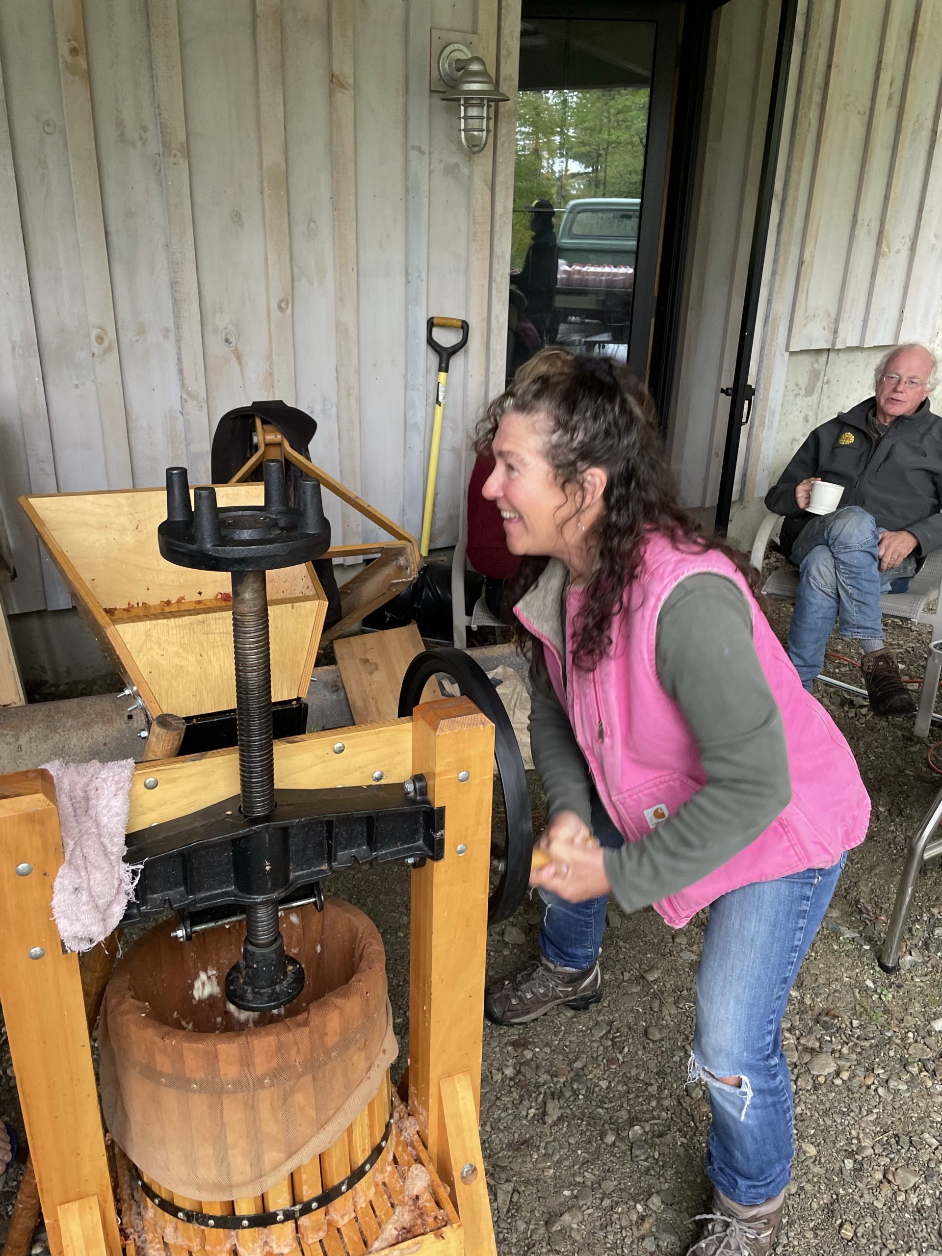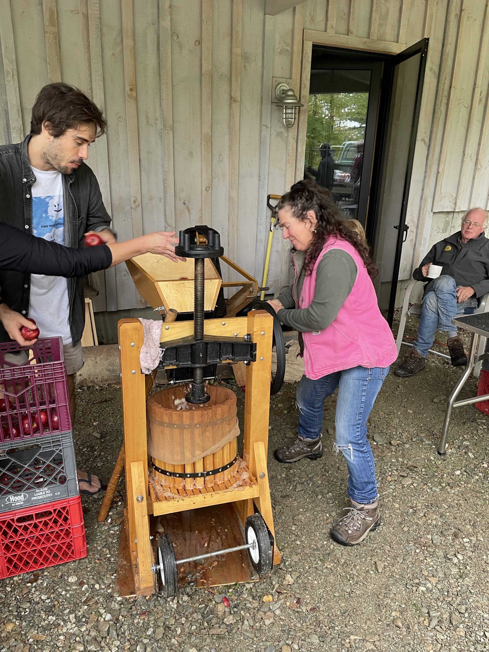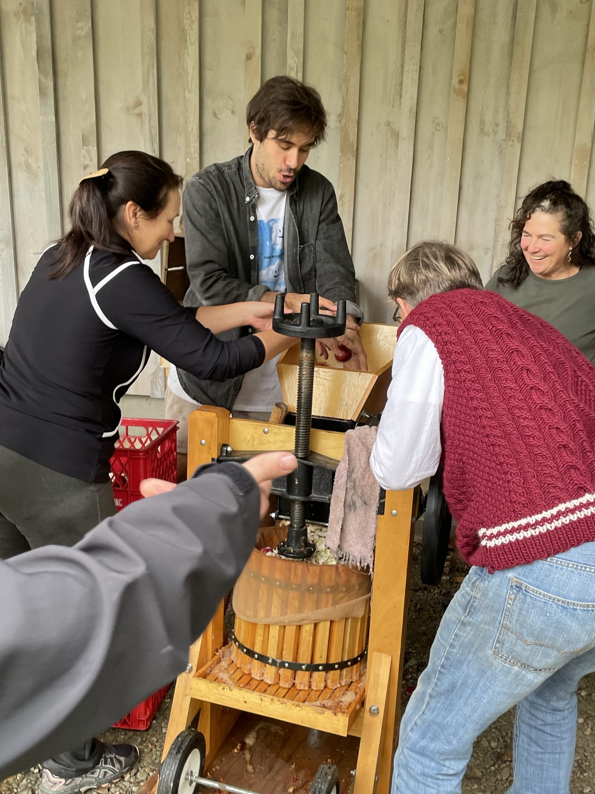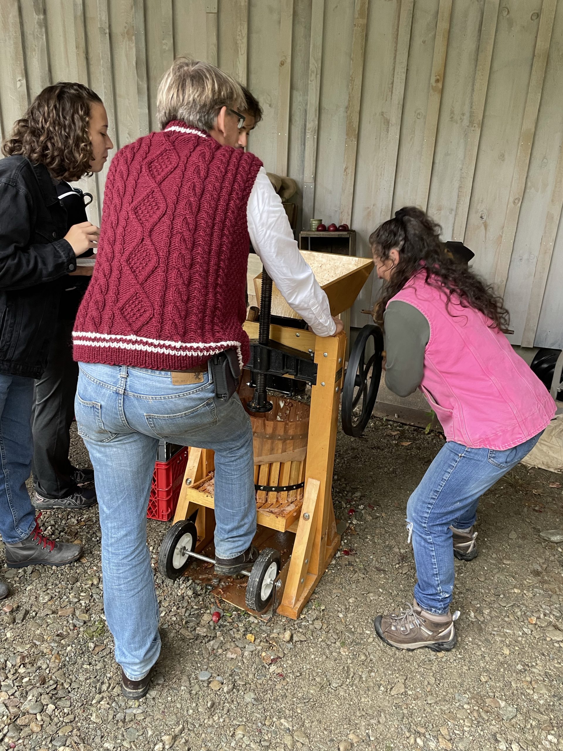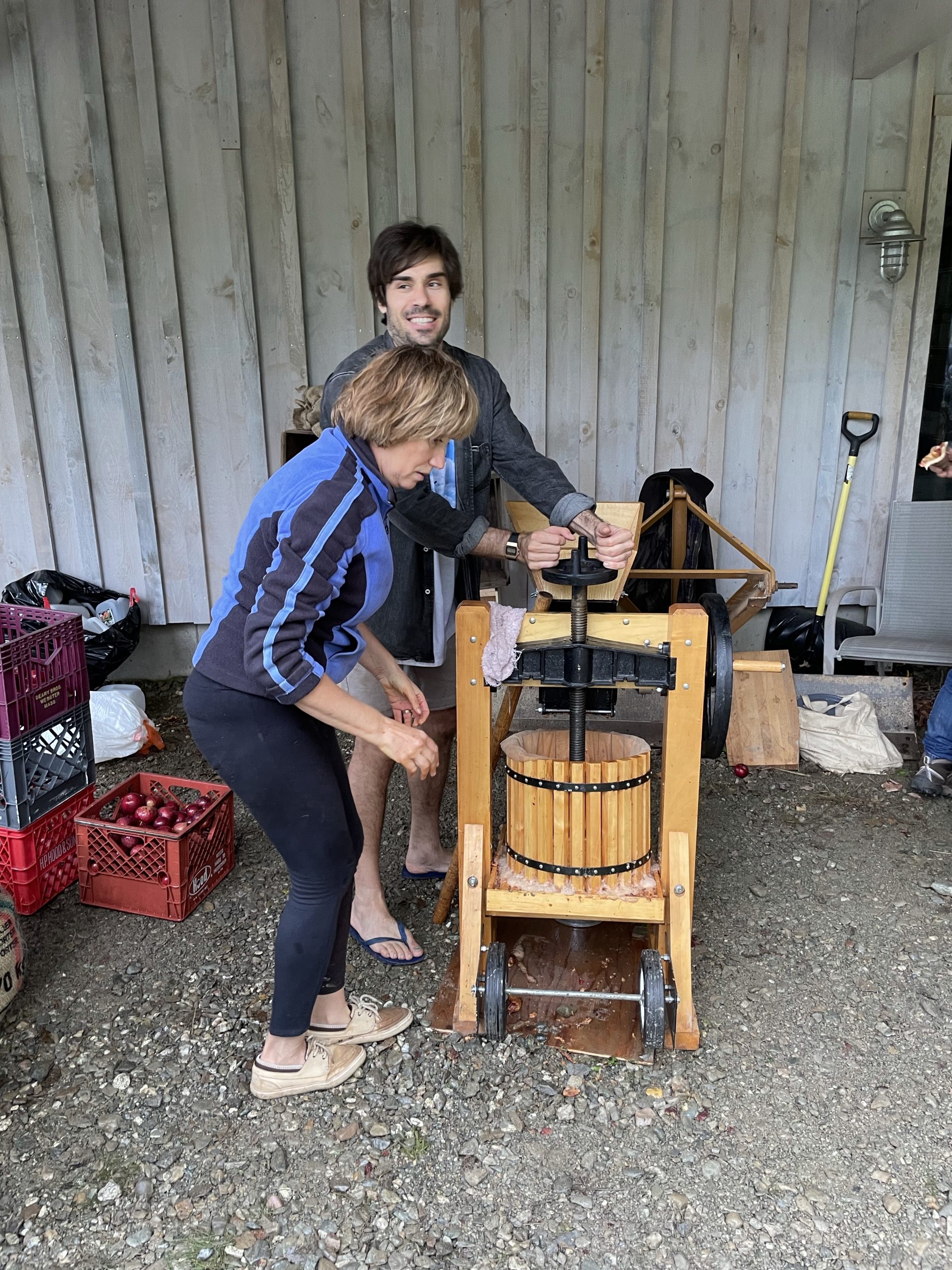 and then this afternoon we went and picked up our new friend Anna… Ana is the daughter of my friend Randy from IBM Rochester Minnesota Anna just moved to Burlington to start a PhD in biology. We picked her up this afternoon and took her to Ben’s where a group of my friends Was pressing cider from apples that were picked last week from Ben’s trees.… It was really fun… And the stuff is pretty tasty!