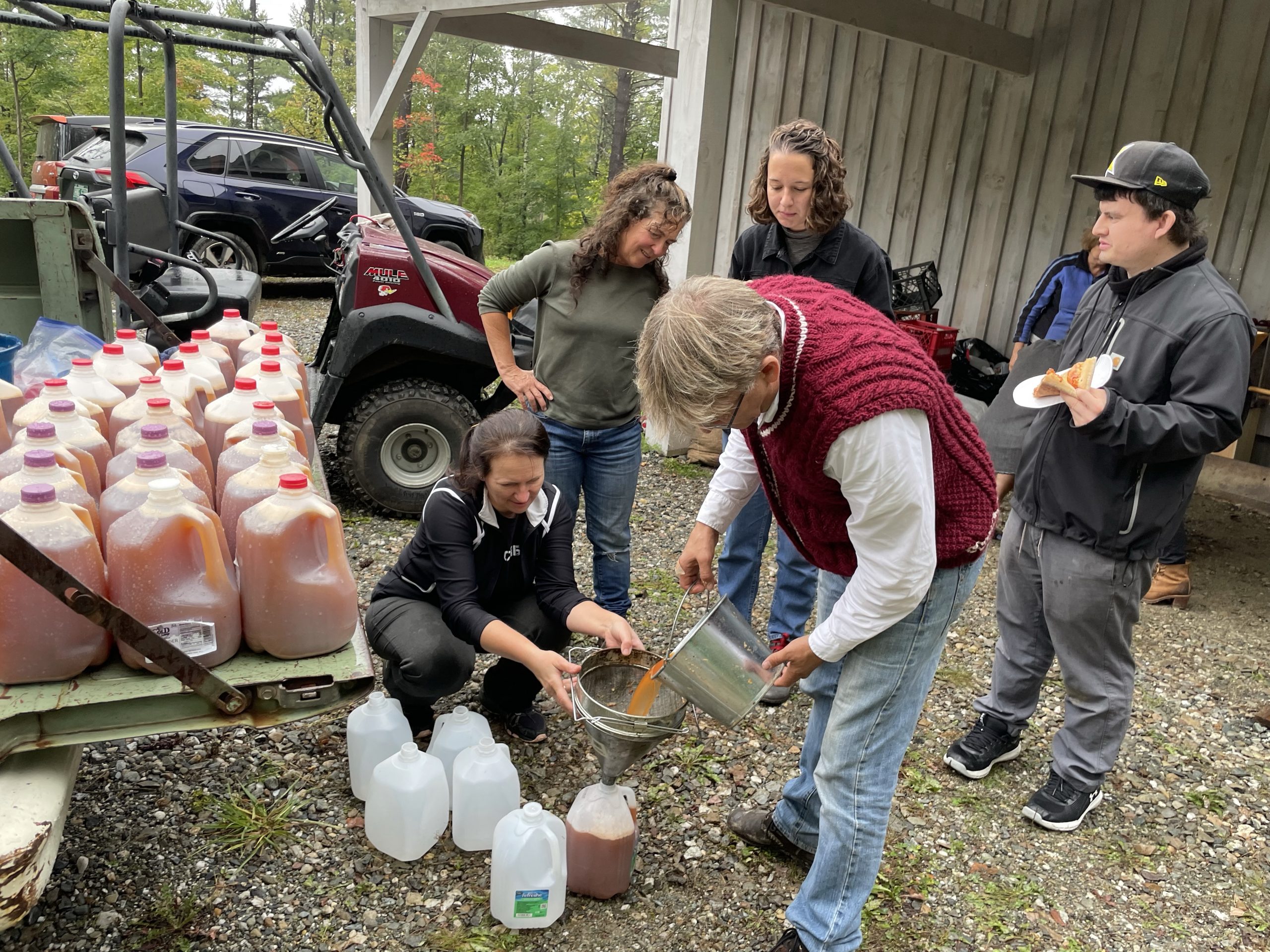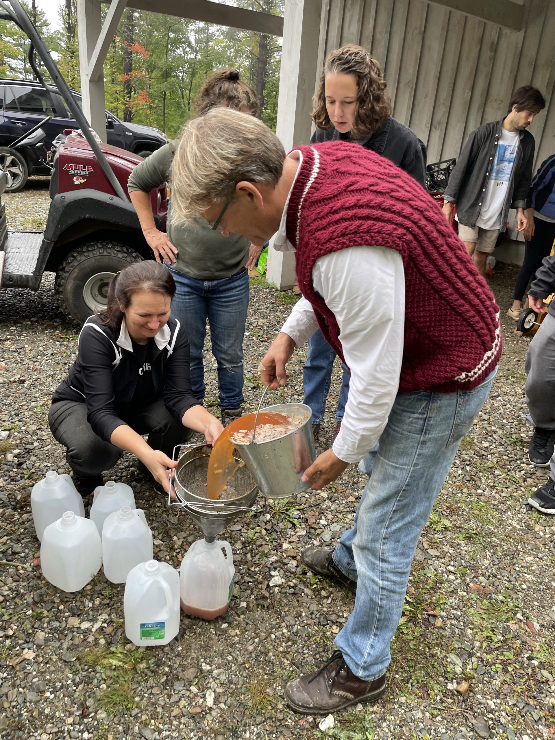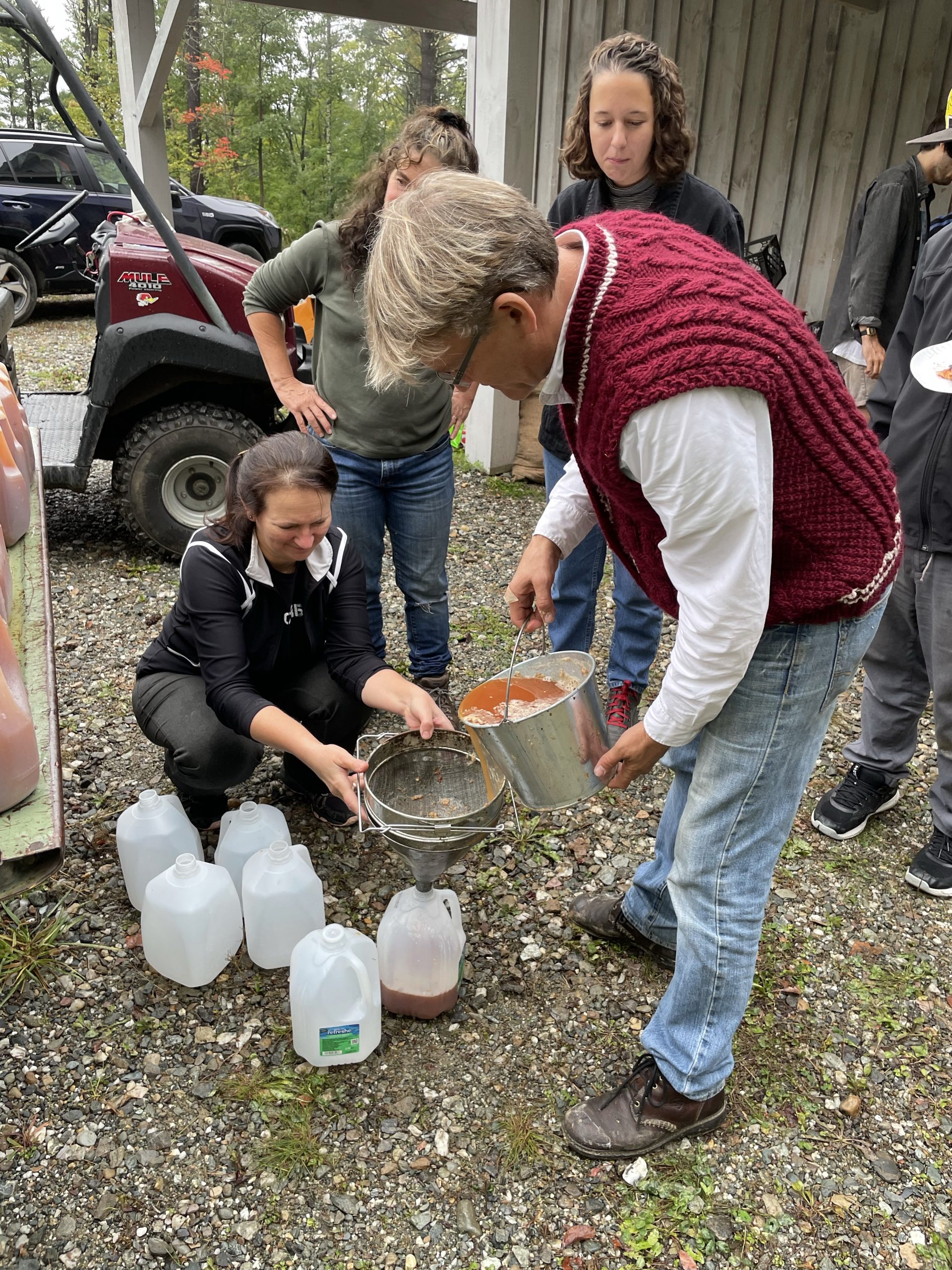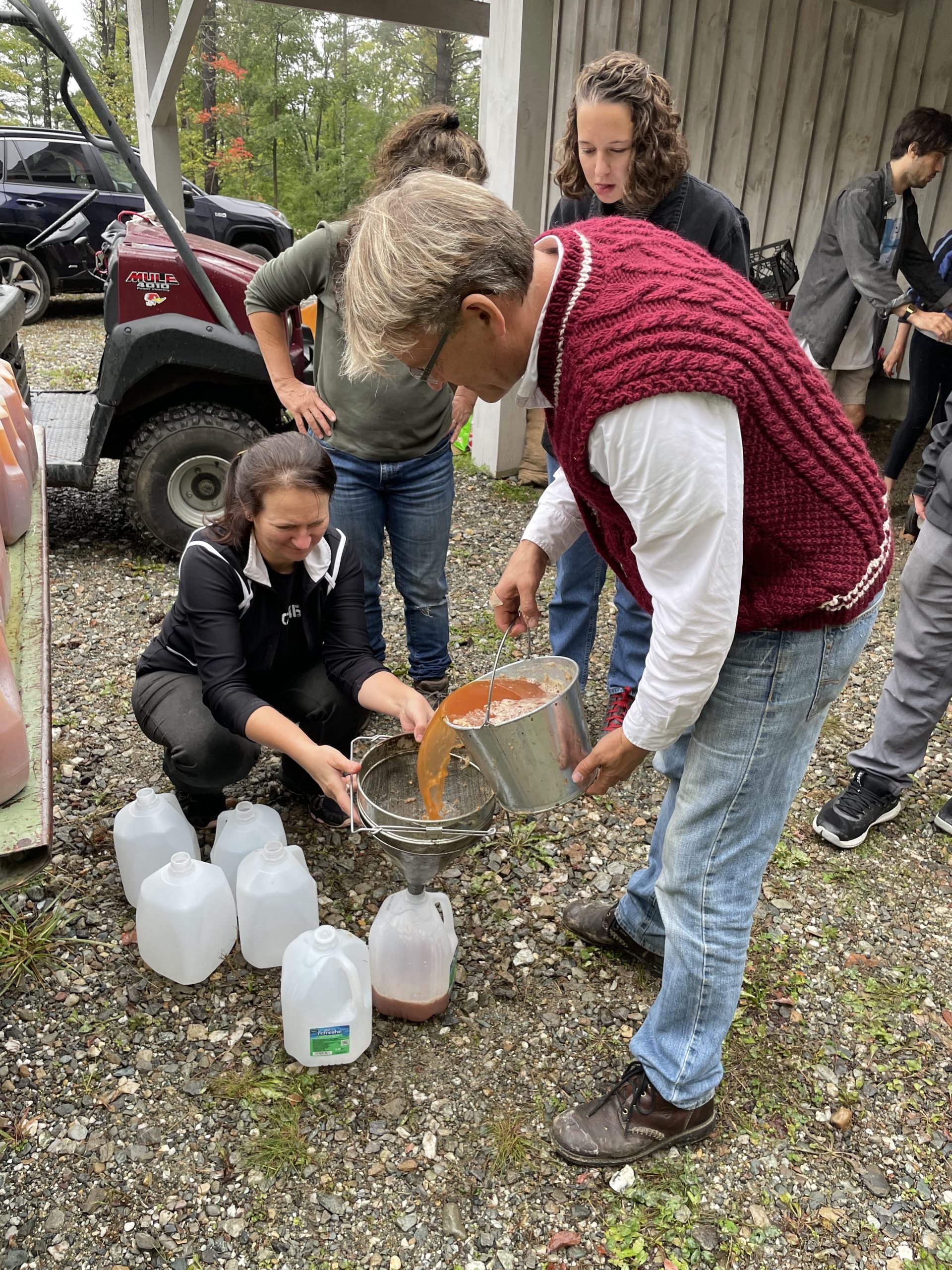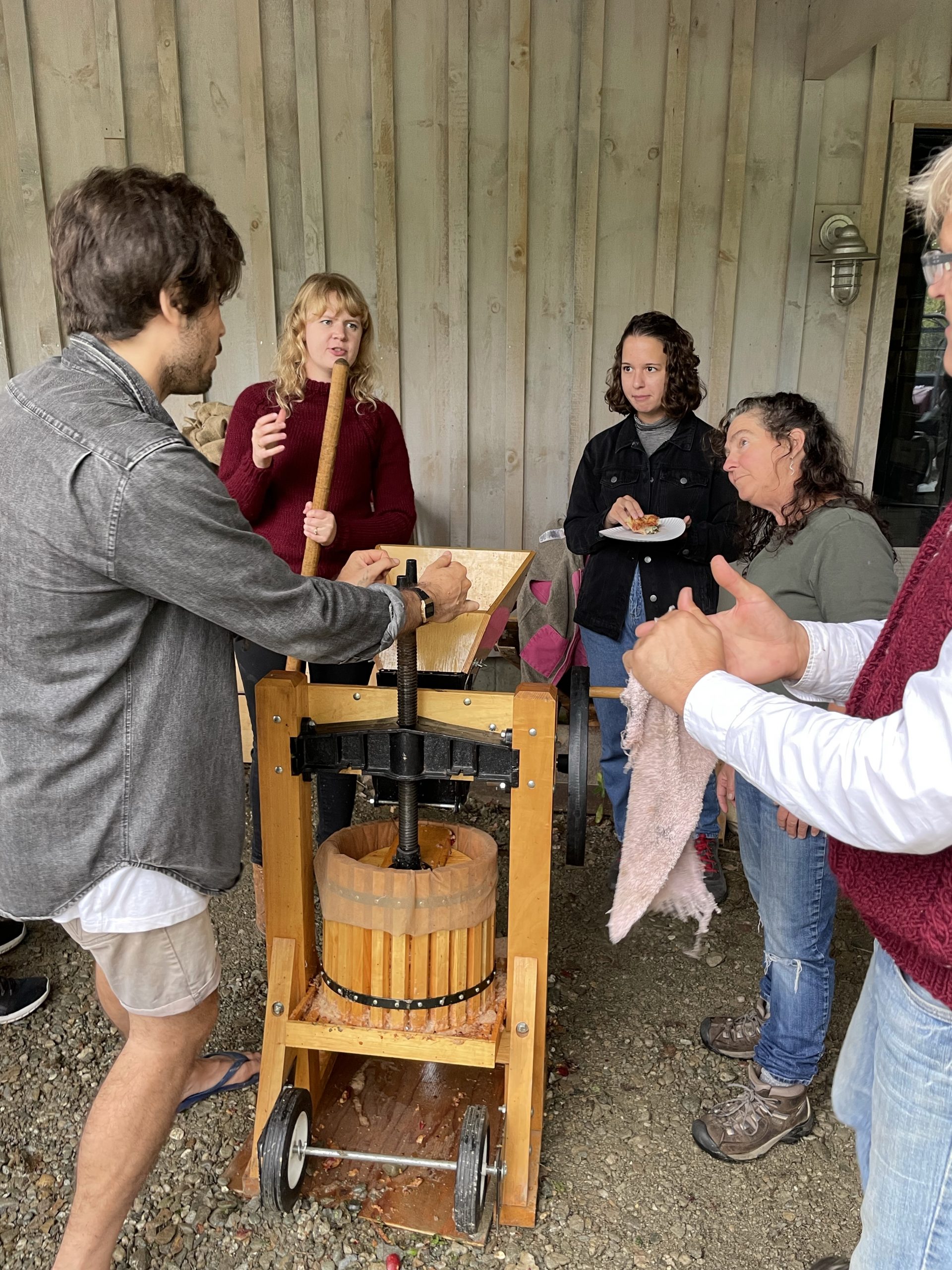 and then this afternoon we went and picked up our new friend Anna… Ana is the daughter of my friend Randy from IBM Rochester Minnesota Anna just moved to Burlington to start a PhD in biology. We picked her up this afternoon and took her to Ben’s where a group of my friends Was pressing cider from apples that were picked last week from Ben’s trees.… It was really fun… And the stuff is pretty tasty!