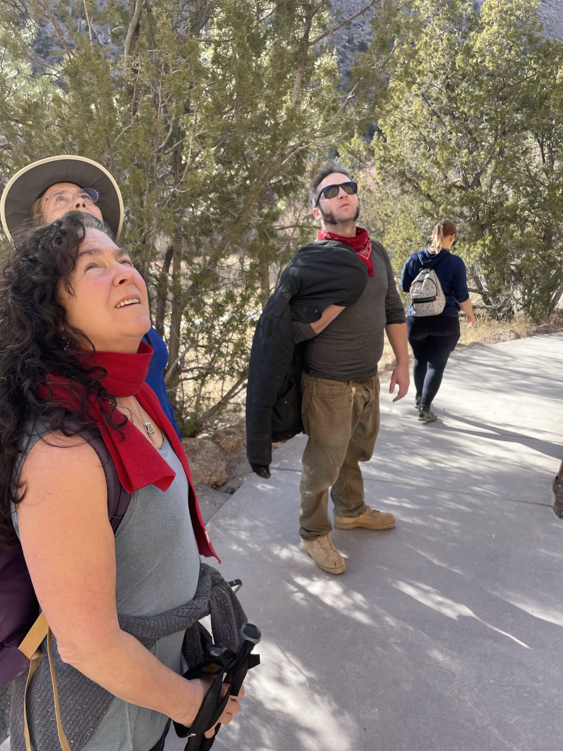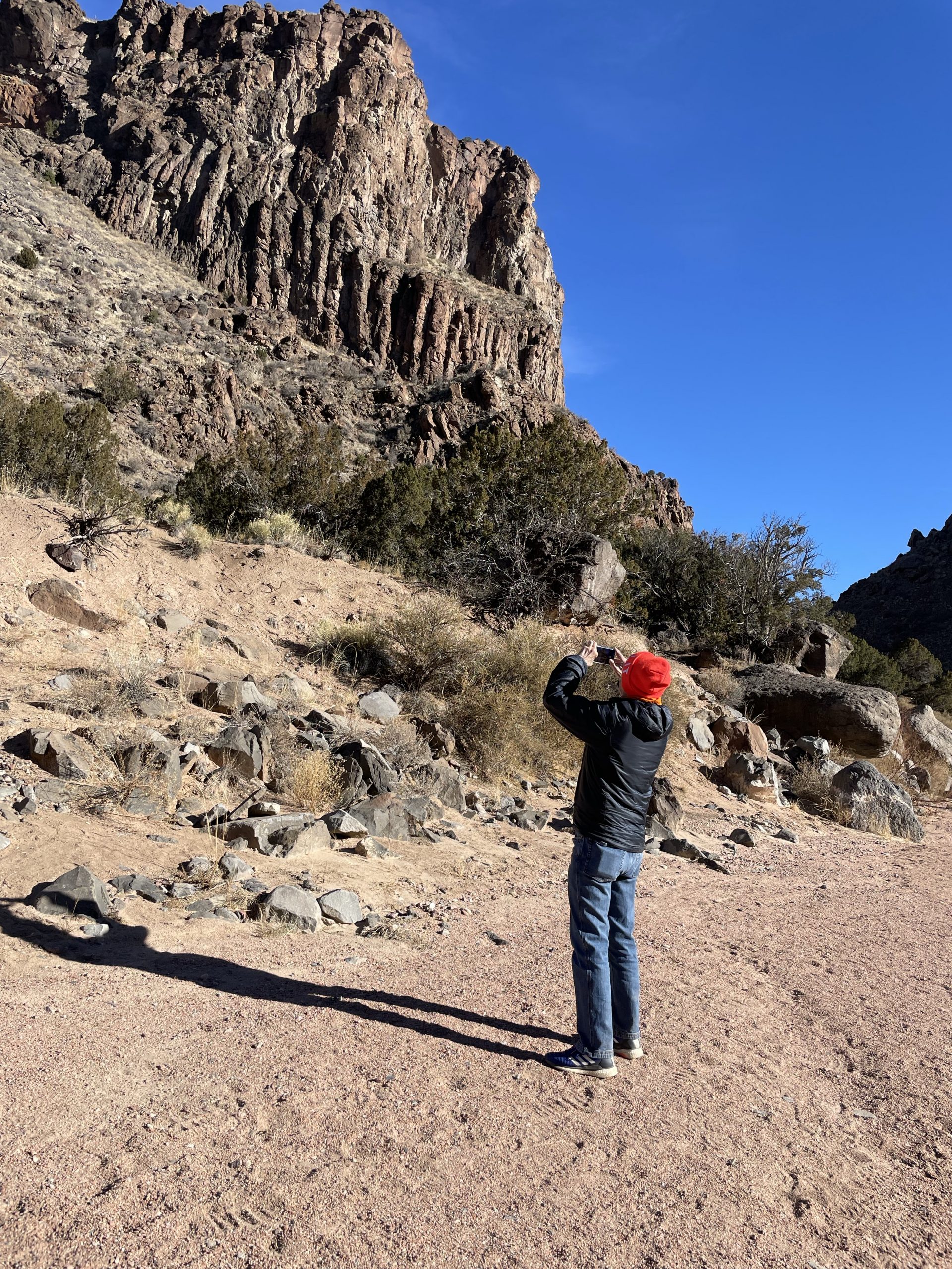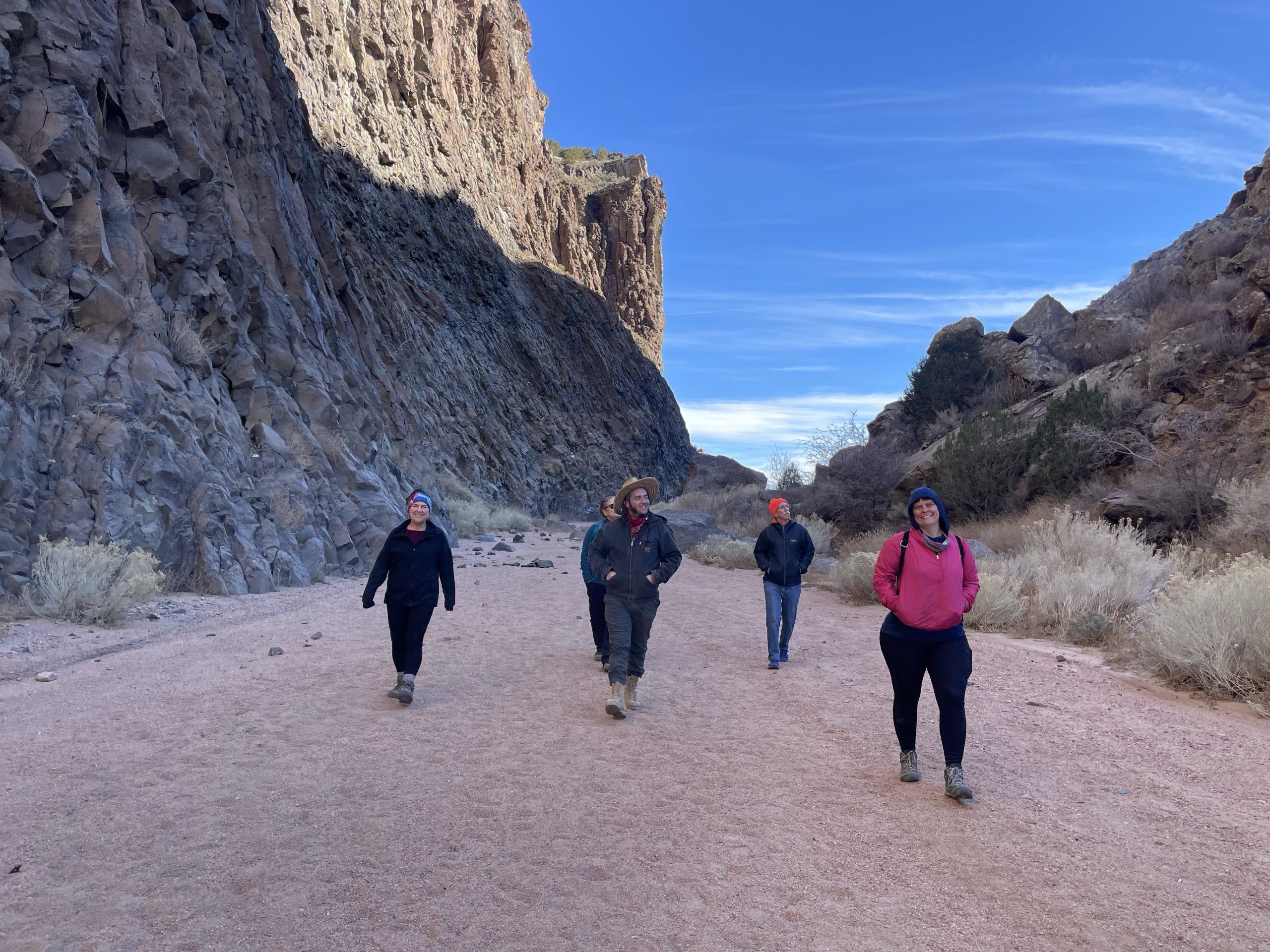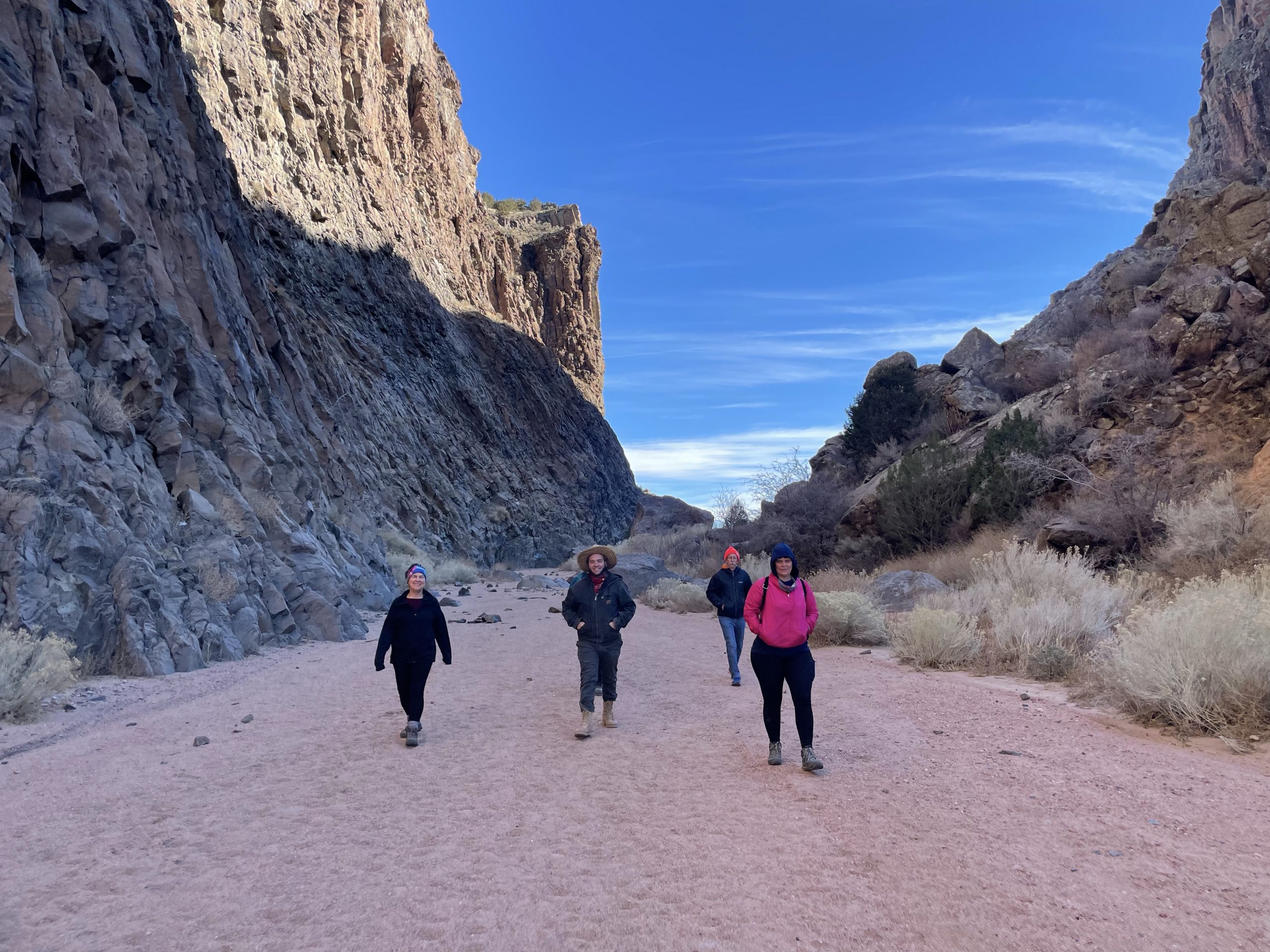 Afterbanwonderful brunch, we all took a wonderful ride out to Diablo Canyon today for a fantastic hike… The scenery was unbelievable… And the company was really good too. We walked along this old wash right in the slot canyon. It was pretty remarkable… In the shadows we were bundled up and they were still bits of snow but whenever we walked into the sun it was broiling… It was such a cool weather. The Geology is so amazing here !