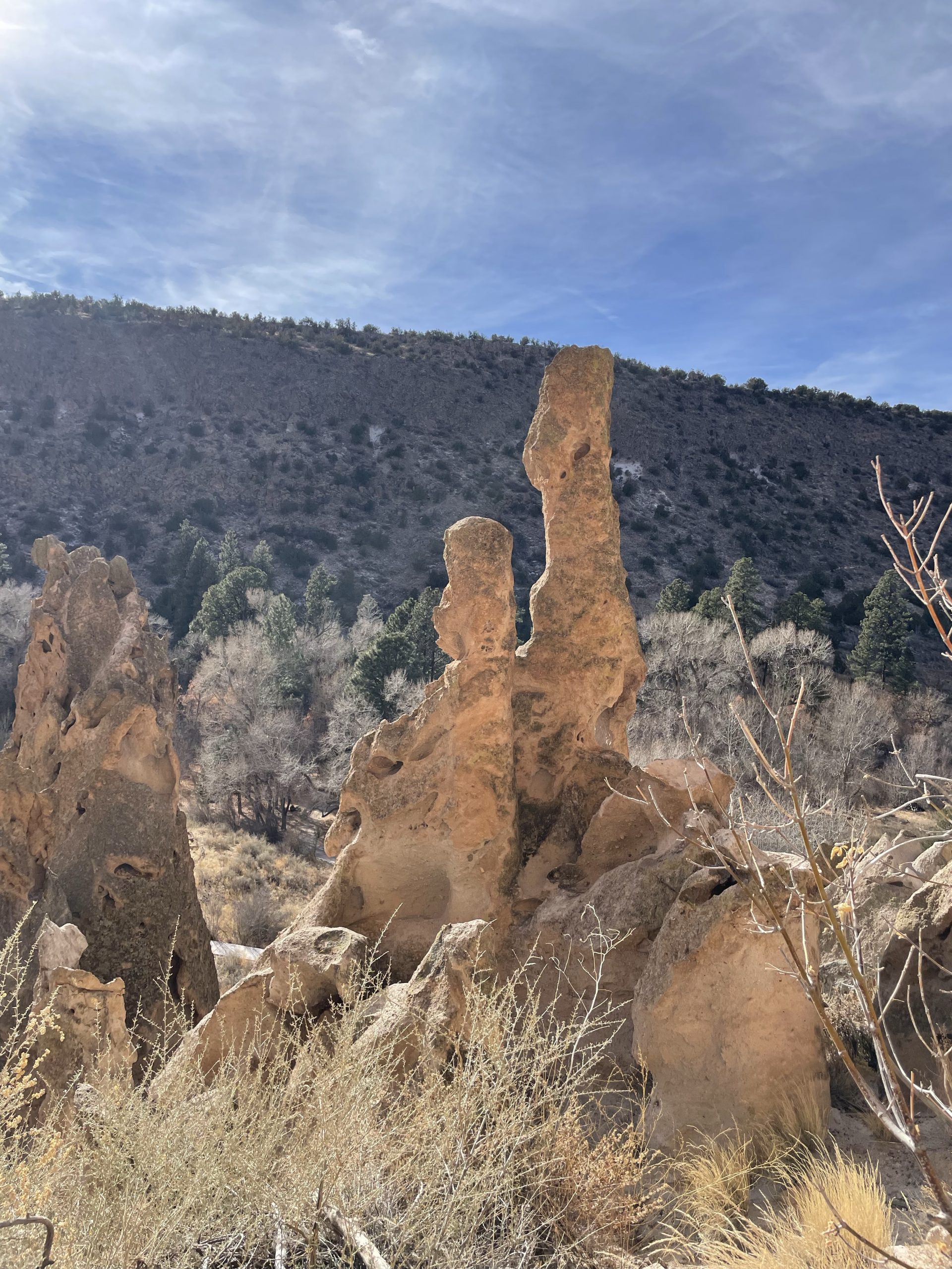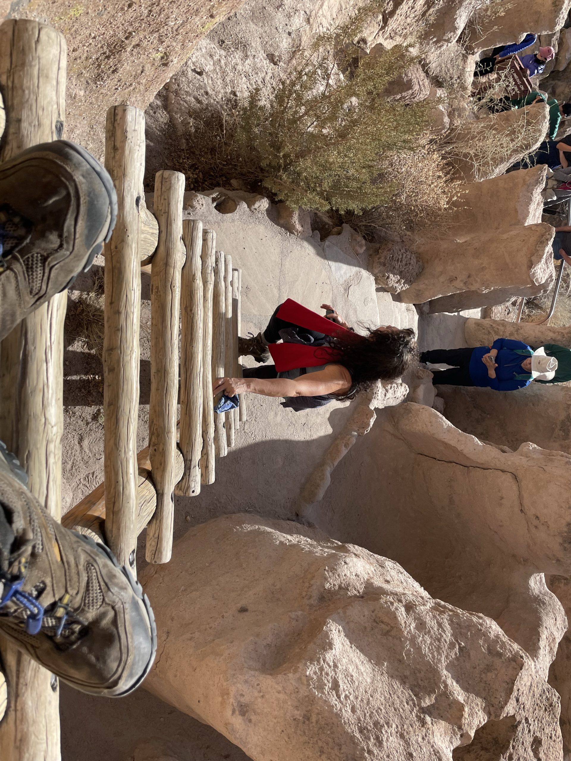 Today Max and Becky took us to Bandelier national Monument… It’s right outside of Los Alamos we’re both Becky’s parents have worked at one time or the other.… Bandolier is an amazing historical and natural wonder… It was inhabited for thousands of years before being abandoned about 450 years ago. We got to tour the cliff dwellings and take a beautiful walk. We even saw a couple of mule deer… We then had a great picnic of burritos and Chile rellenos That we brought with us.