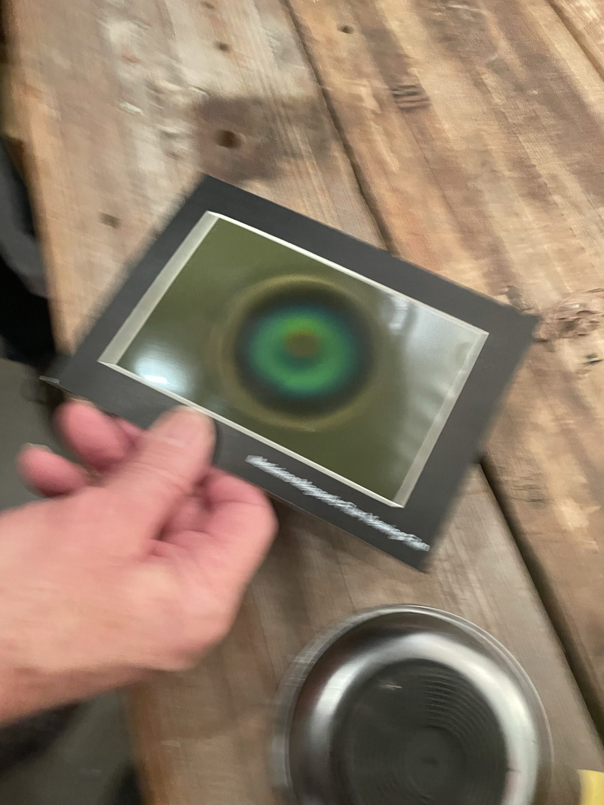 later on that day o met up with my friends jon, bruce and brian at bruce’s studio . jon had brought his friend john fro. australia who had sone some amazing paintings based on the maori dreamtimes. we ended up playeg around with some of the new color magnetic viewing material I found