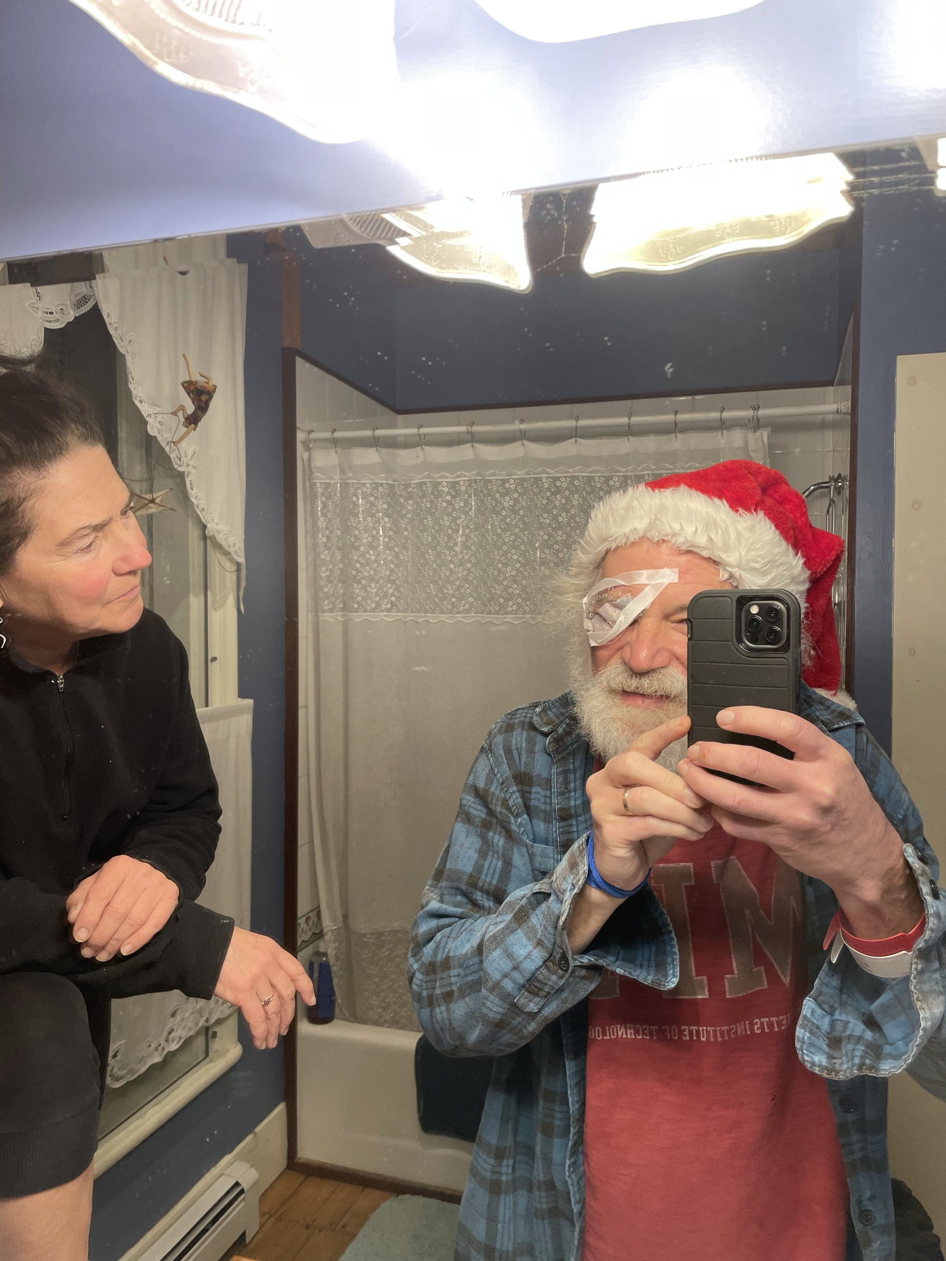 I’ve had a pretty adventurous day. Diane and I woke up early and time to get me to the eye surgery center by 7 AM. I was wearing my dad’s running sweats for good luck. I remember when he had this same surgery.. and it worked really well for him. I remember how you could see the implant lens in his eye if the light was right.