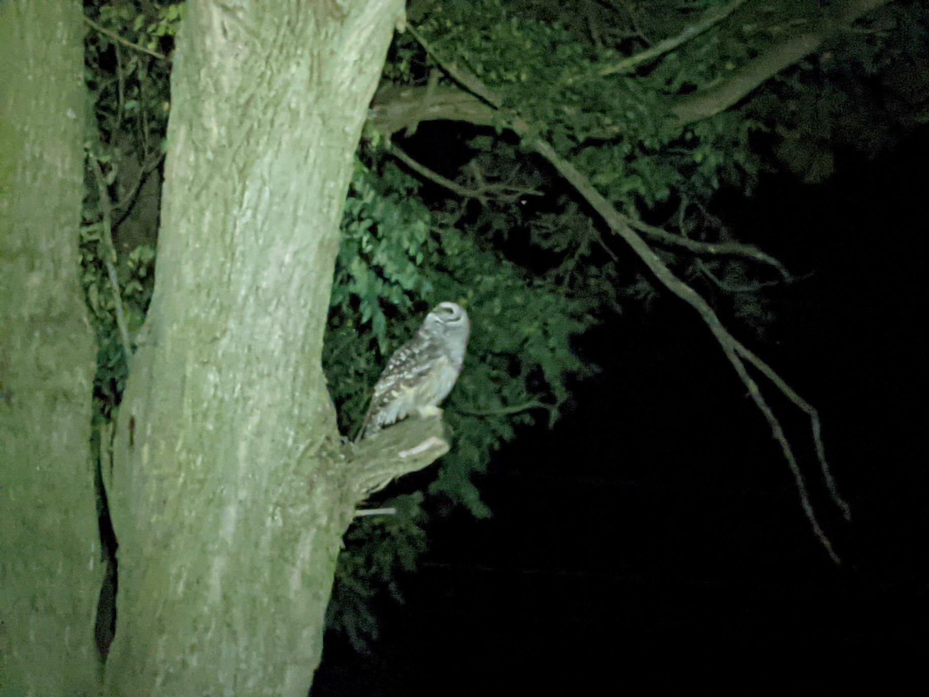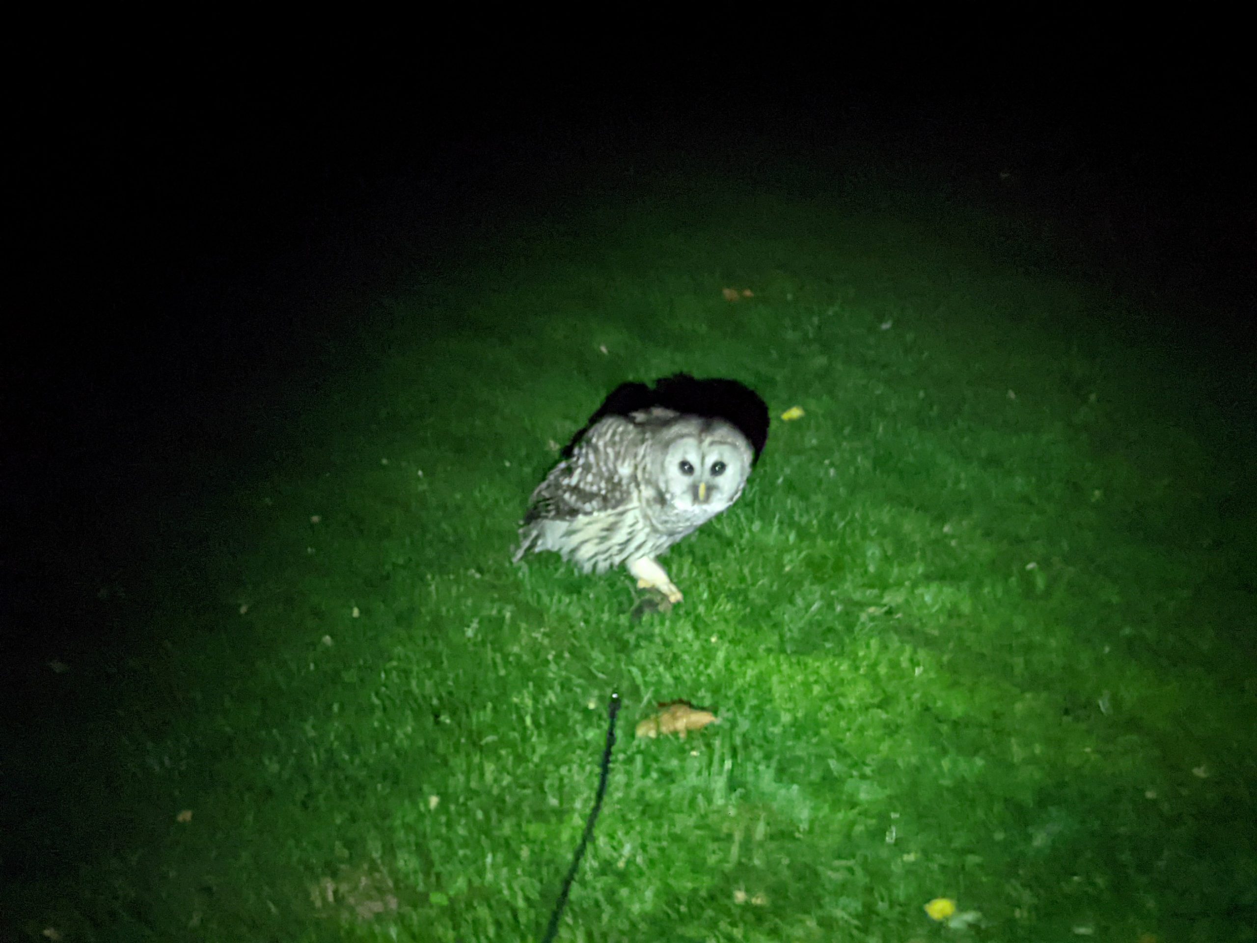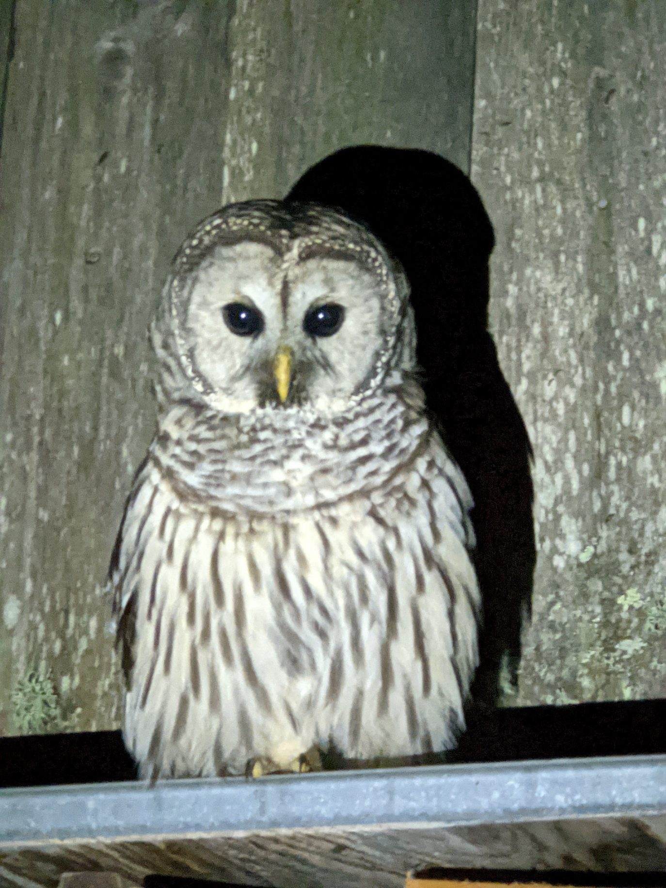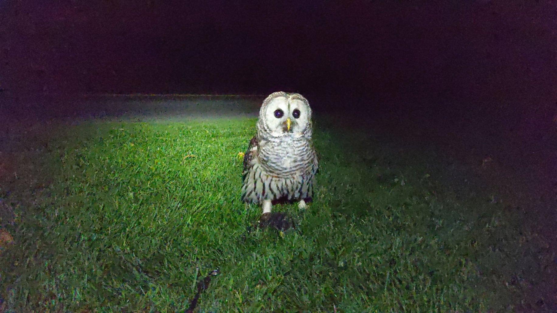 Well Max was here last weekend he had a remarkable experience… It was late at night… I think about 3 AM and he was out practicing rope dart. He didn’t have it fueled or lit he was just practicing his moves… When all of a sudden he heard us “swoosh”… He looked around and it was this owl… For 40 minutes the owl and he played a little game of tag where the owl kept trying to grab the dark and fly away with it… It even followed him to another part of the yard… It was such a cool magical moment. Max just share these photos with me… I hope you like them