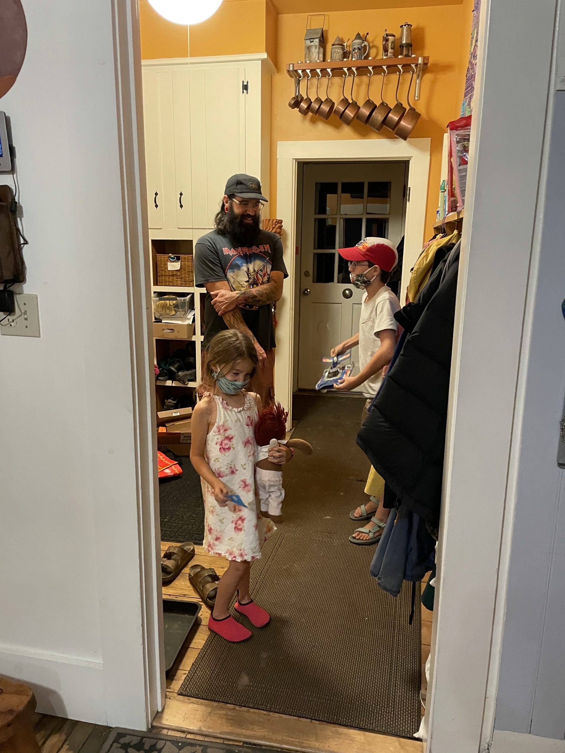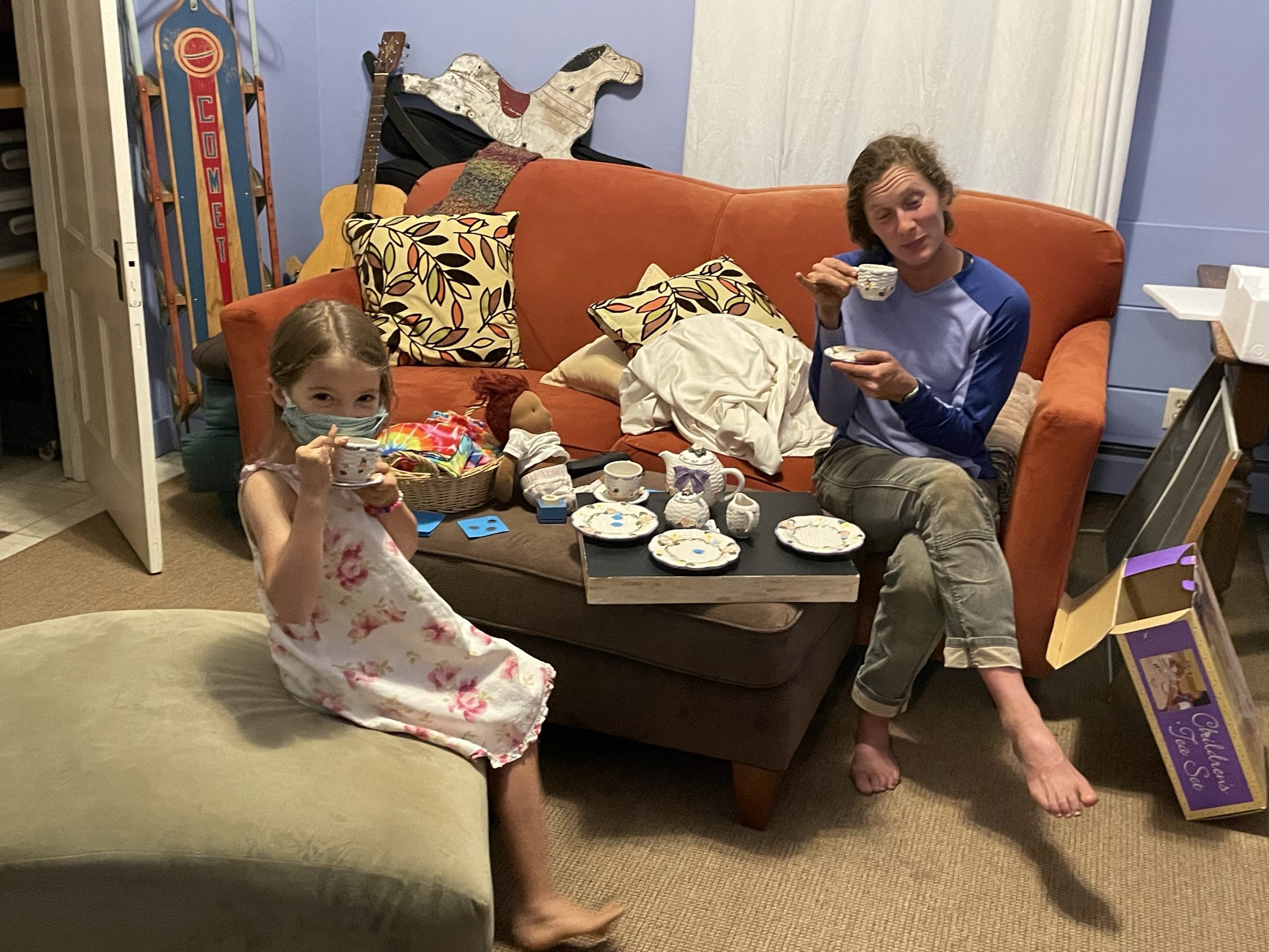 I got home just in time to meet with Newt to give him back the PA system from Scott’s celebration and to meet with a good friend Phil and his kids James and Hazel who came over to work on James his radio control boat… It was so fun having them here… They’re both great kids. Well James and I worked on the boat ‘Kyle and Hazel had a tea party