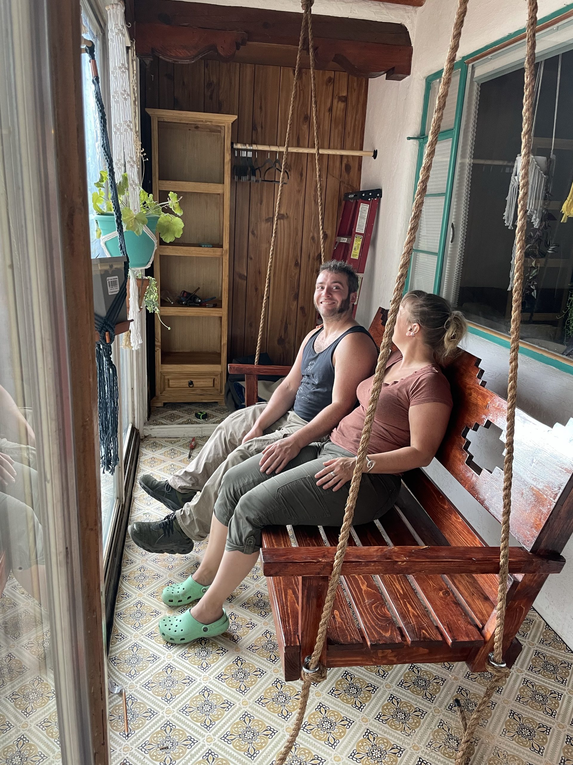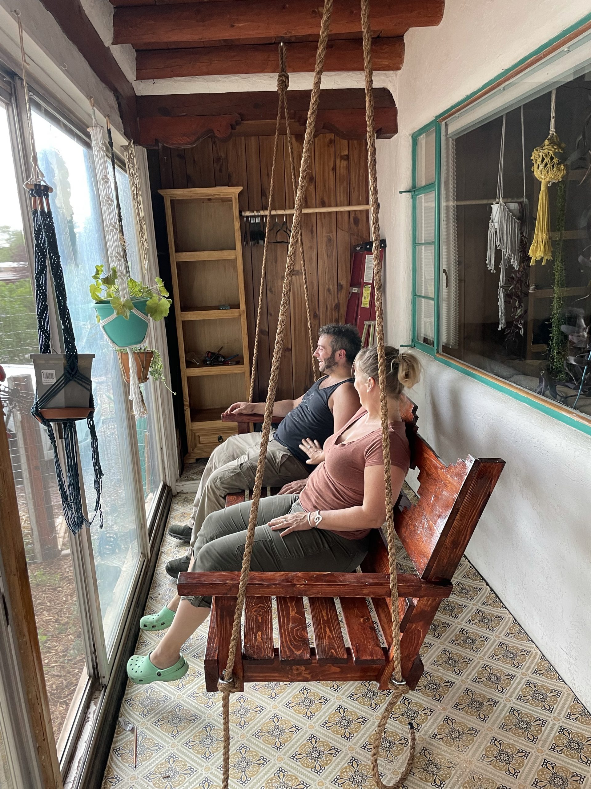 When we came home we finished off the bench that Becky had made… Max had welded up some brackets and we hung them in the front porch. It’s really beautiful and comfortable