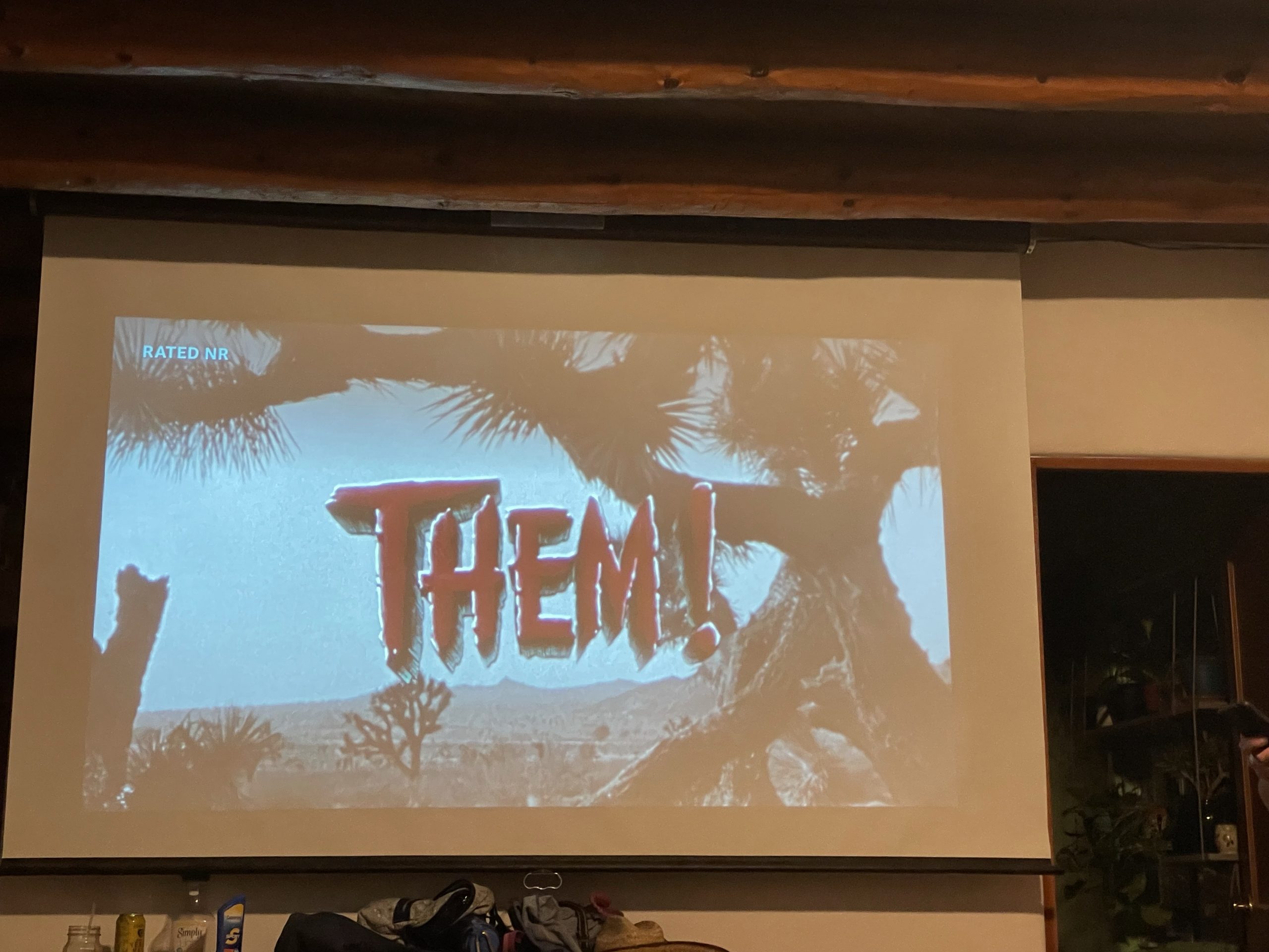 This was our last night all together so we decided to do something really special. We watched a mutant insect Horror movie from 1954 called “them!)” .It was about some mutant ants that have been zapped by the first atomic bomb test just south of Albuquerque New Mexico… The first part of the movie was all about New Mexico…