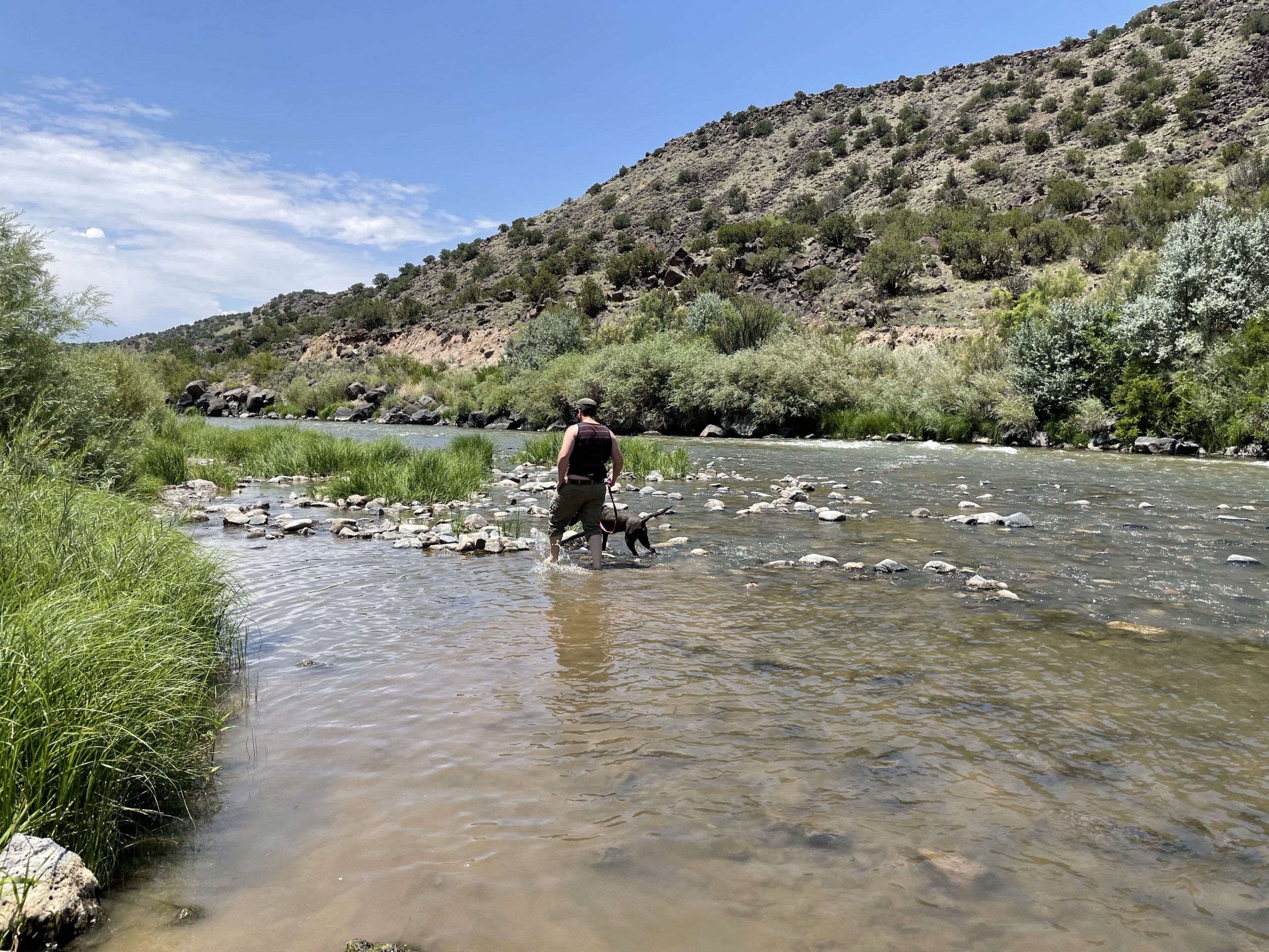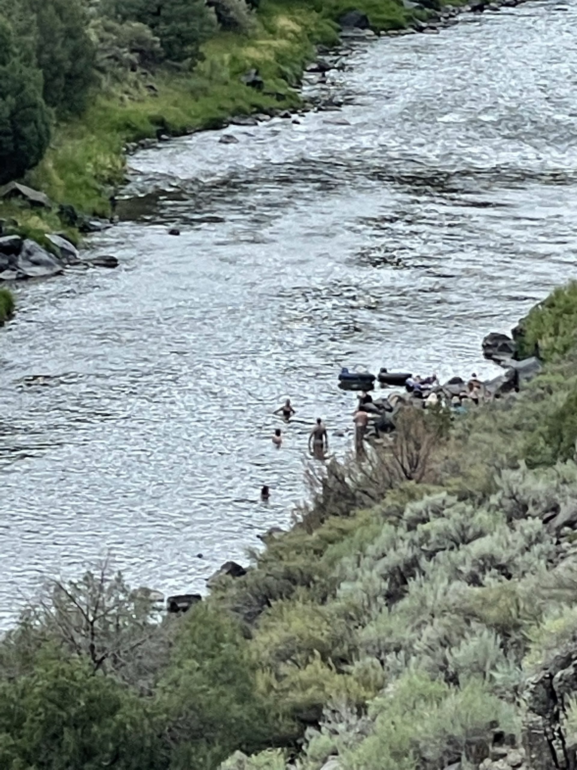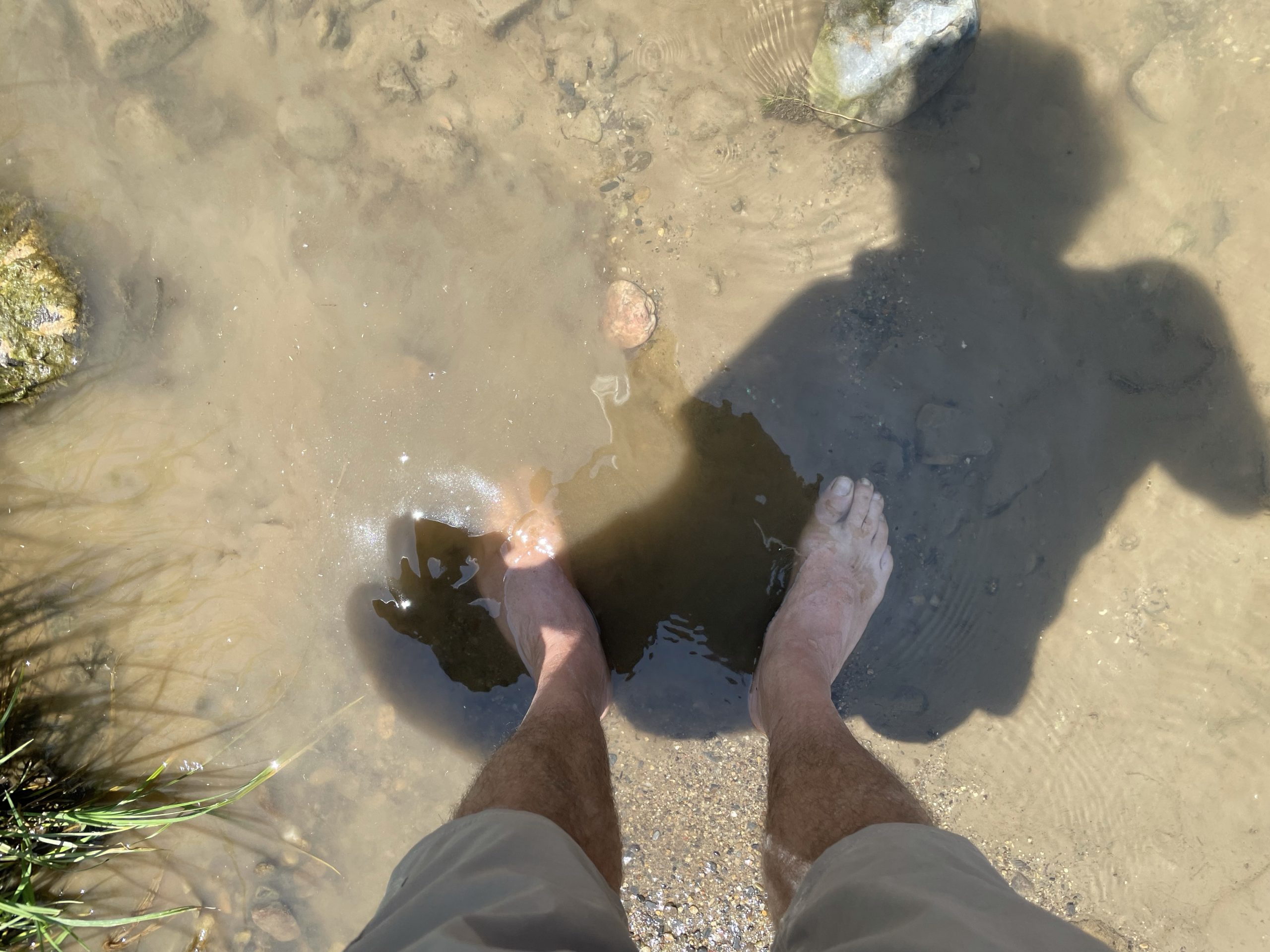 The road was hot and dry… We stopped a little bit at the Rio grande To cool our feet