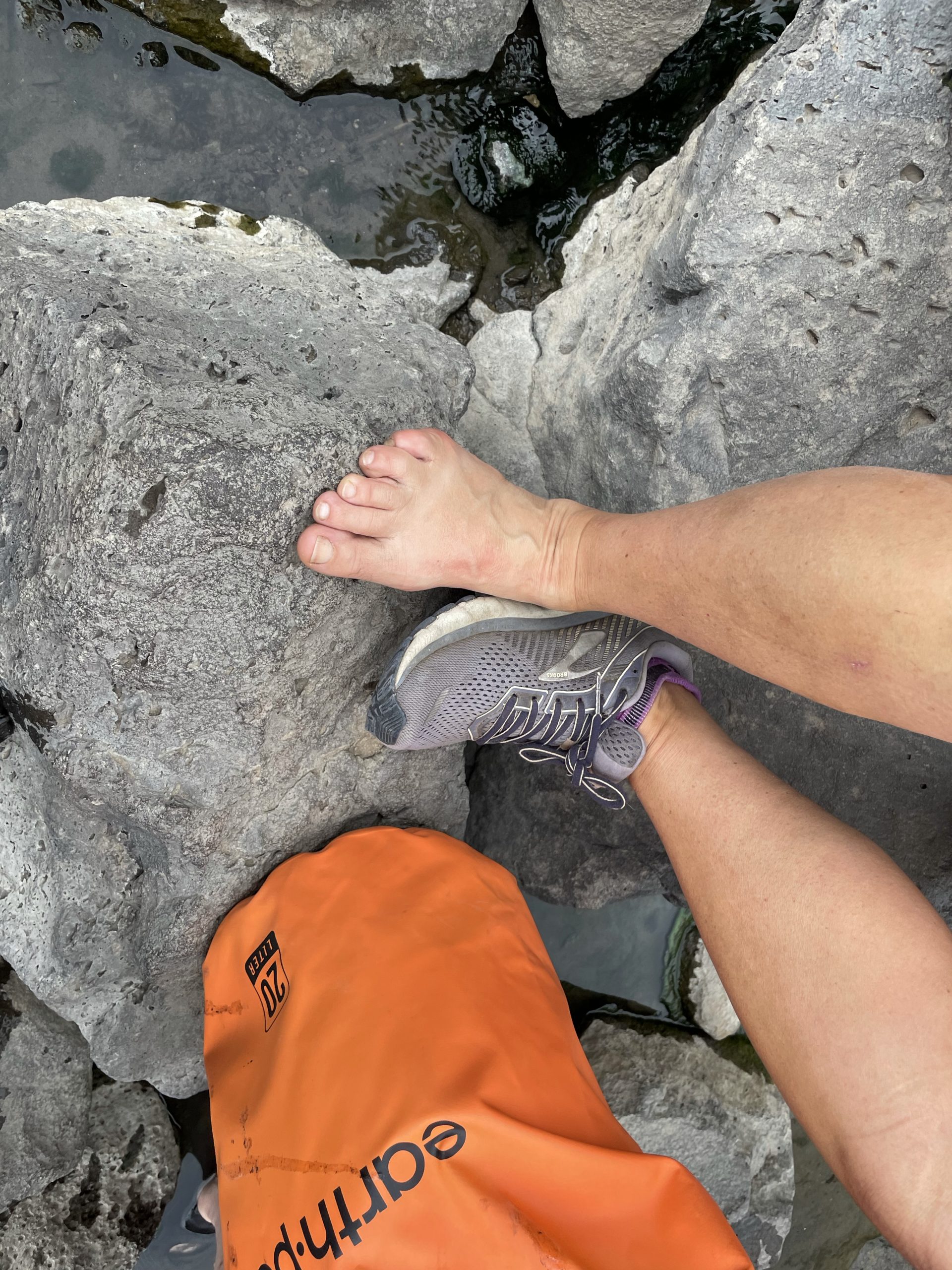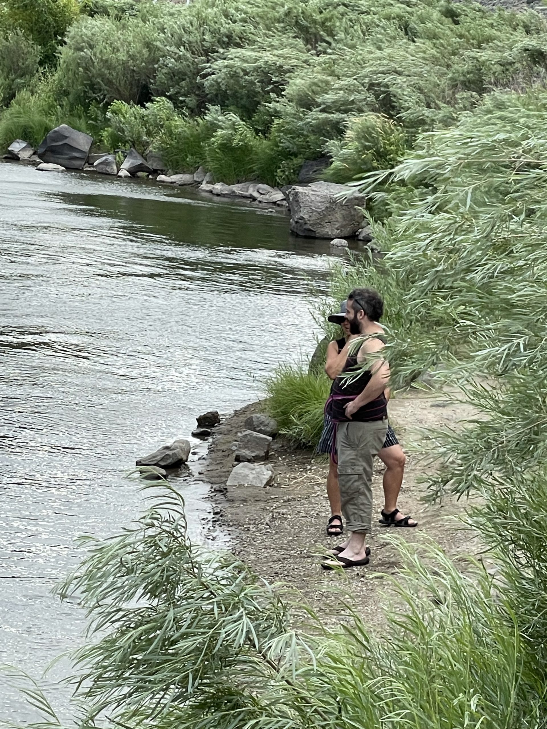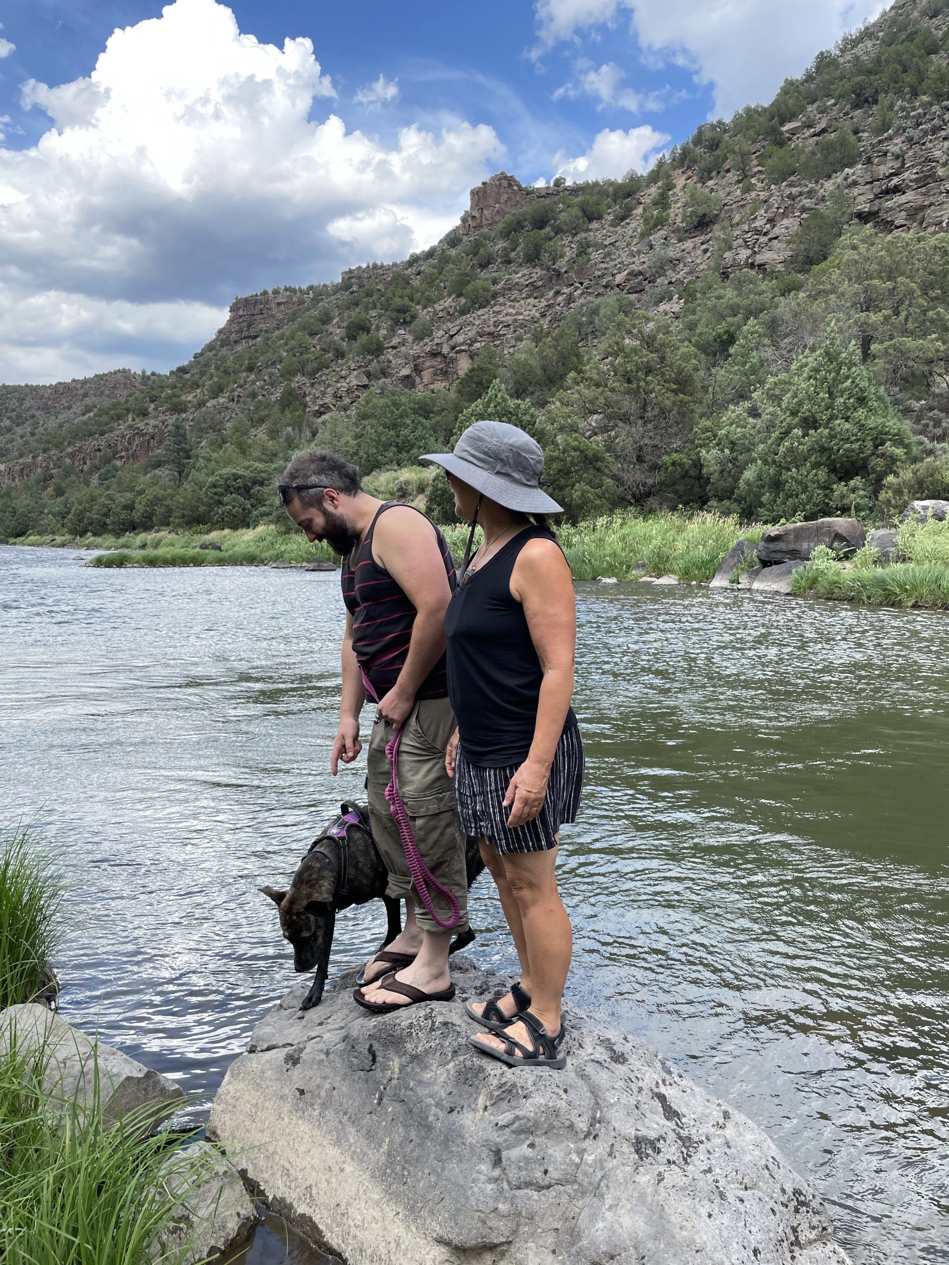 The road was hot and dry… We stopped a little bit at the Rio grande To cool our feet