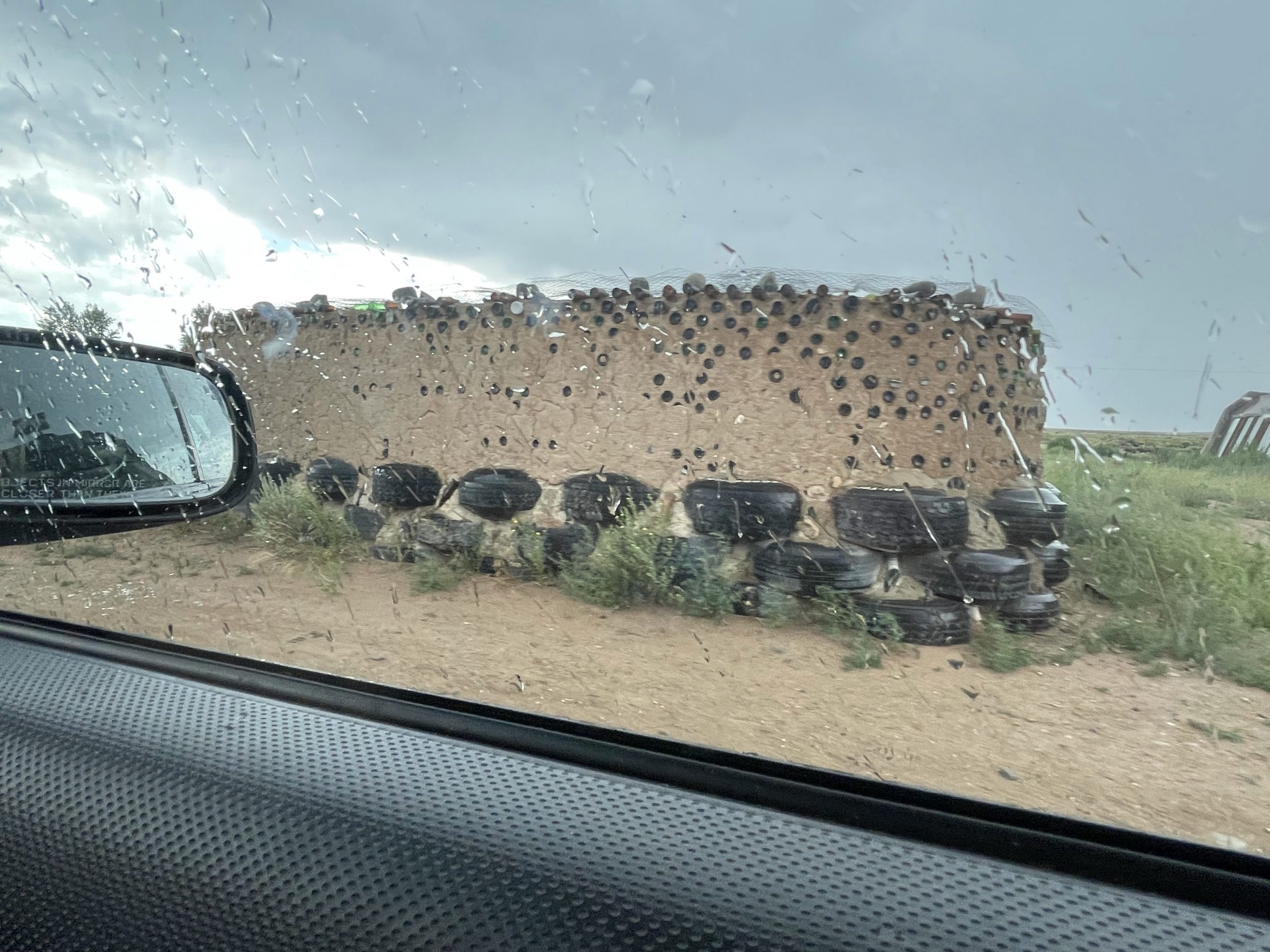 From there we headed towards Max and our sprint Scott… First with a quick rainy stop at the “earth ships”… They are 100% recyclable all from earth or trash houses… It looked a little bit like visiting tattoine in star wars