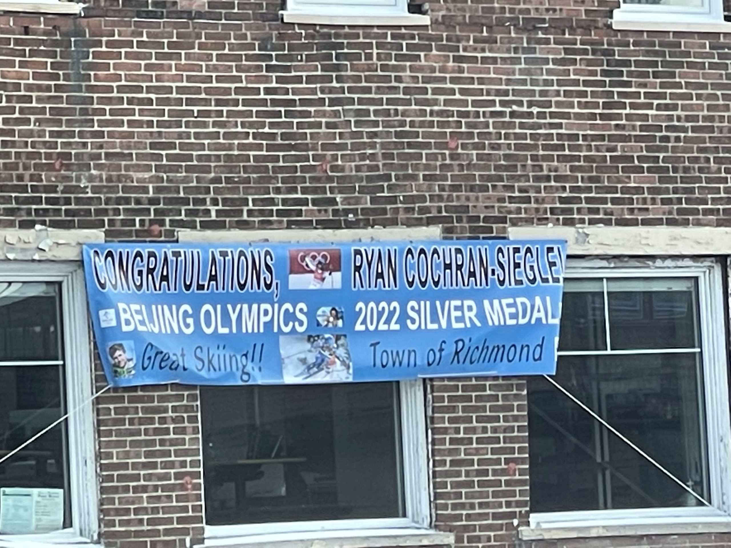 we came back from Richmond just before the roads were closed for the parade for Ryan Corcoran and Siegel… The Olympics silver metal guy in the grand slalom who grew up here. We didn’t see the parade… But we got to see the posters which was pretty cool