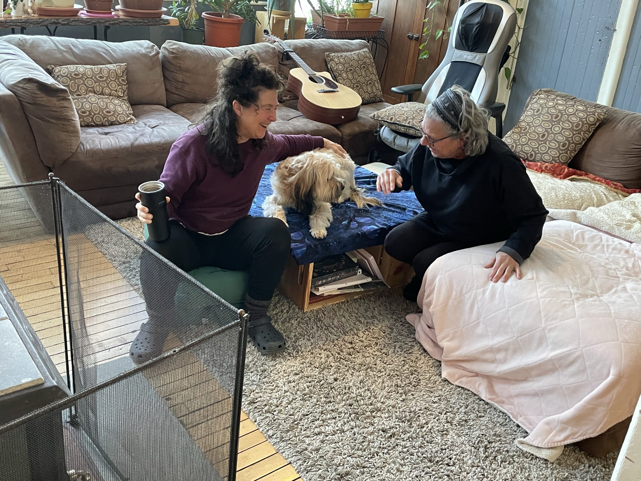 Take turns rubbing Linda and David’s cute dog Willow… It’s so nice to have a dog in the house. Boy do I miss our girls