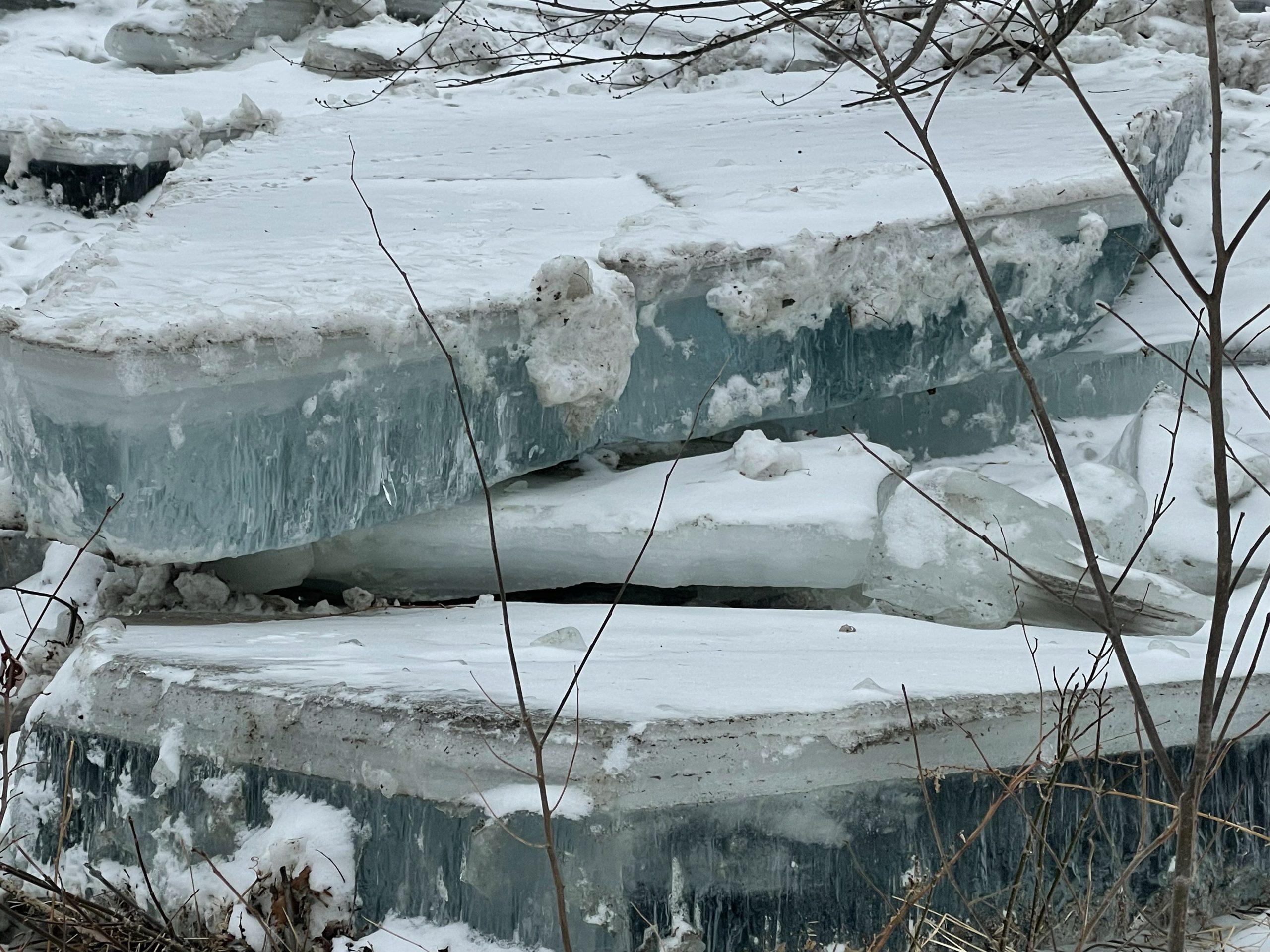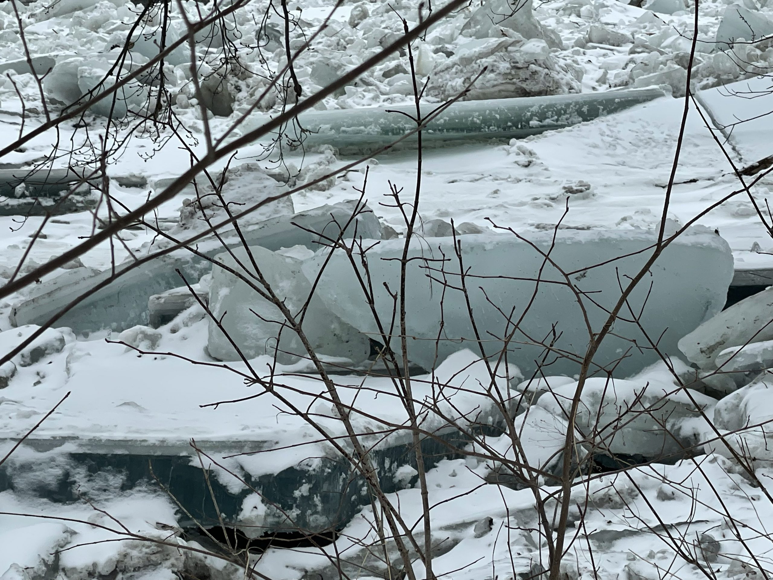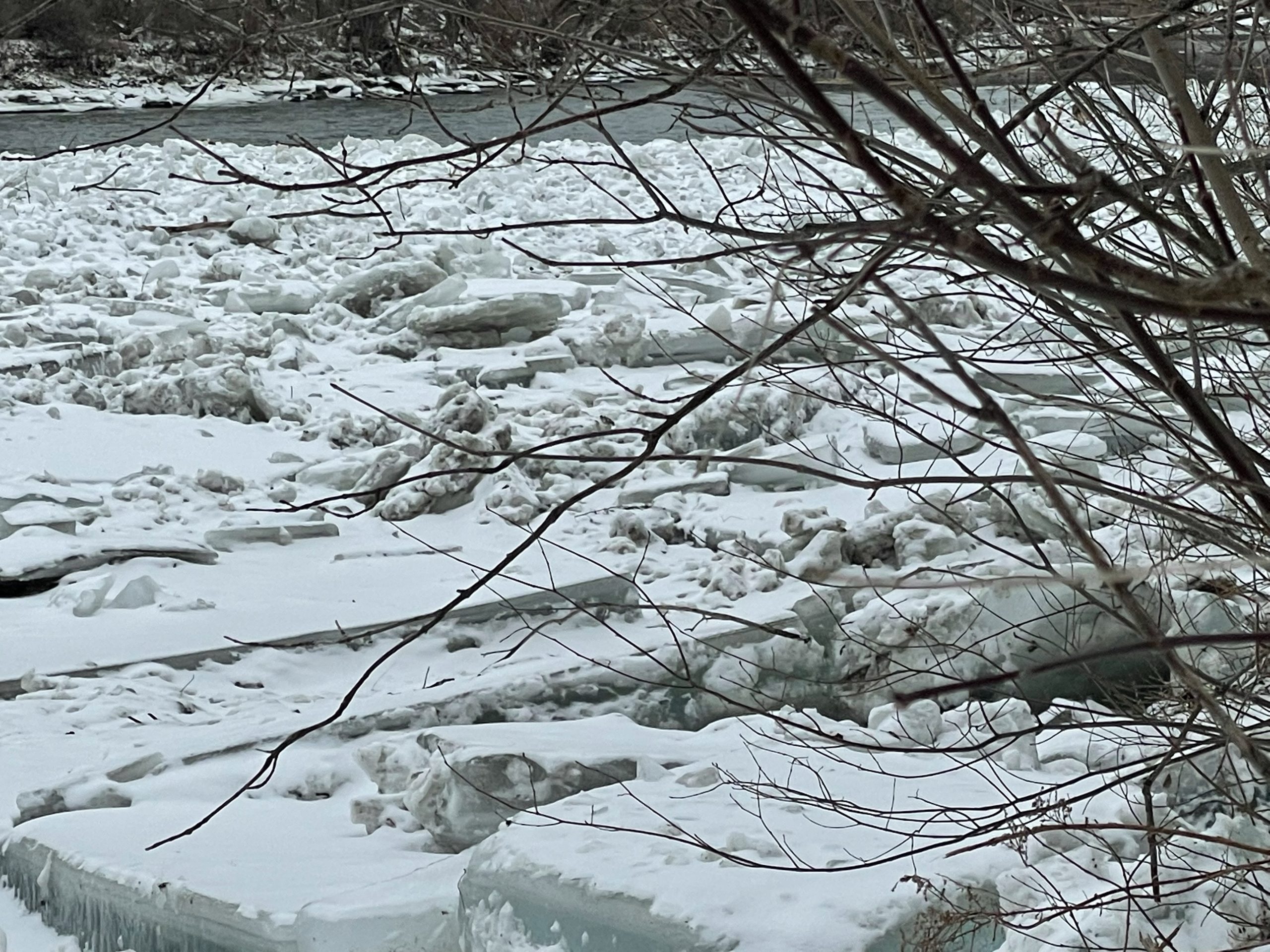 ‘Linda and David and Willow took off around 10 o’clock this morning… After they left I got out for a run and admired the river ice that had broken up. Some of it is a good foot thick